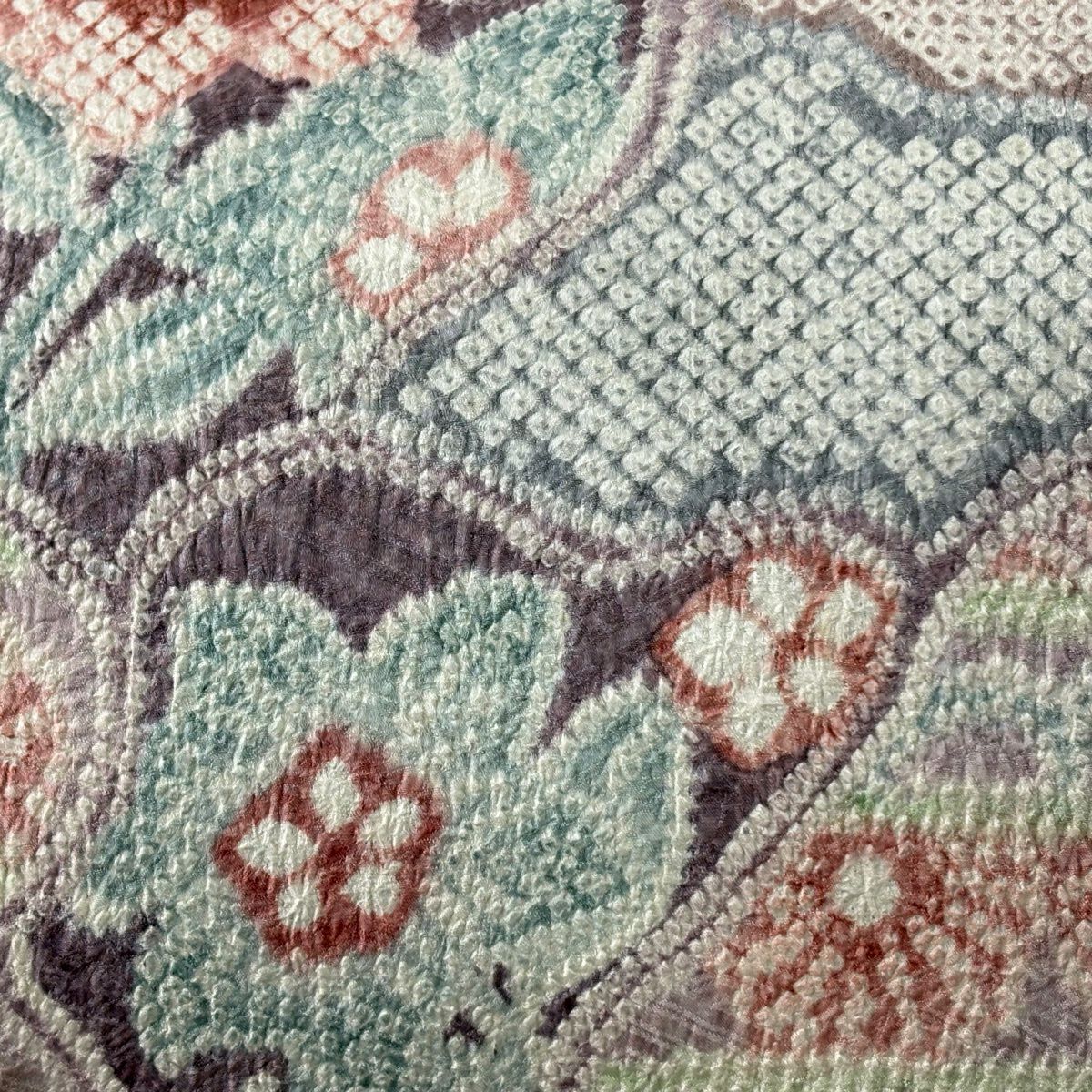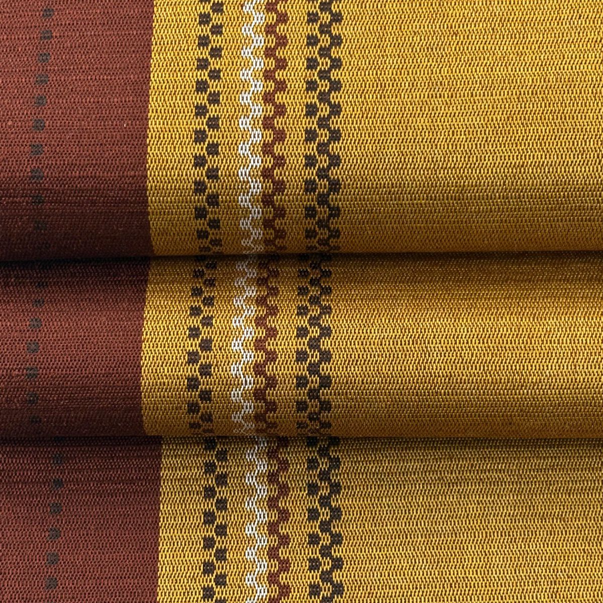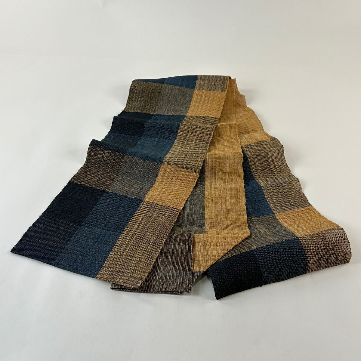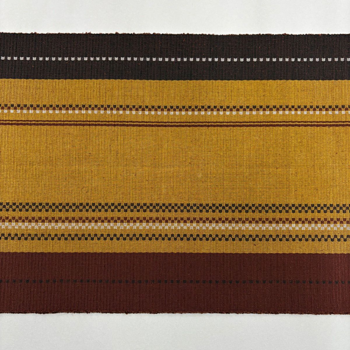【美品】 名古屋帯 逸品 猫 幾何学 縮緬 からし色 正絹