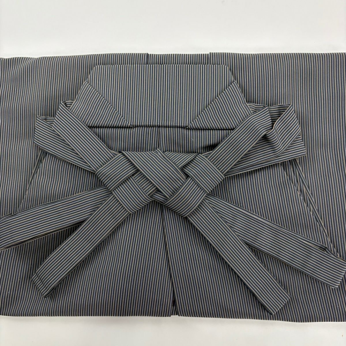 袴 仙台平 馬乗袴 落款あり 縦縞模様 灰色 正絹 逸品