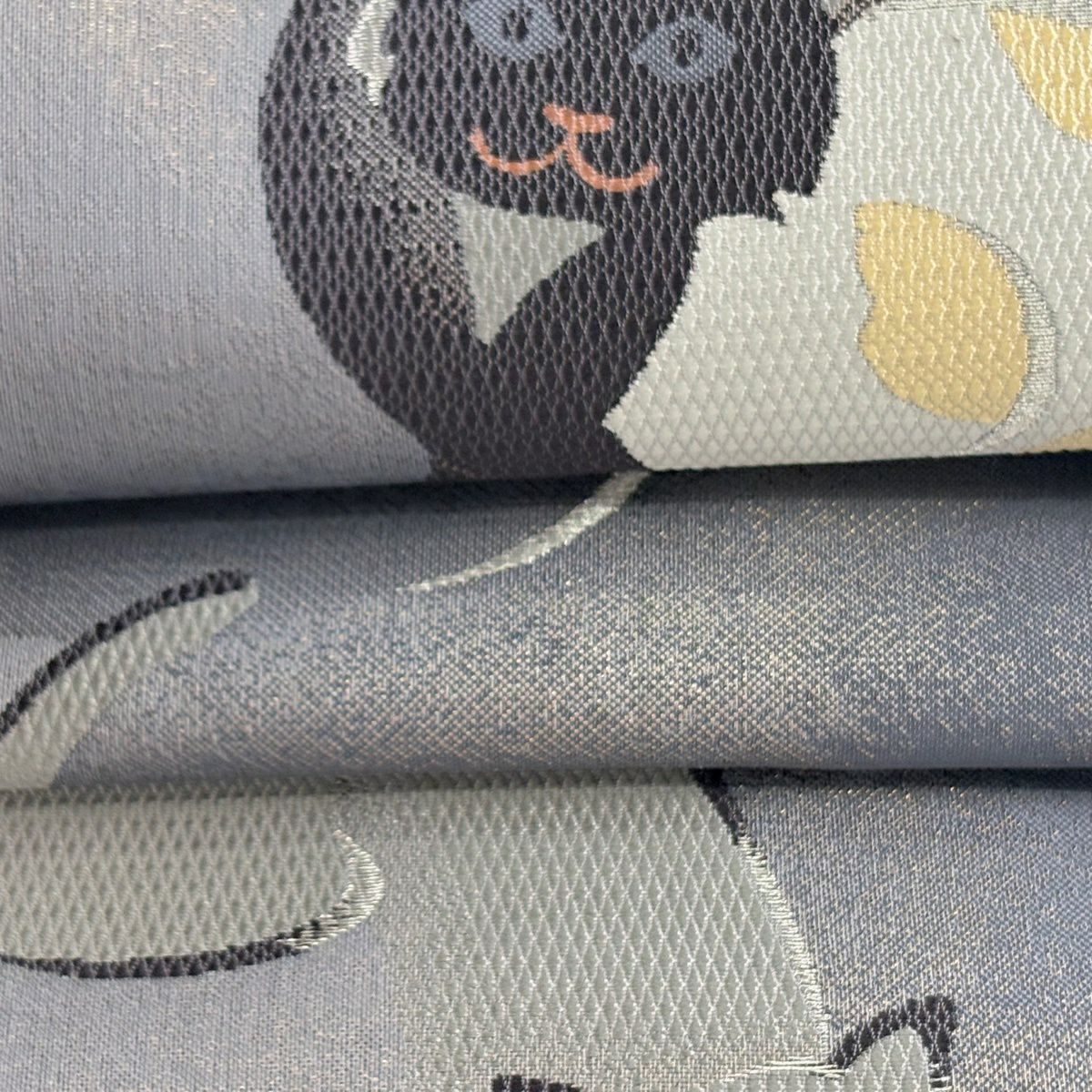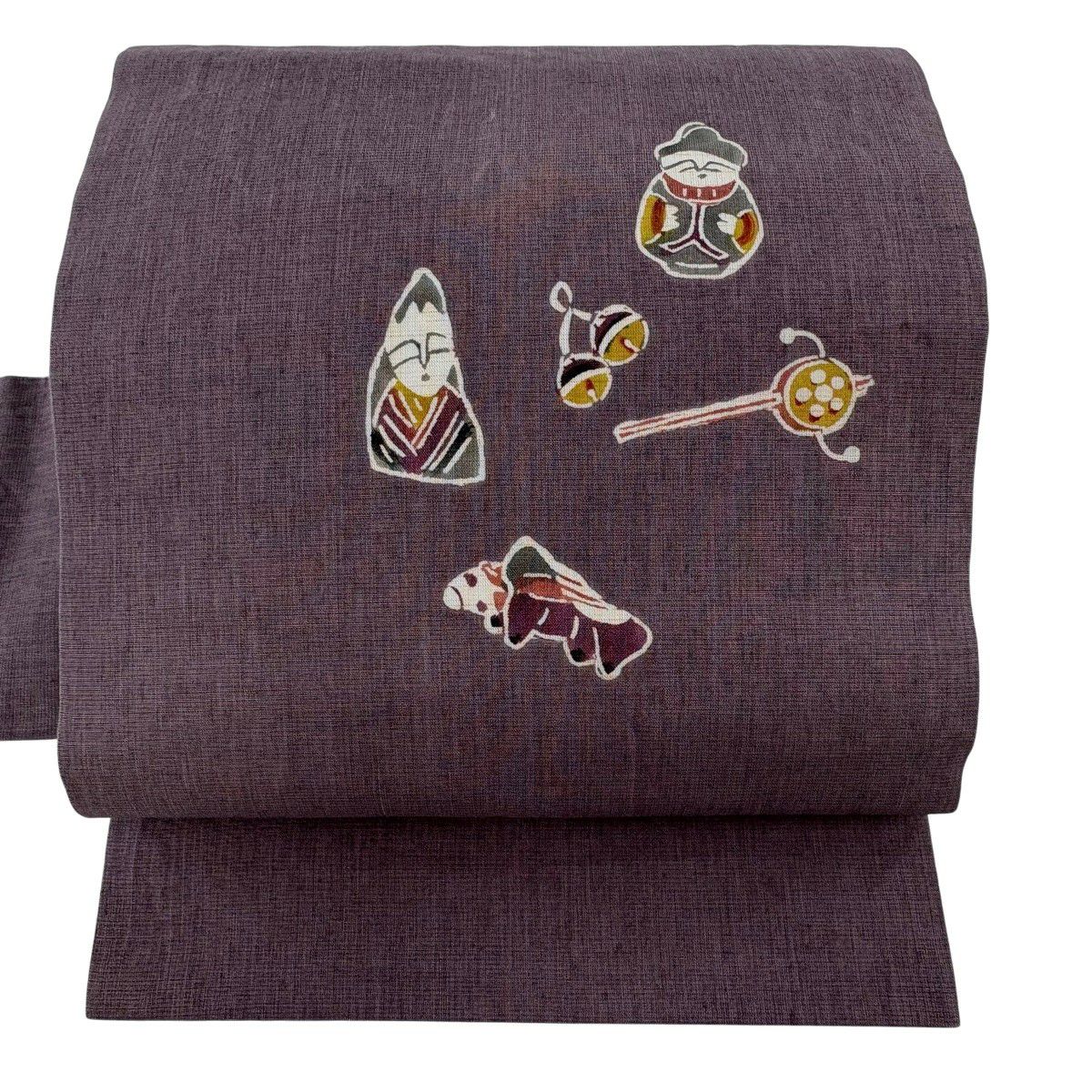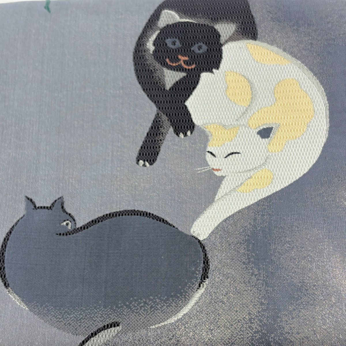 【美品】 名古屋帯 逸品 猫 瓢箪 銀通し 銀彩 紫 正絹