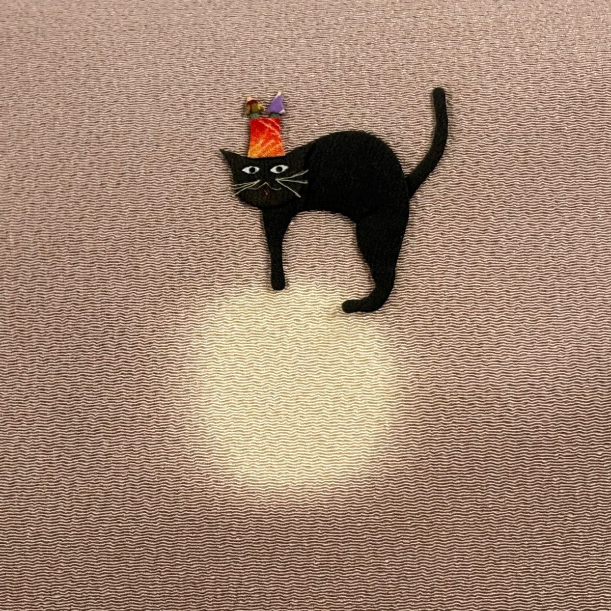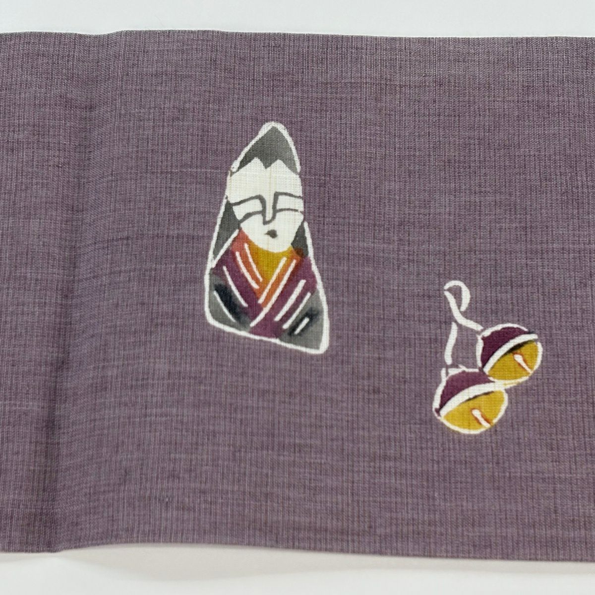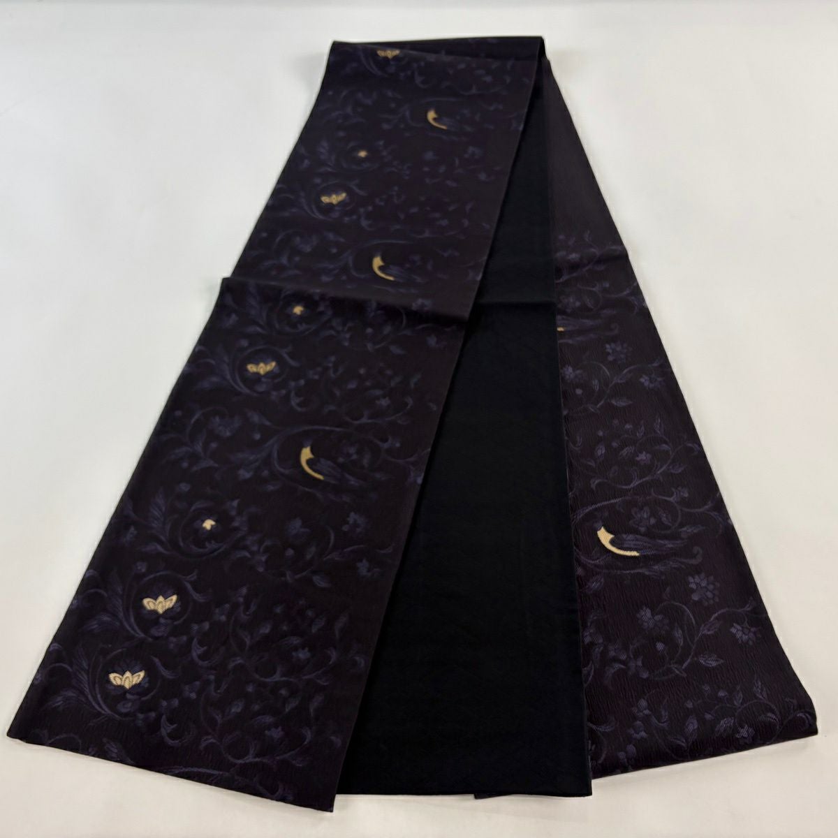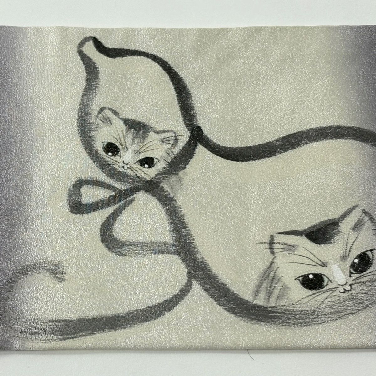 【美品】 名古屋帯 逸品 猫 瓢箪 銀通し 銀彩 紫 正絹