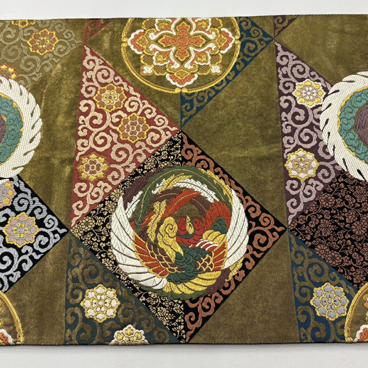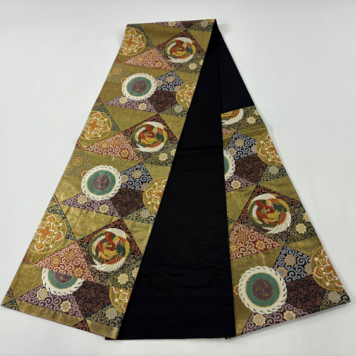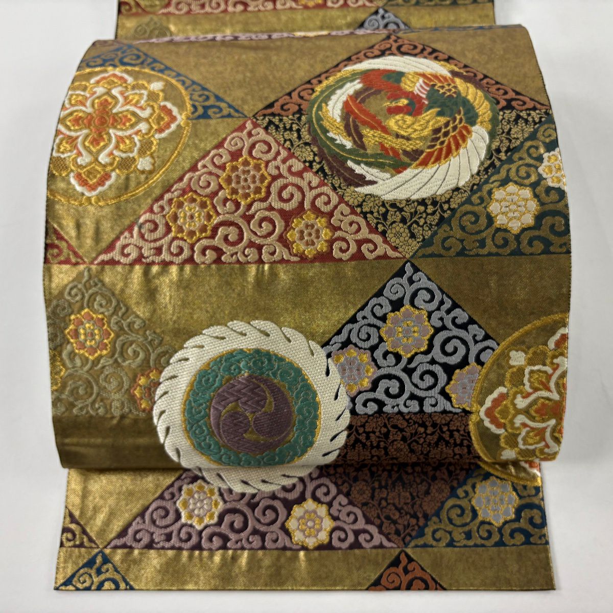 袋帯 逸品 証紙あり 鳳凰 鱗 金糸 箔 金色 六通 正絹
