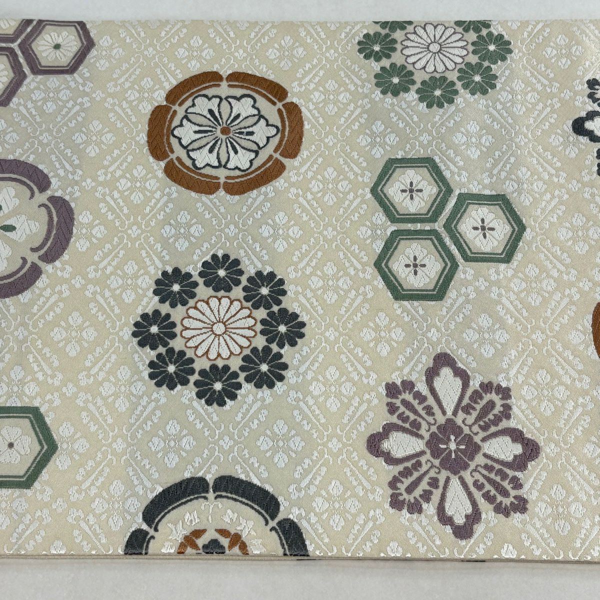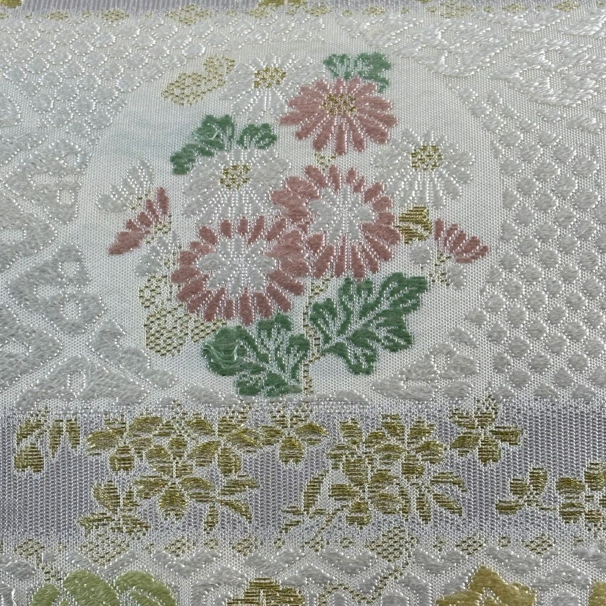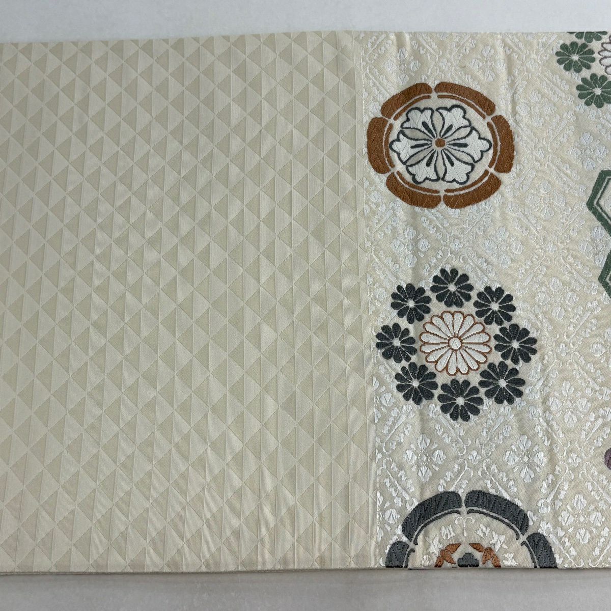 【美品】 袋帯 逸品 菊 花 刺繍 クリーム 六通 正絹