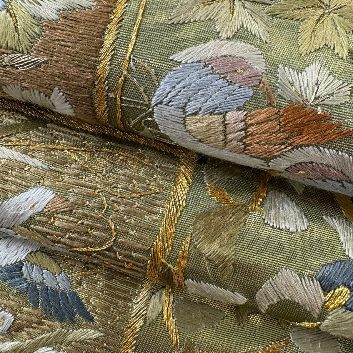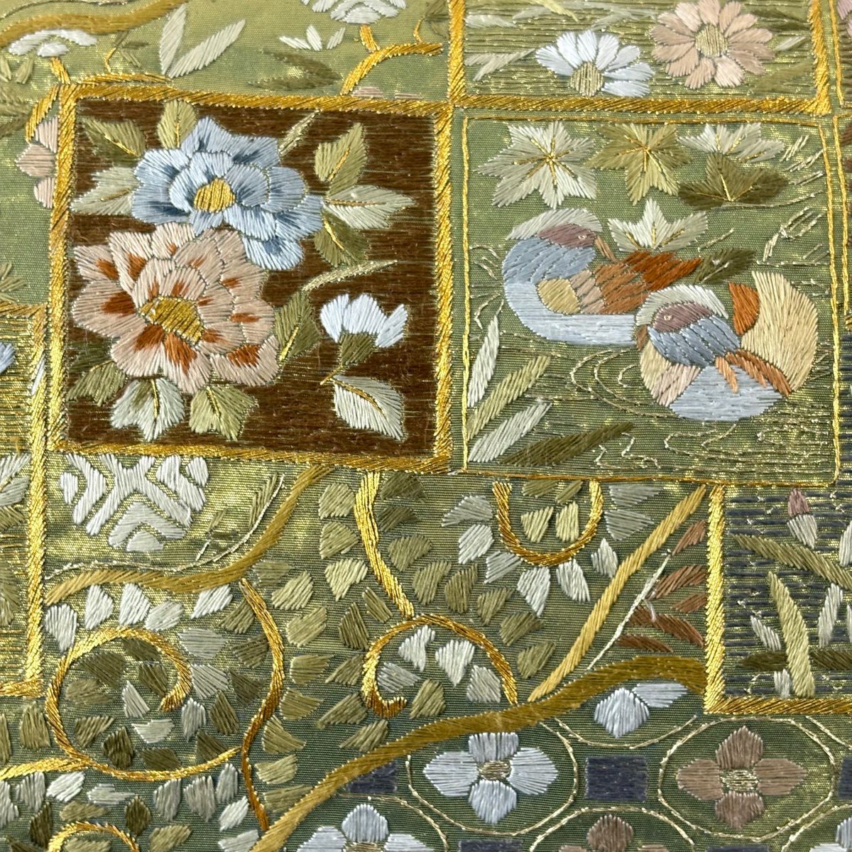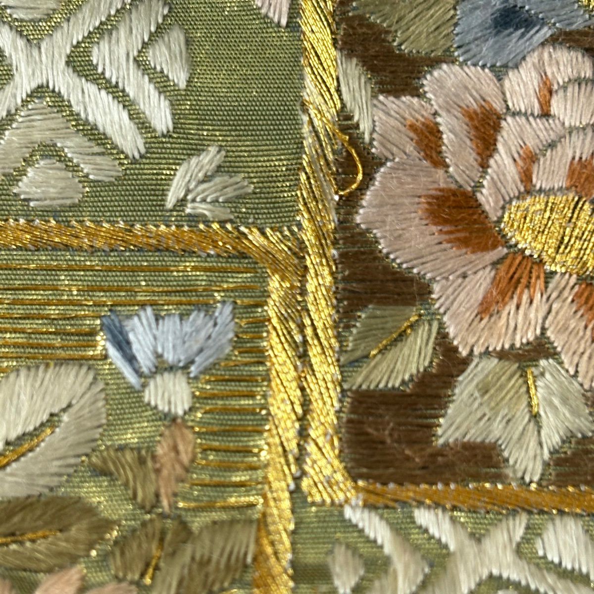 【美品】 袋帯 逸品 菊 花 刺繍 クリーム 六通 正絹