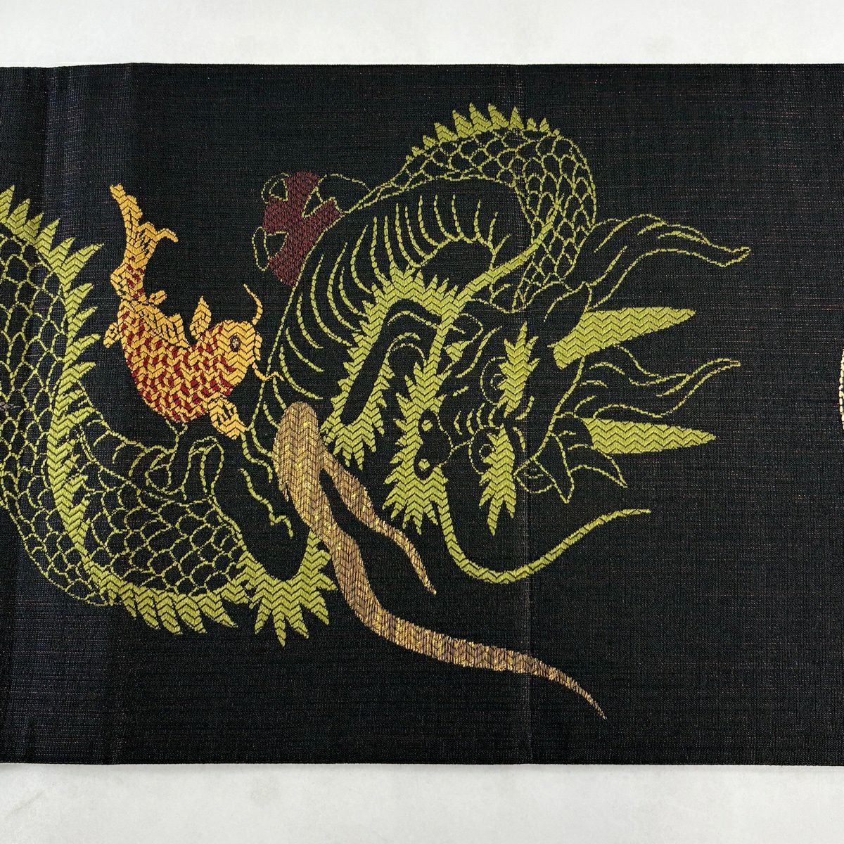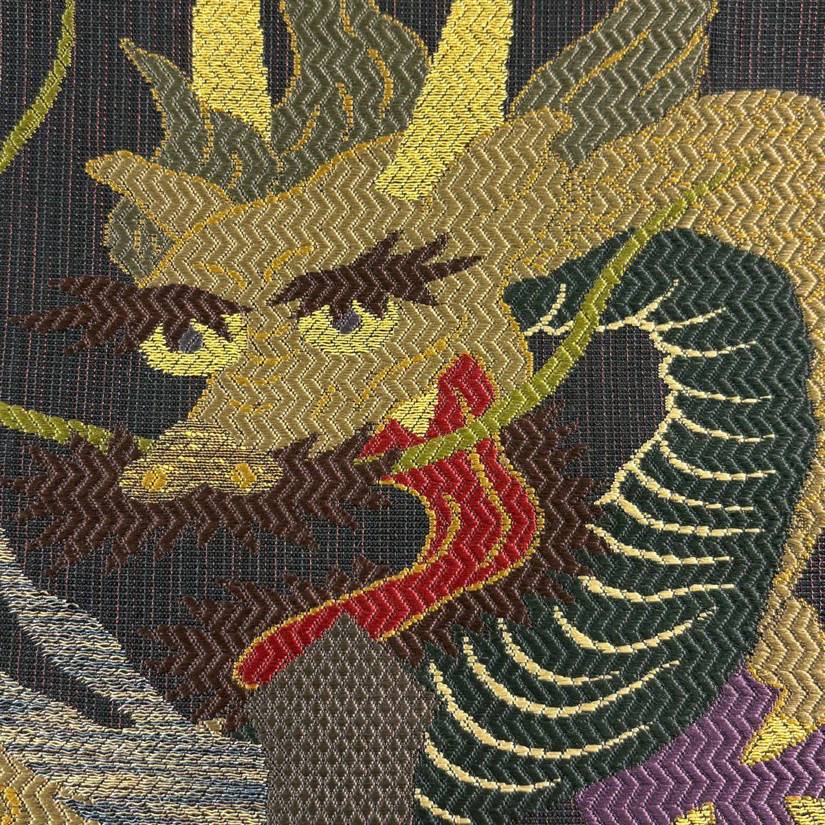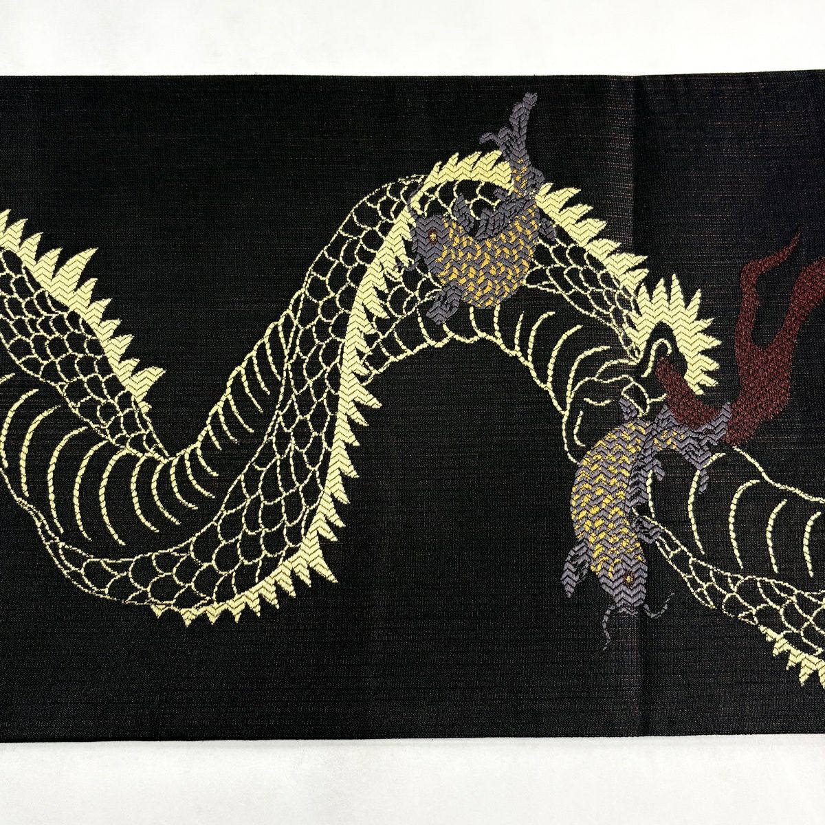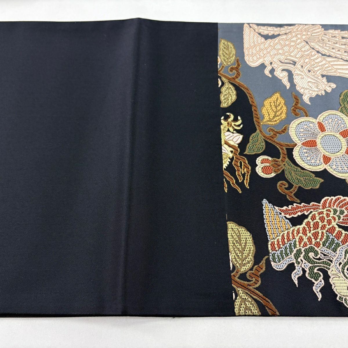 【美品】 袋帯 逸品 龍 花鳥 箔 刺繍 黒 六通 正絹