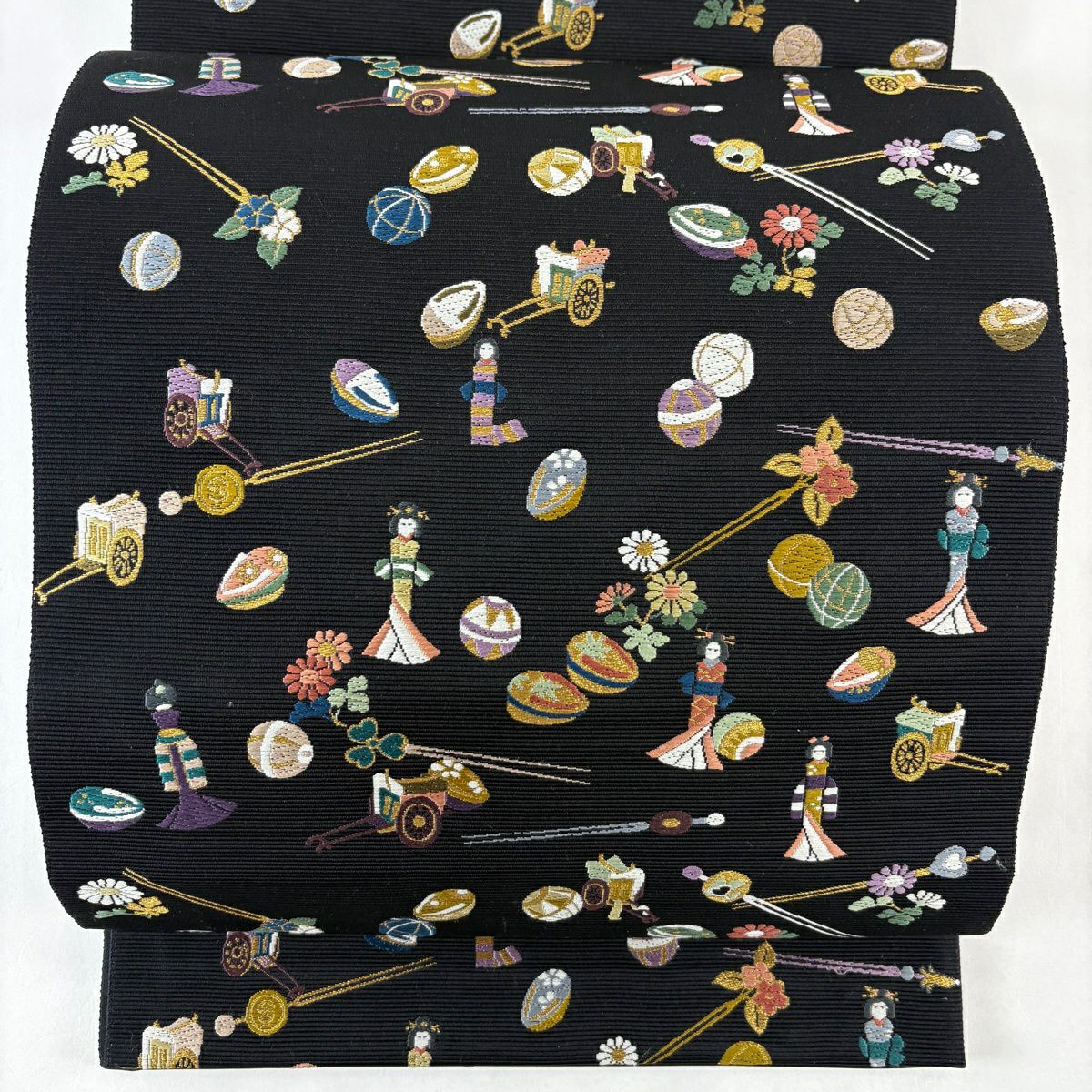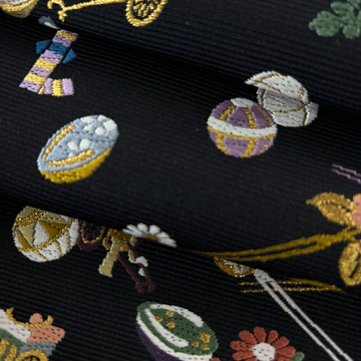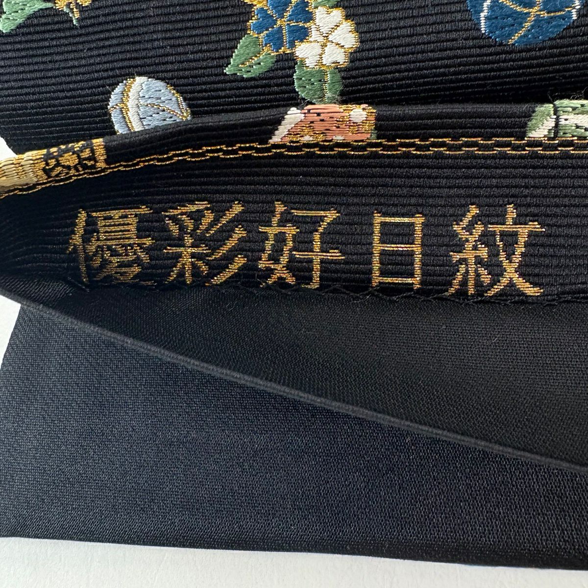 袋帯 逸品 優彩好日紋 手鞠 金糸 唐織 黒 六通 正絹