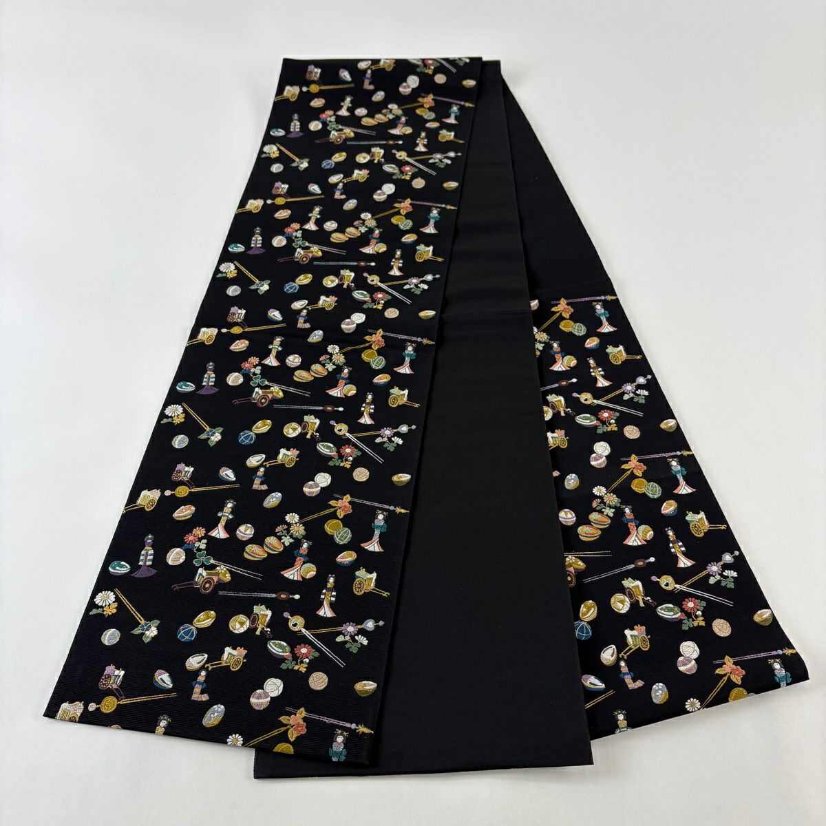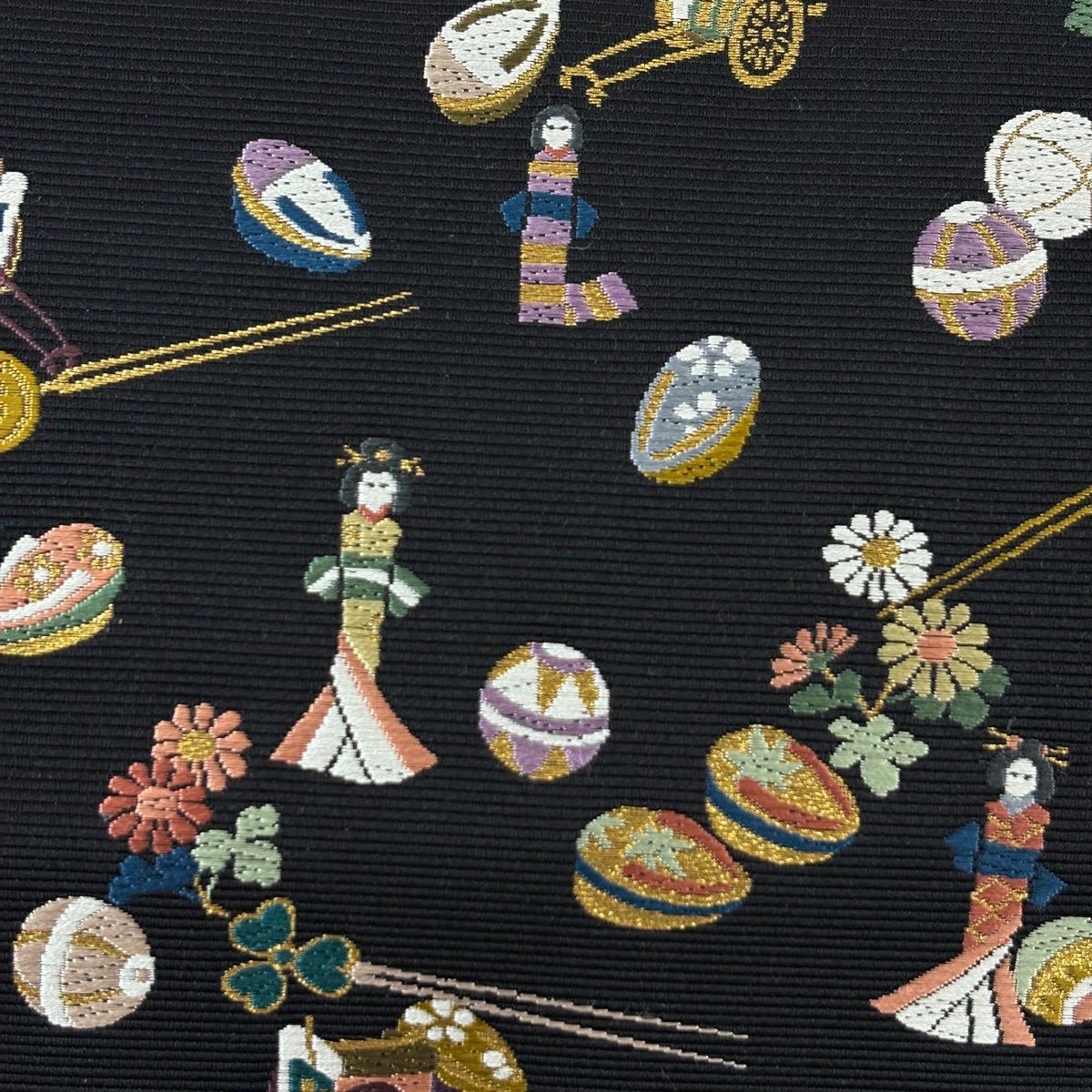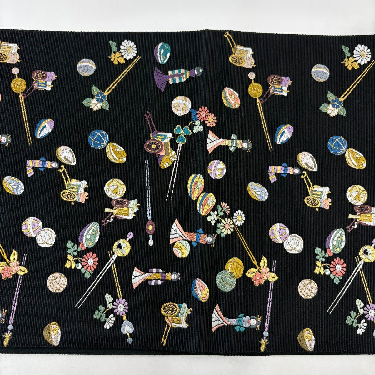 袋帯 逸品 優彩好日紋 手鞠 金糸 唐織 黒 六通 正絹