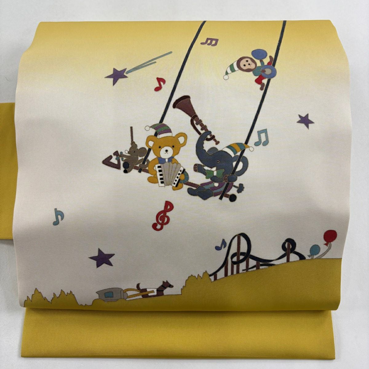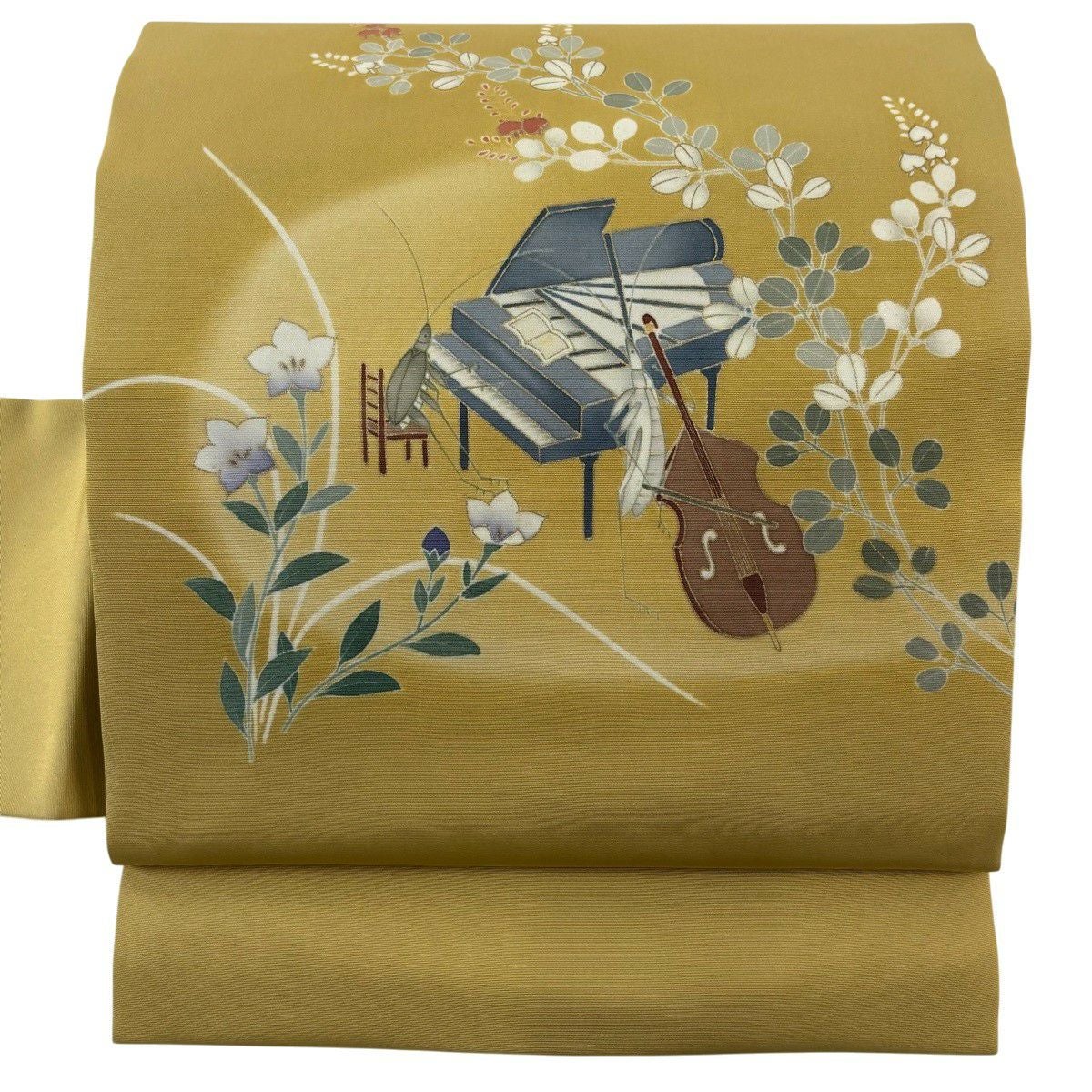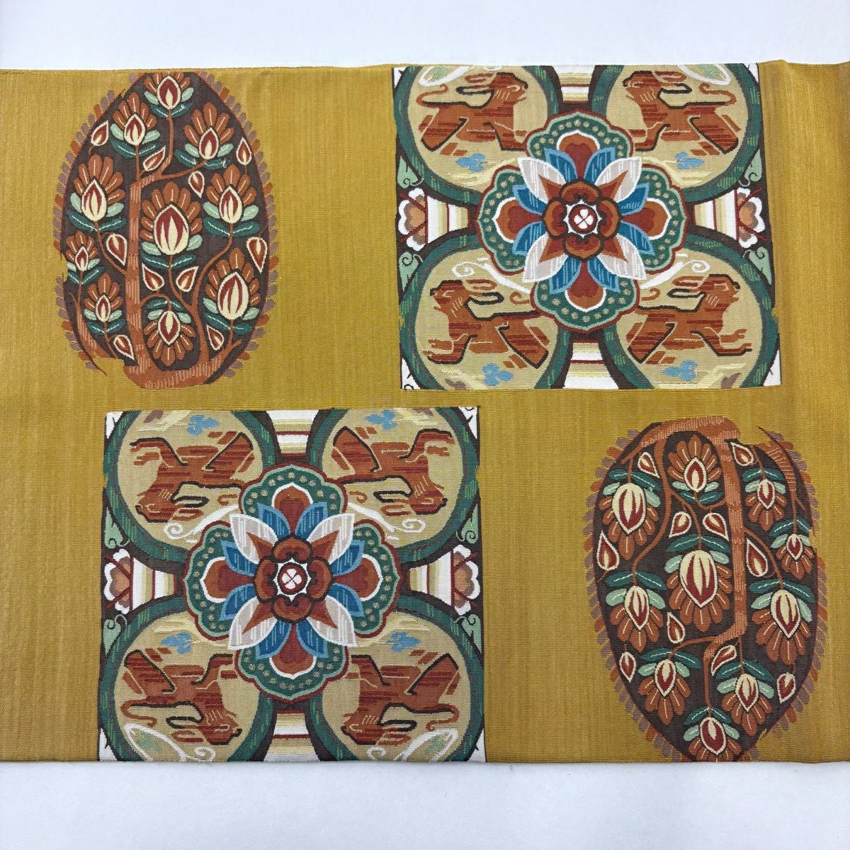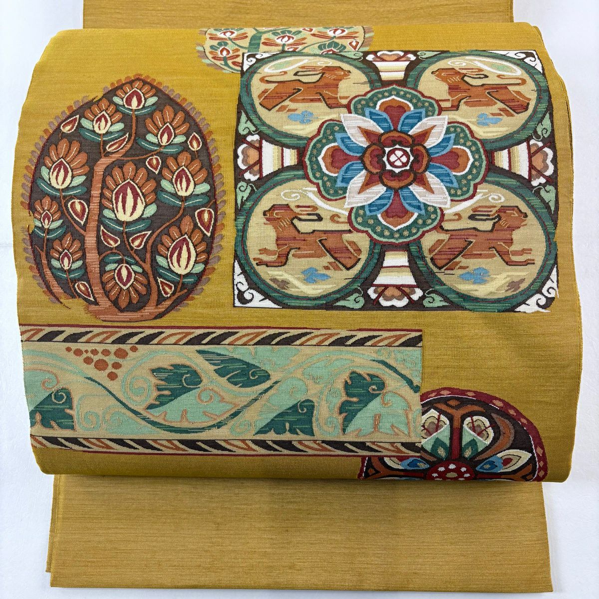 【美品】 袋帯 逸品 華文 動物 山吹色 お太鼓柄 正絹