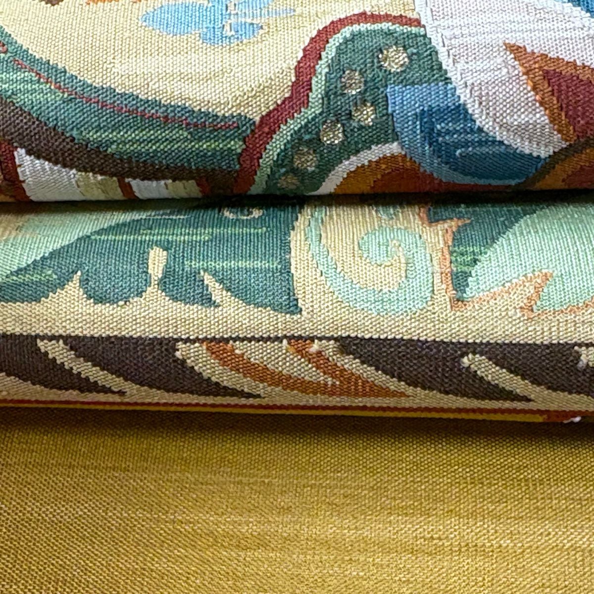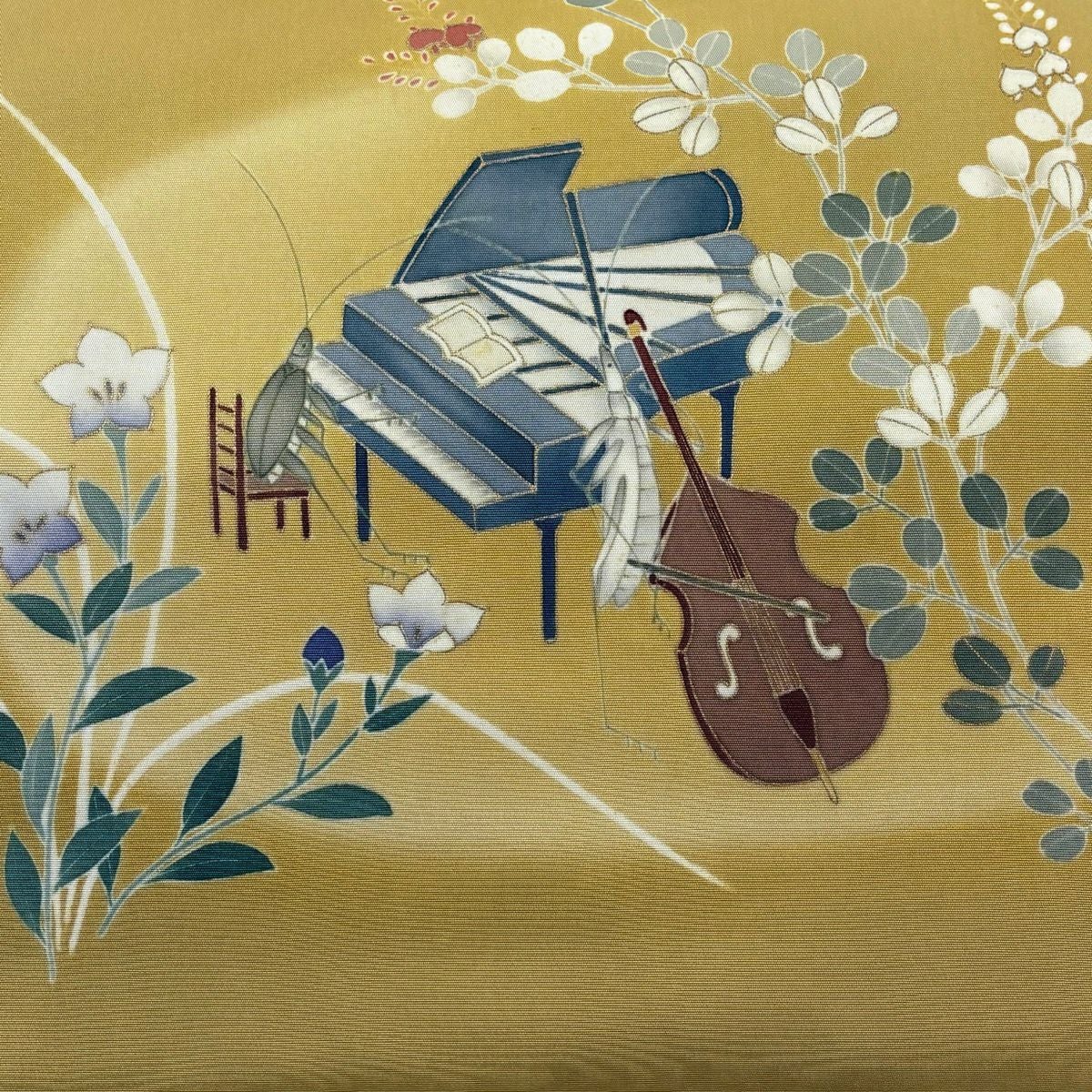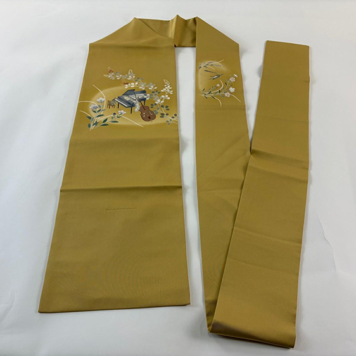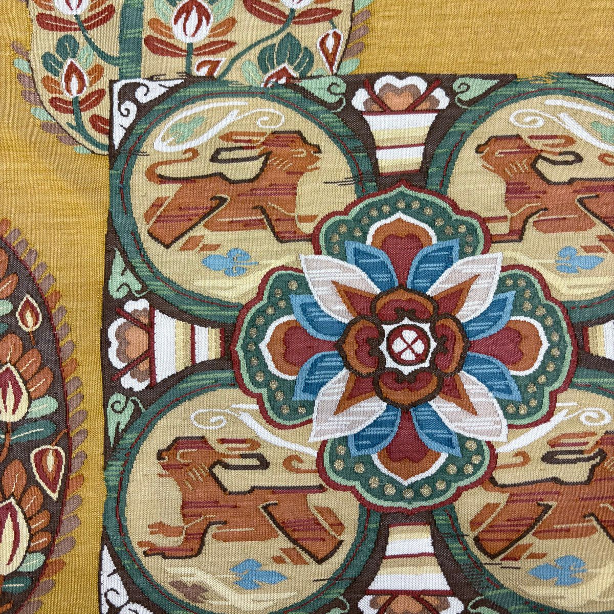 【美品】 袋帯 逸品 華文 動物 山吹色 お太鼓柄 正絹