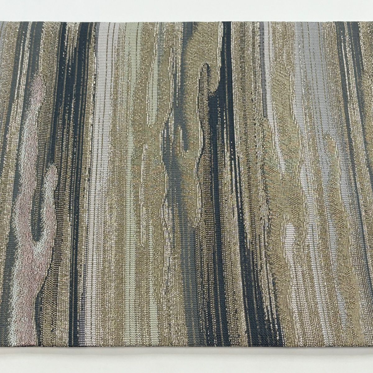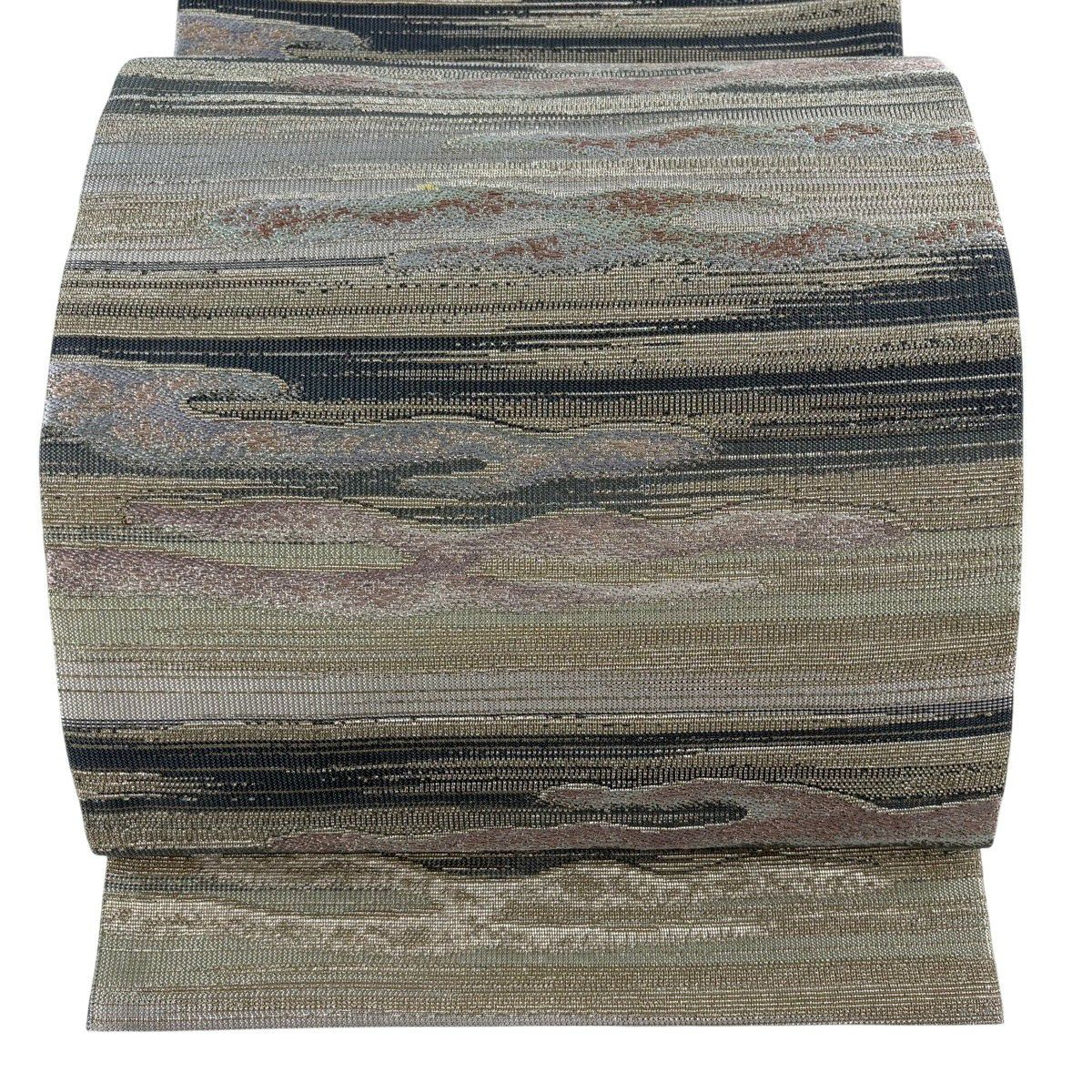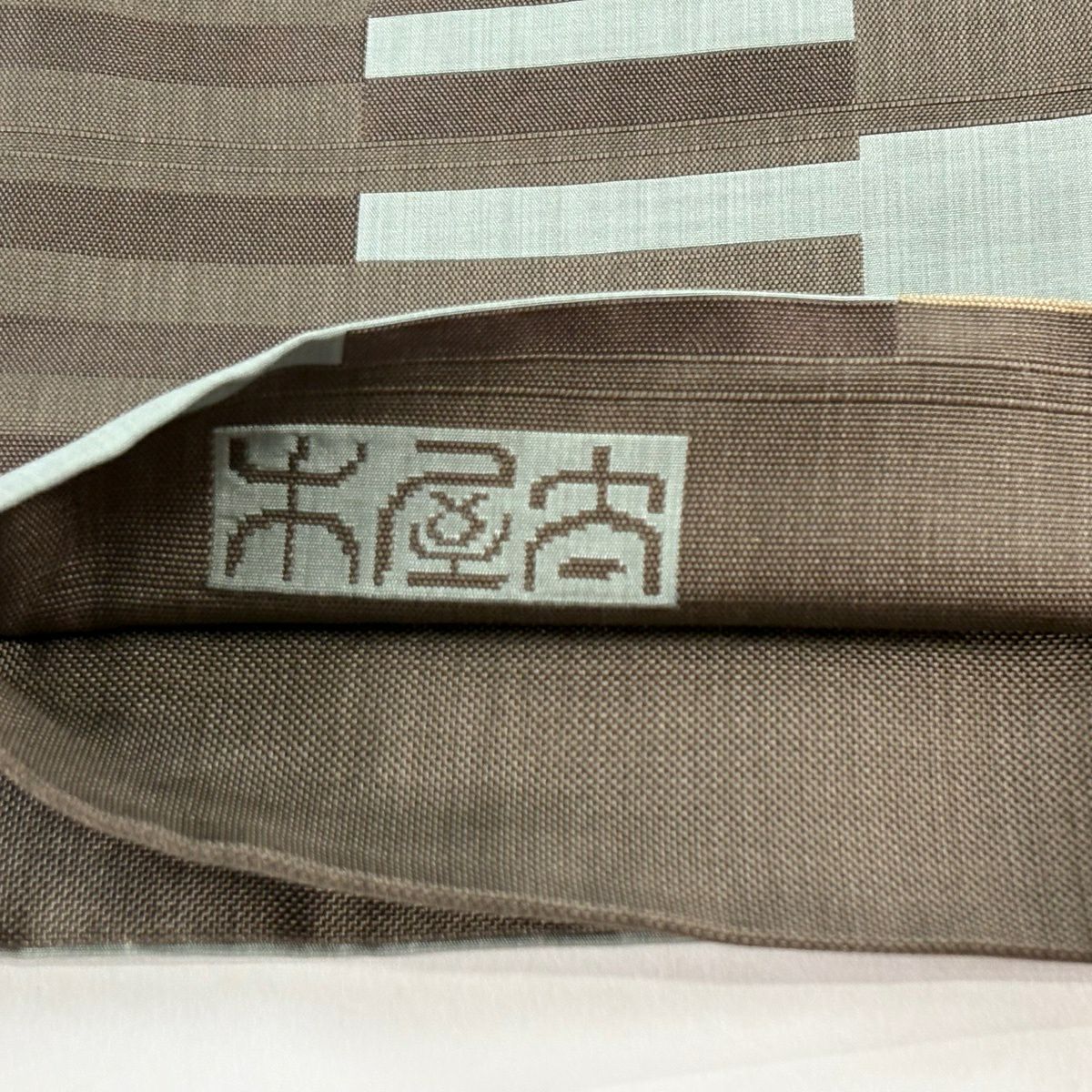 袋帯 逸品 木屋太 落款あり 縞 幾何学 灰茶 六通 正絹