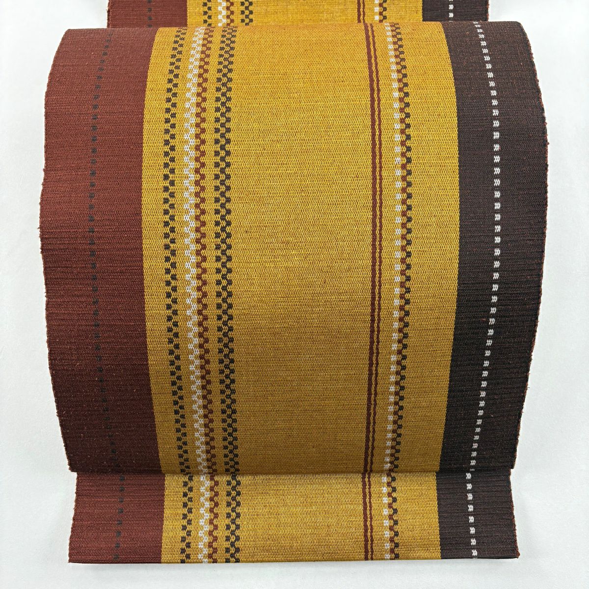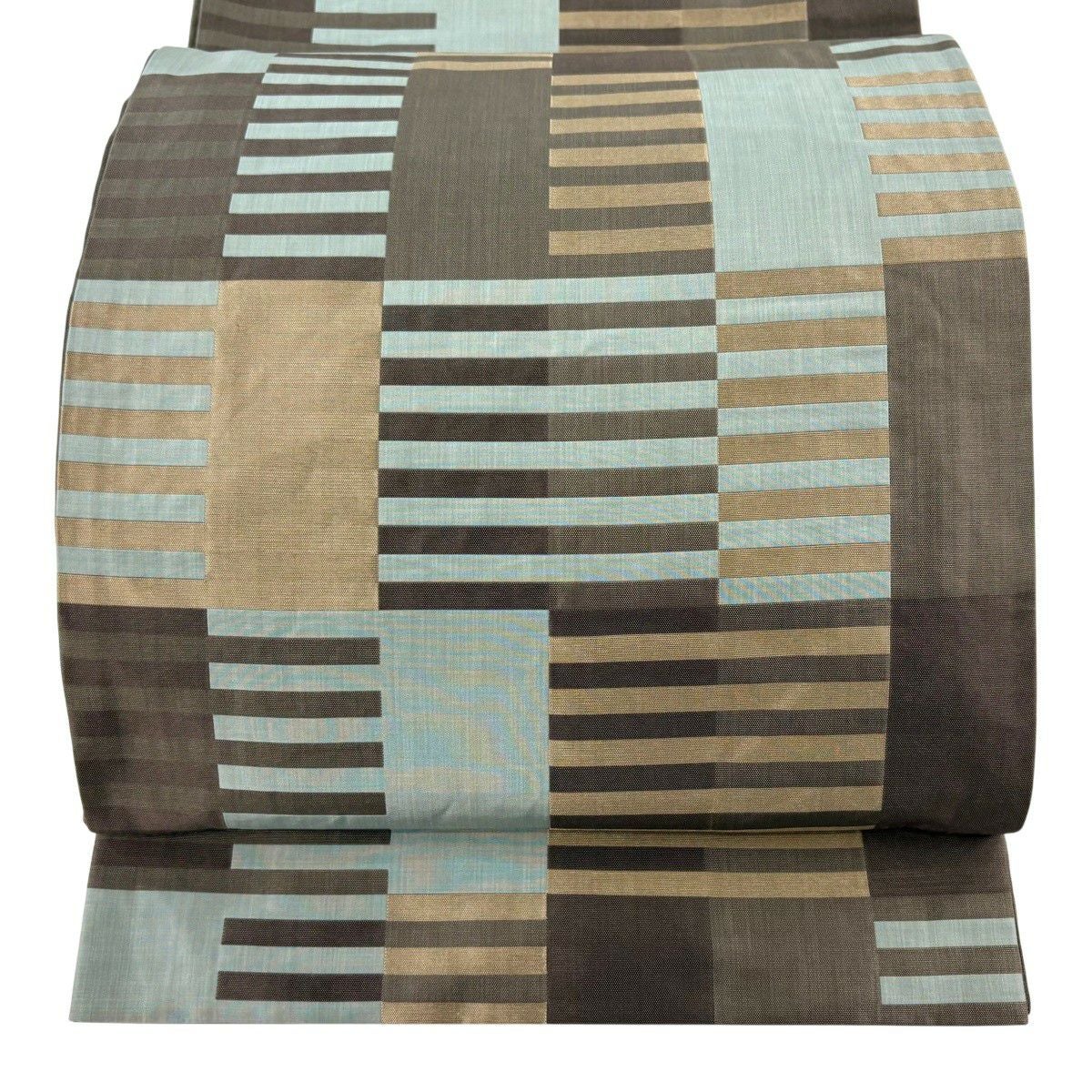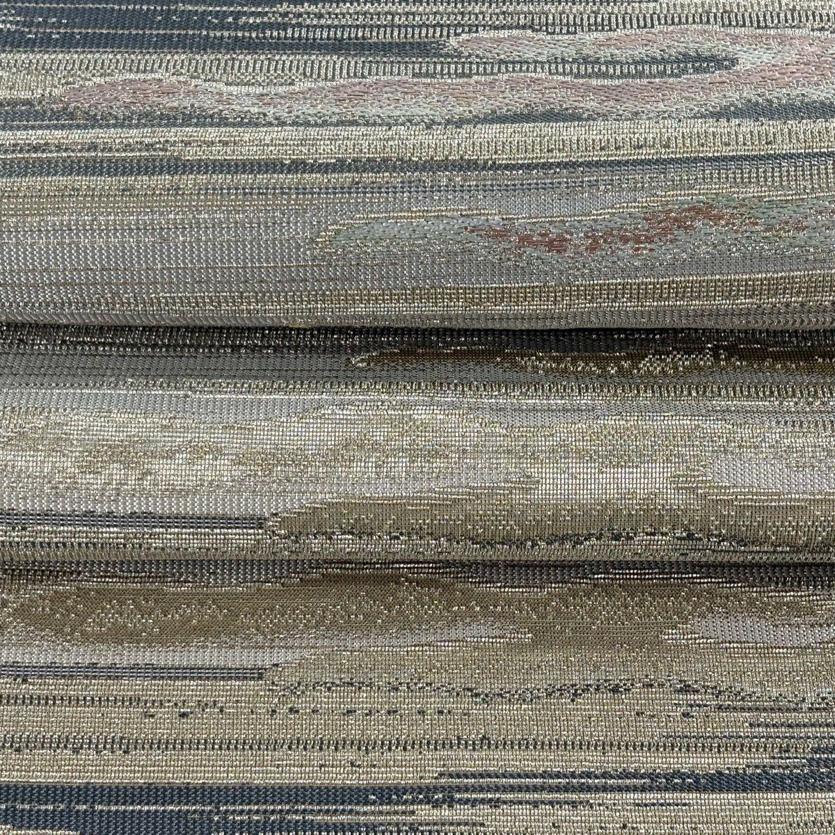 袋帯 逸品 木屋太 落款あり 縞 幾何学 灰茶 六通 正絹