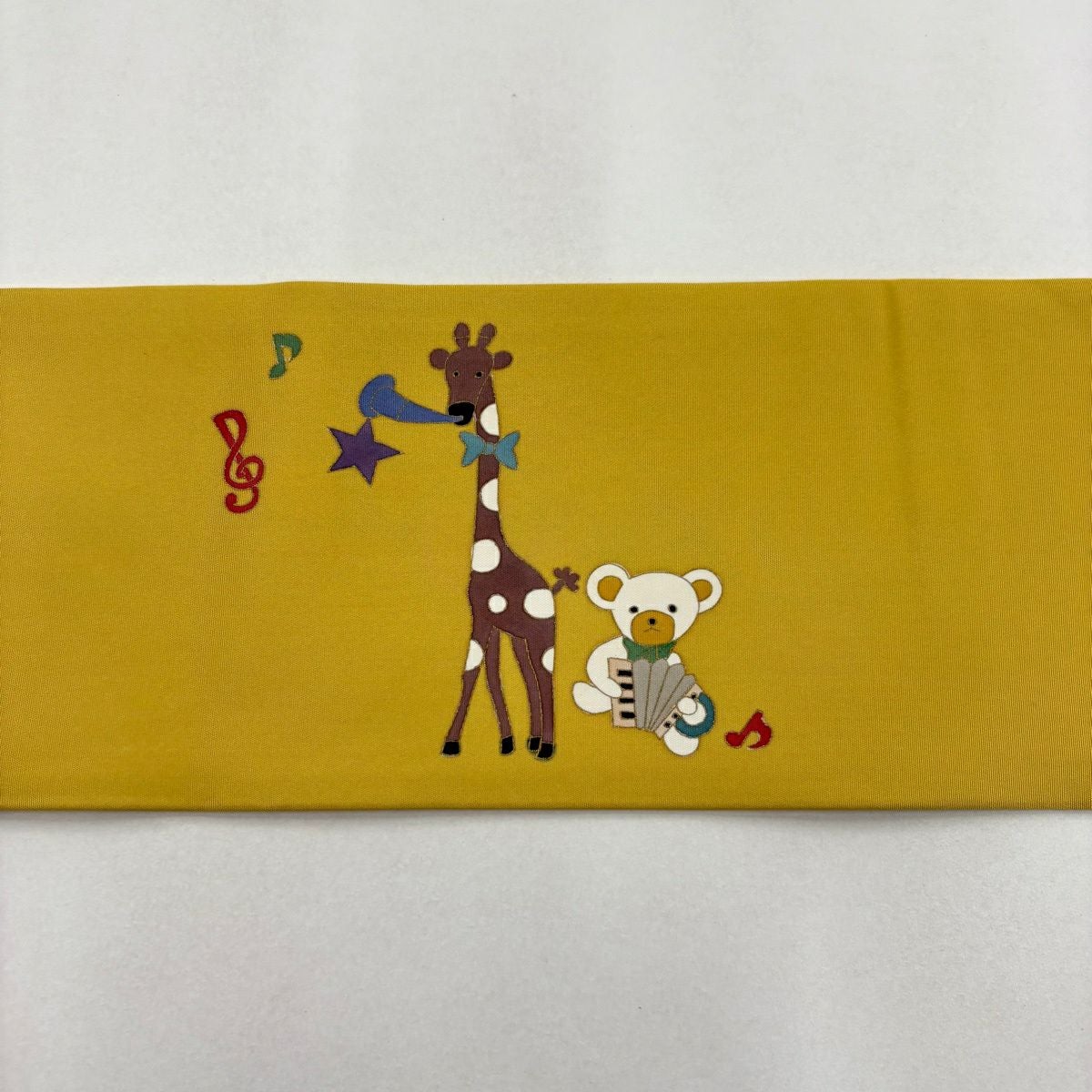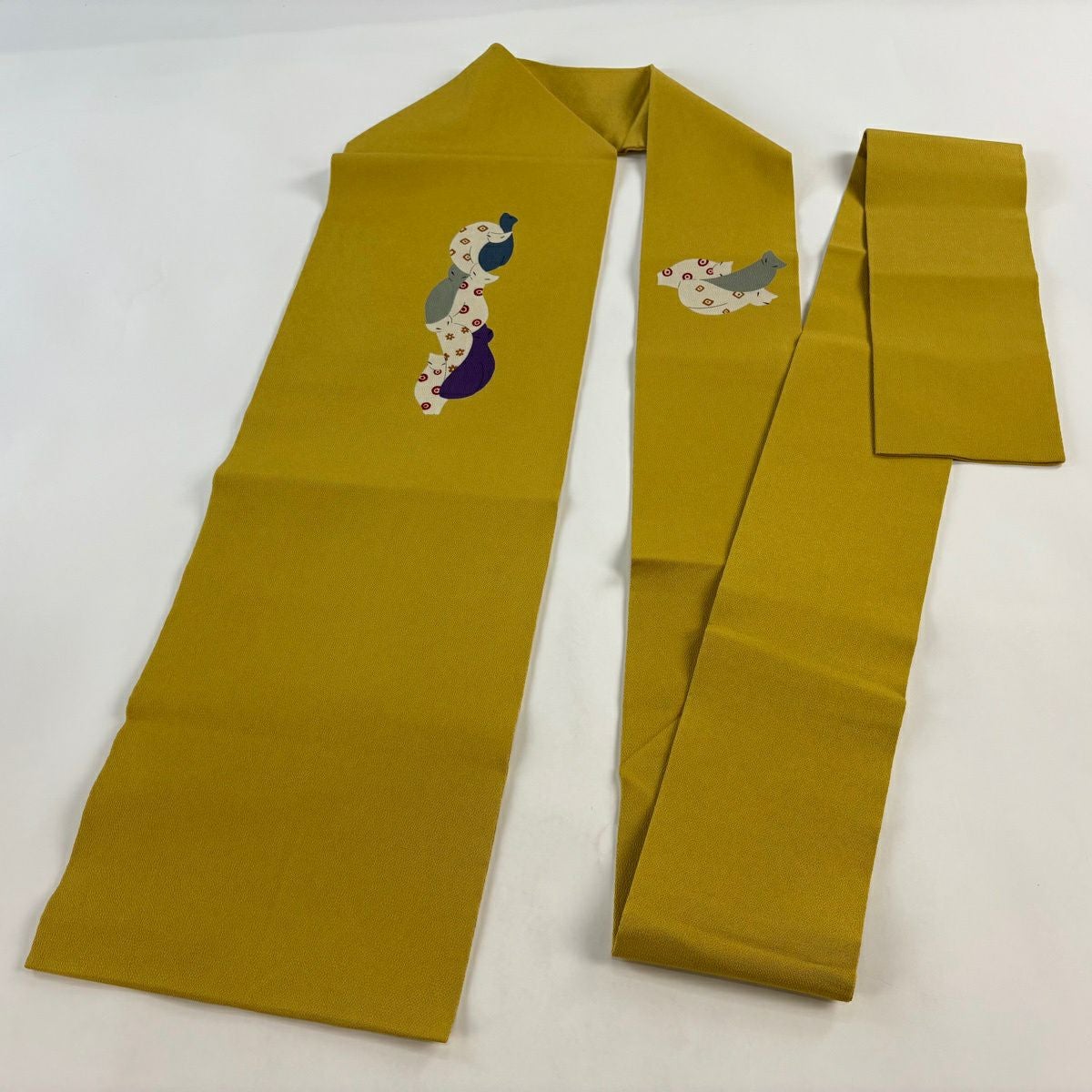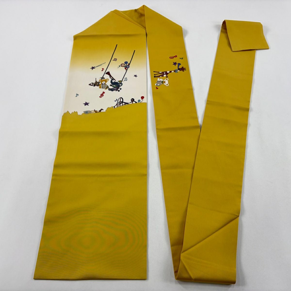 【美品】 袋名古屋帯 逸品 鳥獣戯画 縞 山吹茶色 正絹