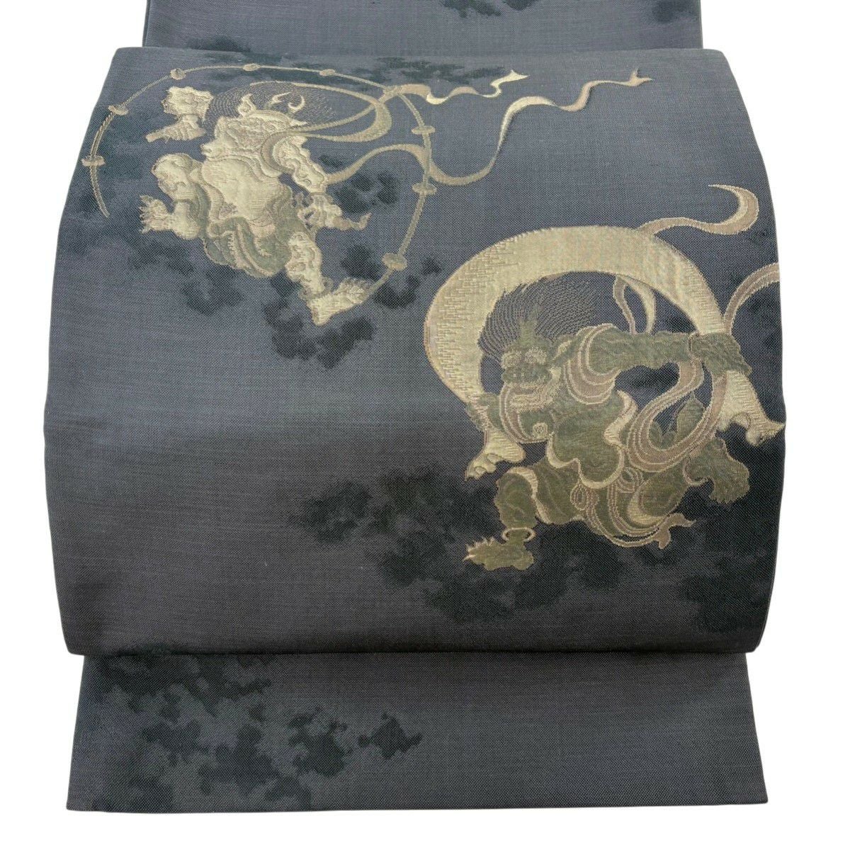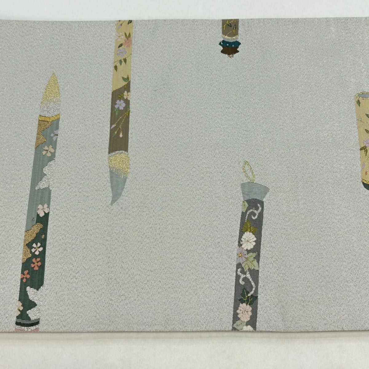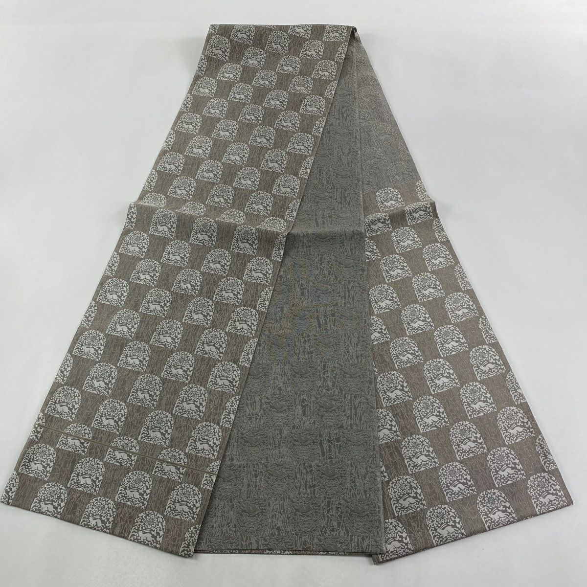【在庫一掃】 【美品】 袋帯 逸品 花兎 花兎 灰色 六通 正絹