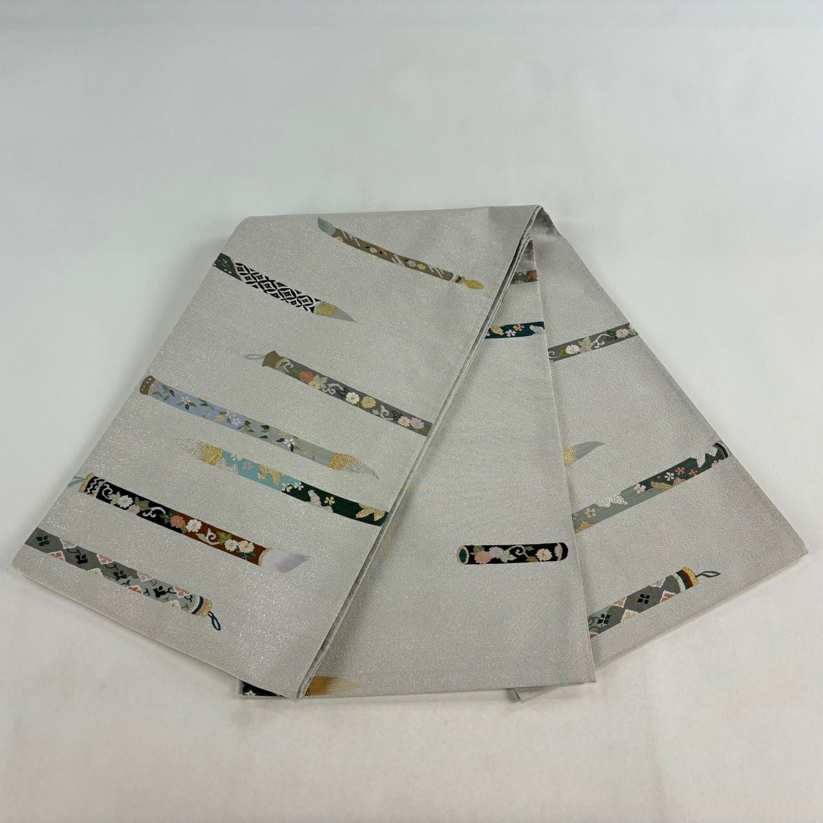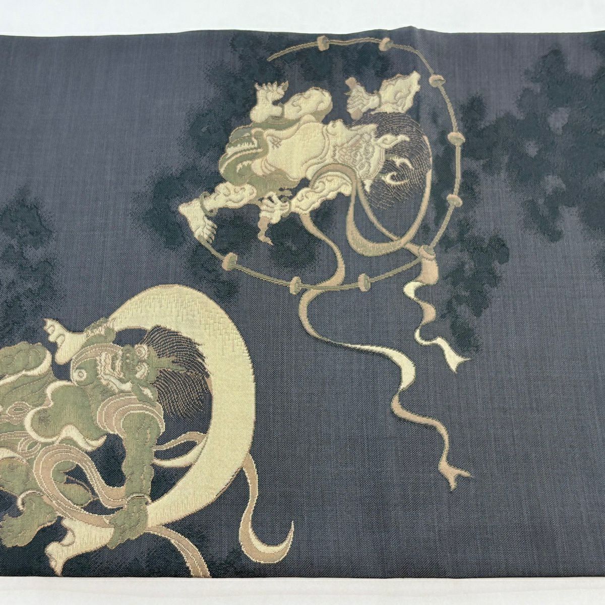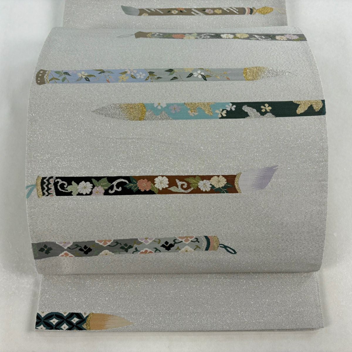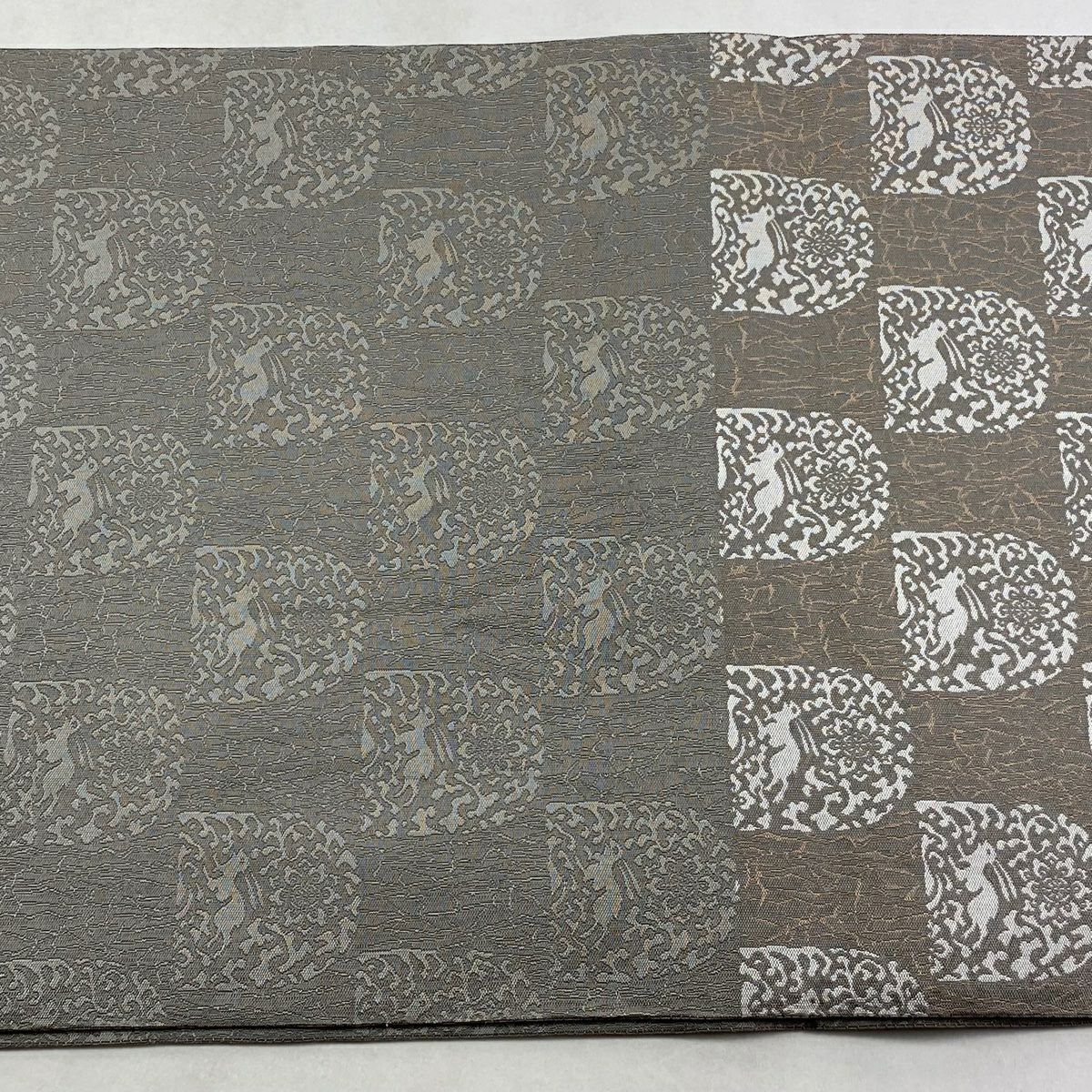 【在庫一掃】 【美品】 袋帯 逸品 花兎 花兎 灰色 六通 正絹