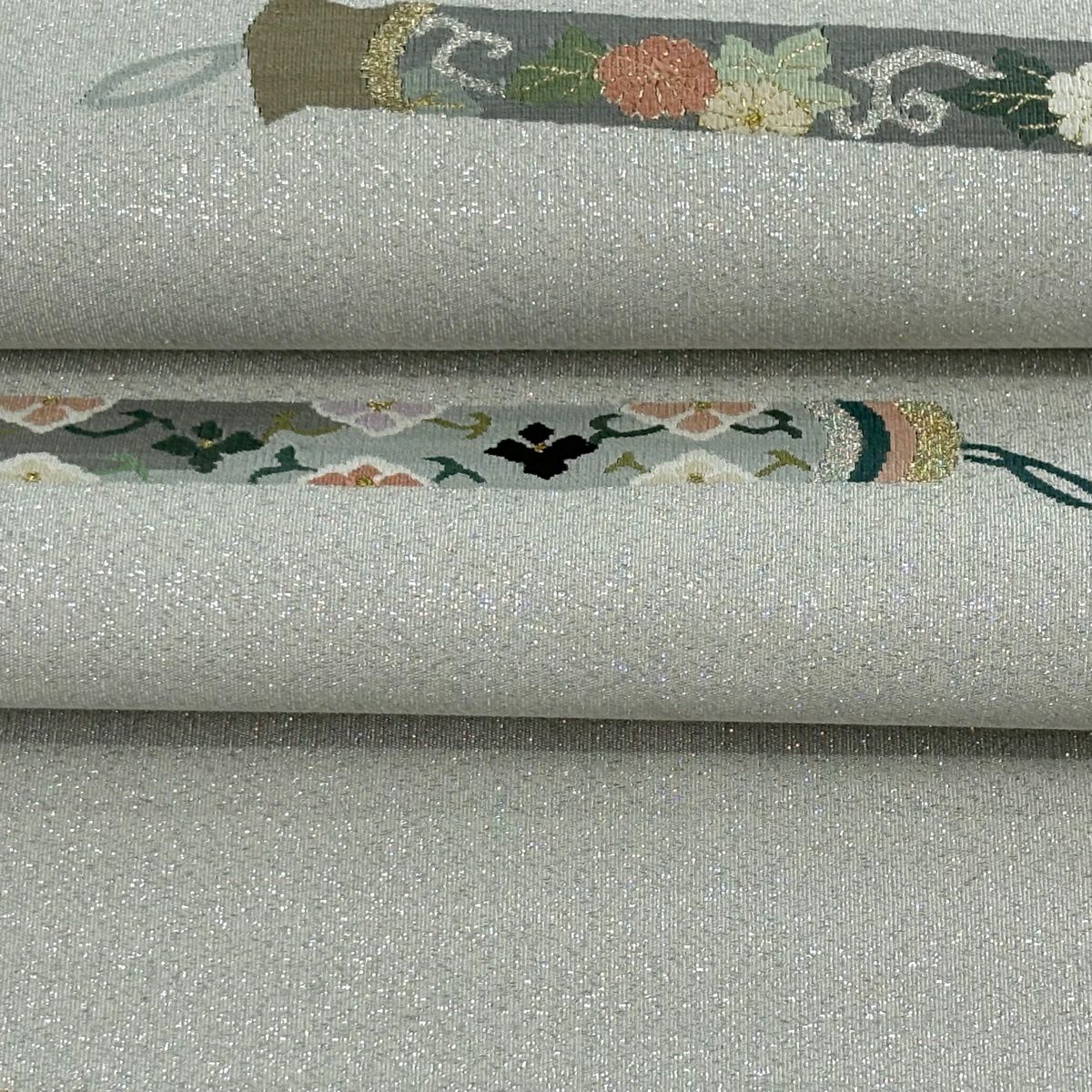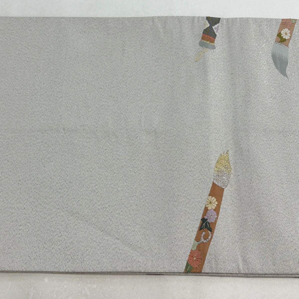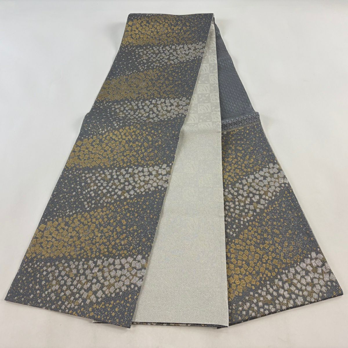 【美品】 袋帯 逸品 箔散らし 金銀糸 箔 灰色 六通 正絹