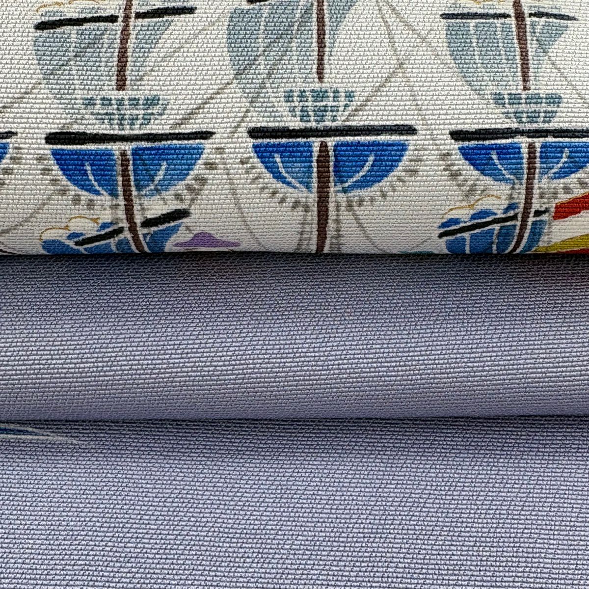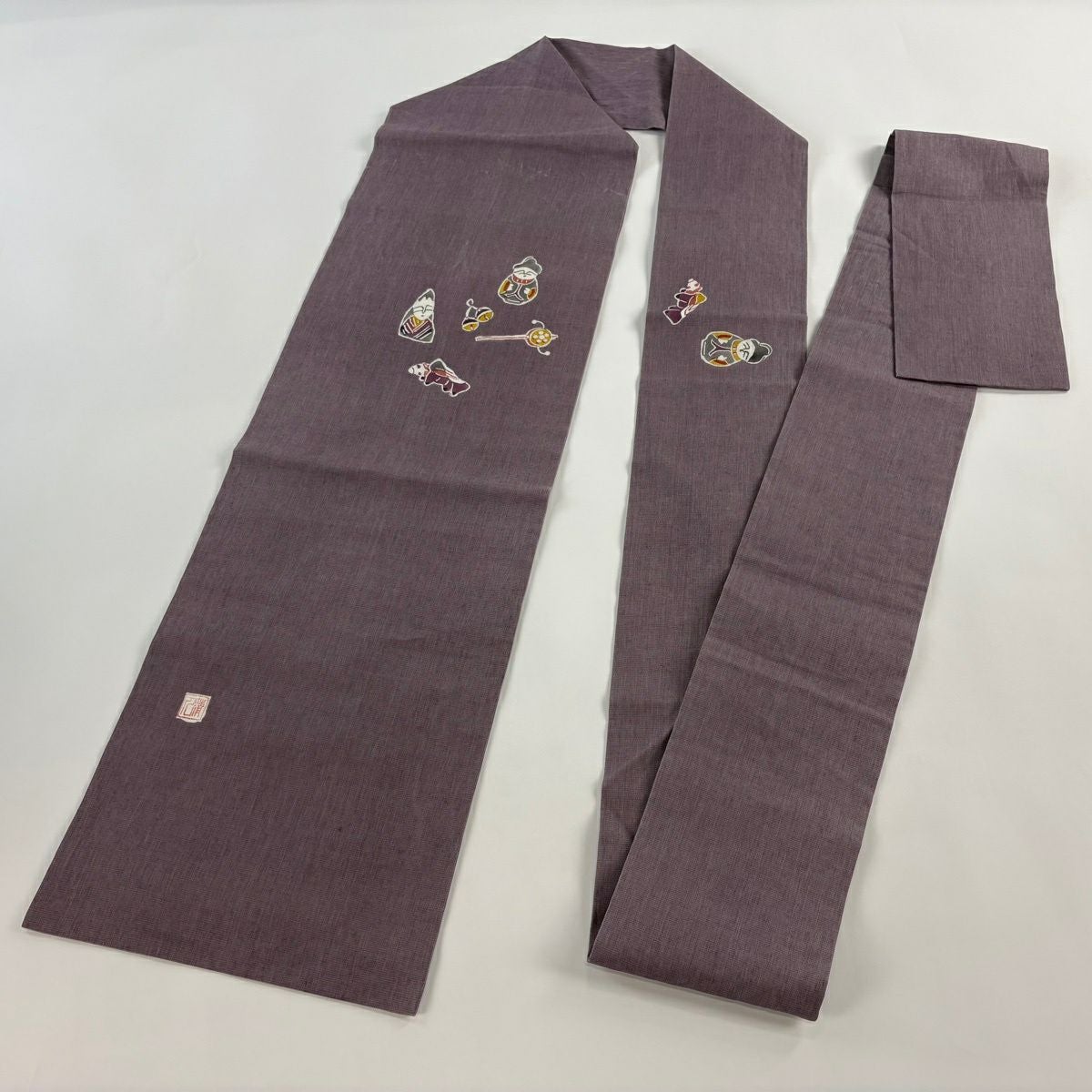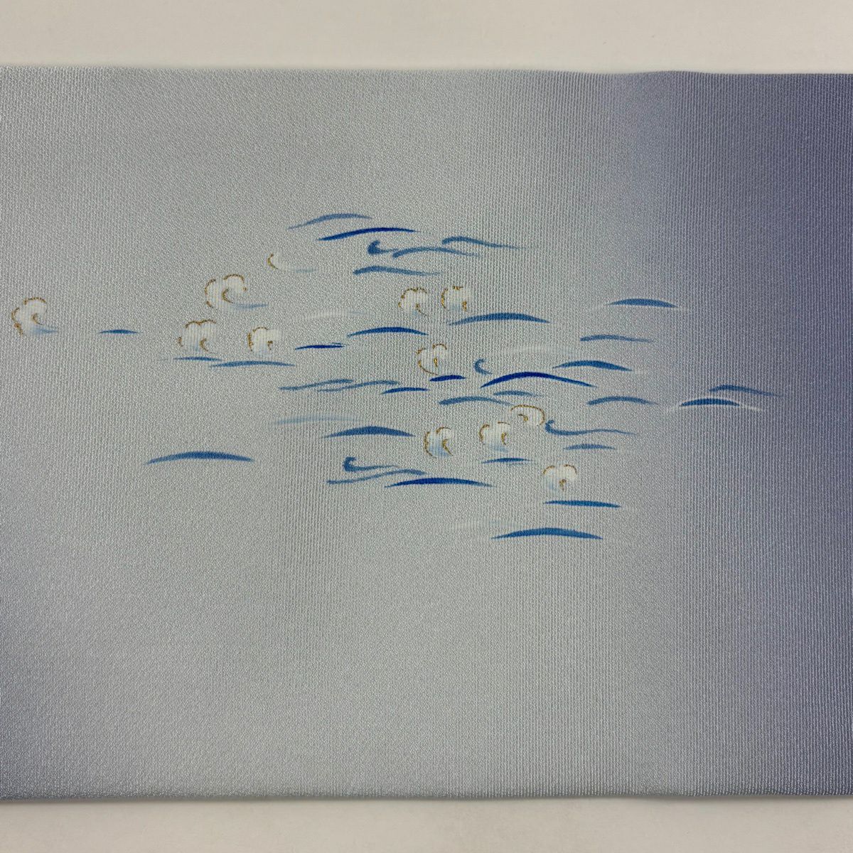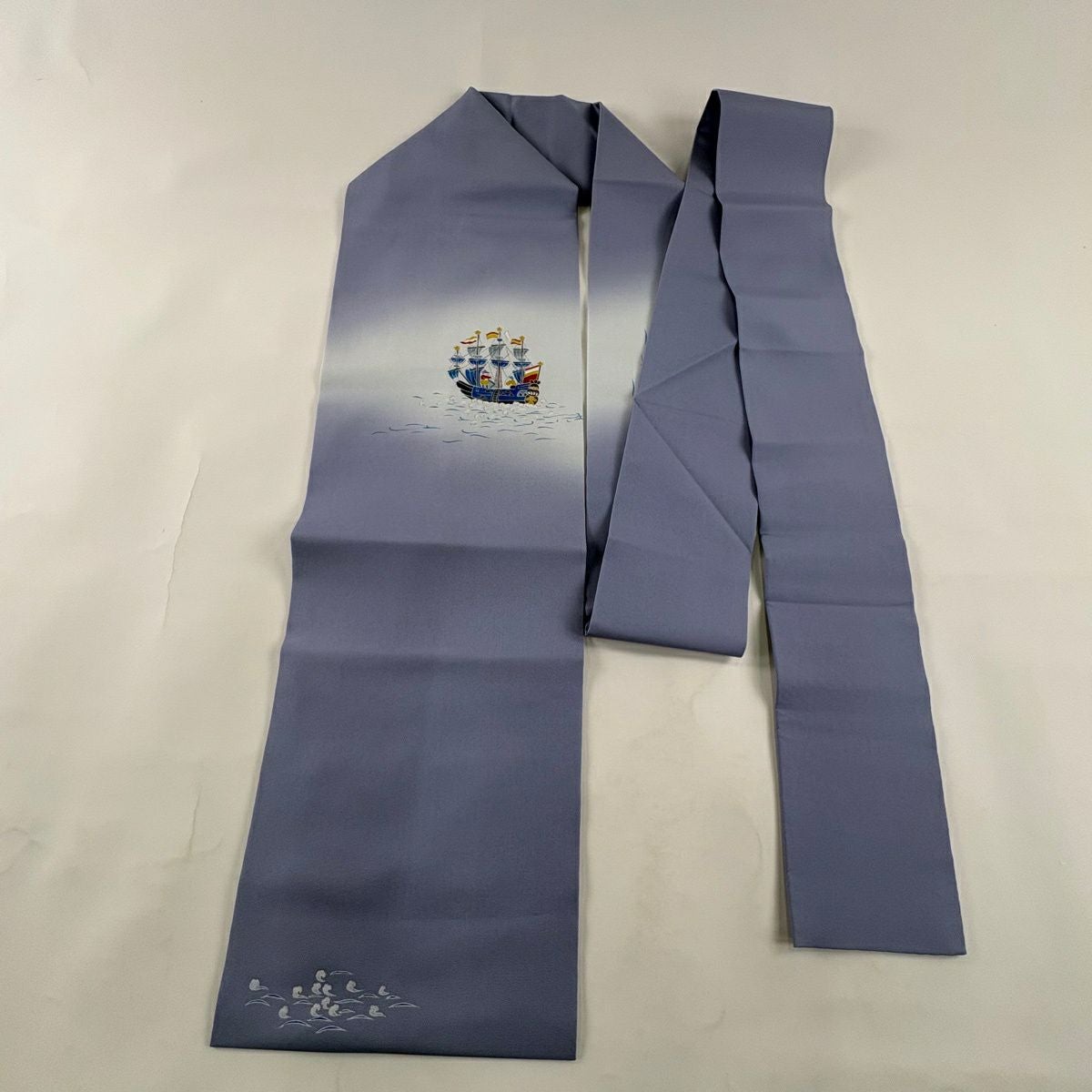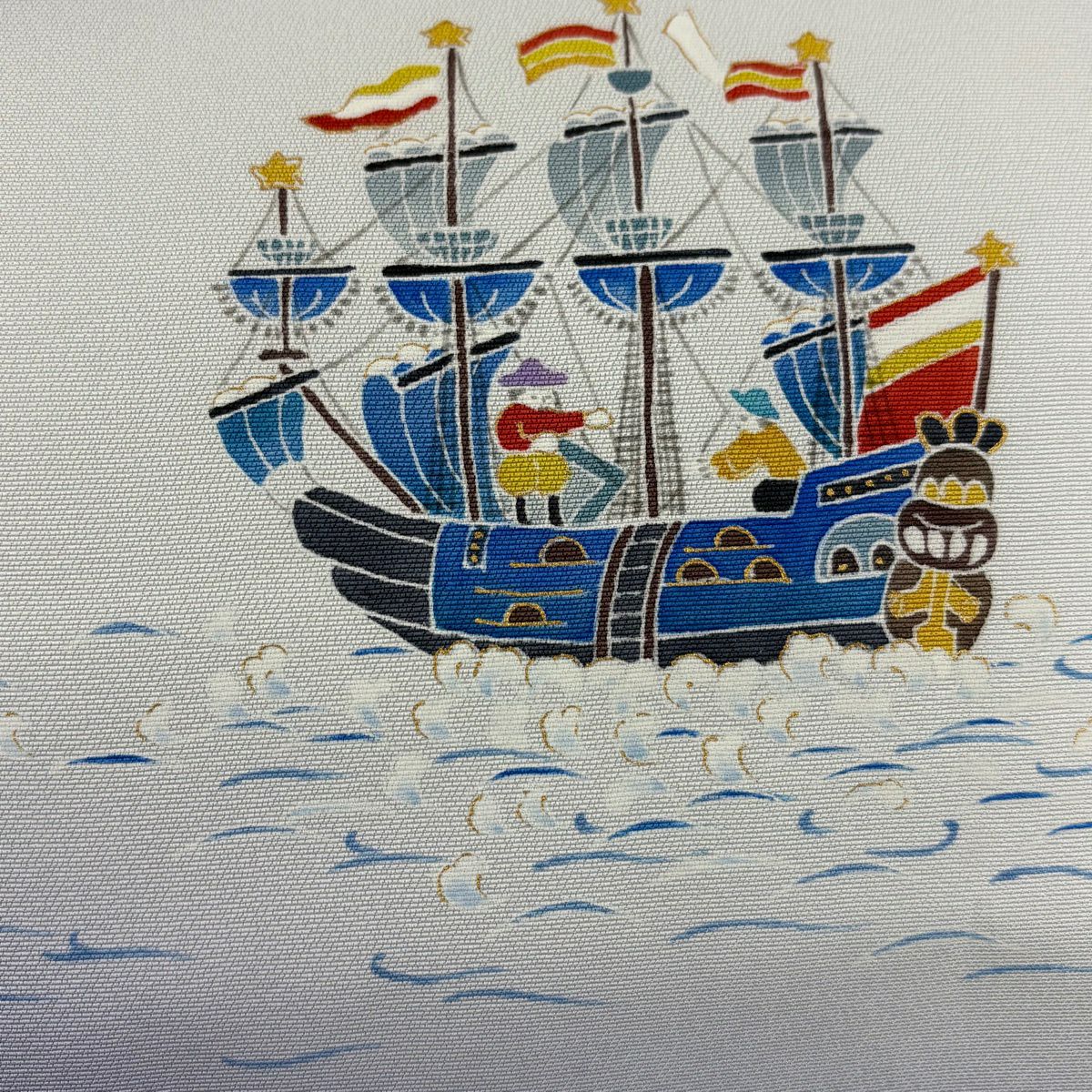 【美品】 名古屋帯 逸品 船 人物 金彩 ぼかし 紫 正絹