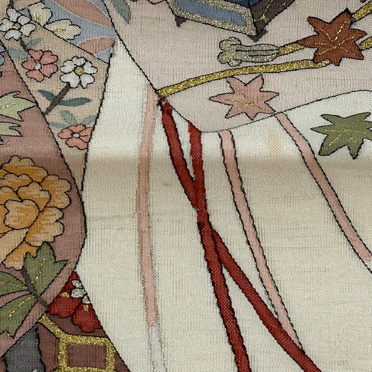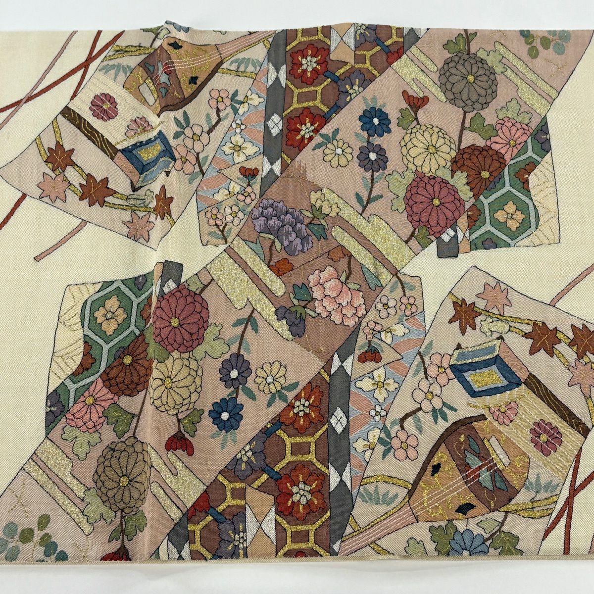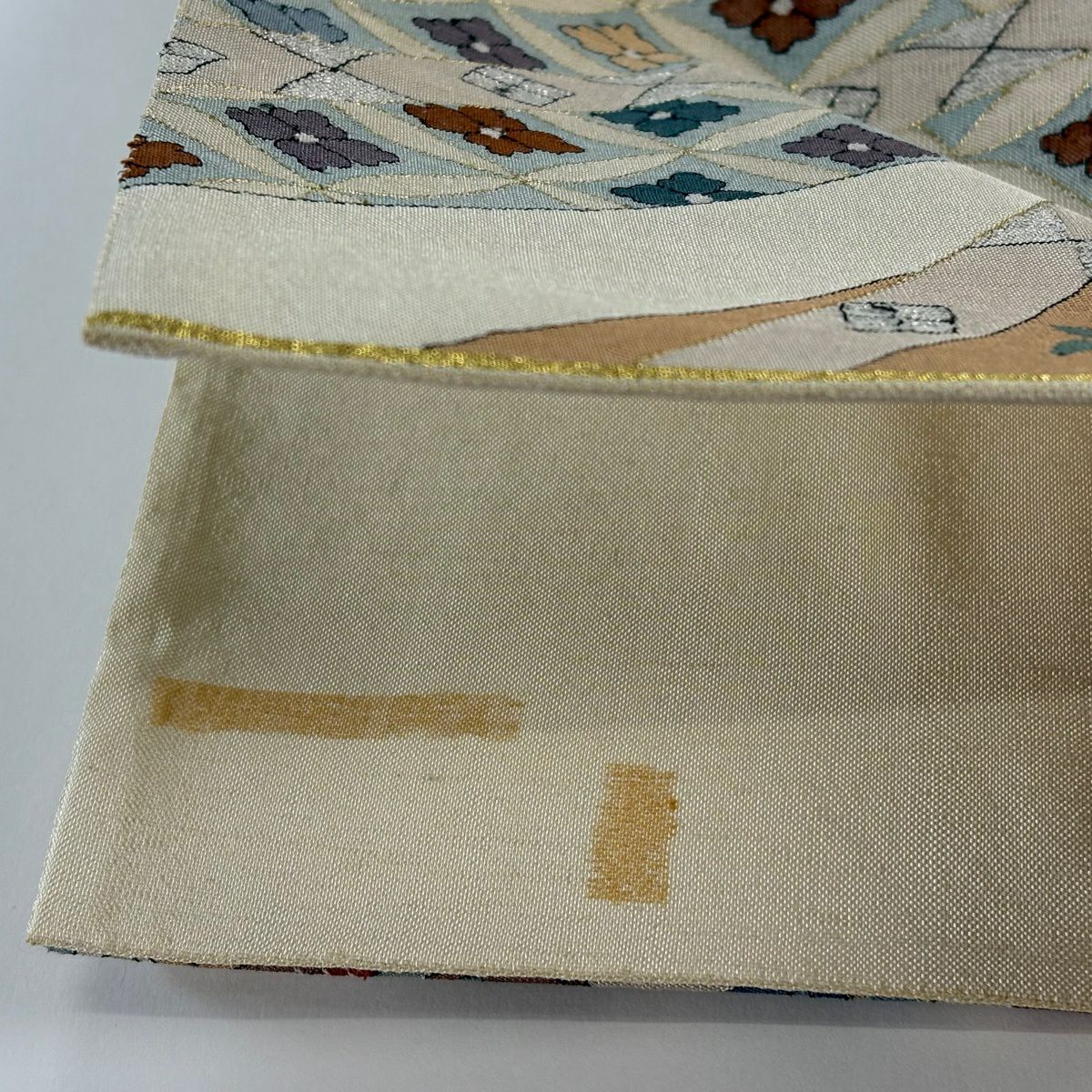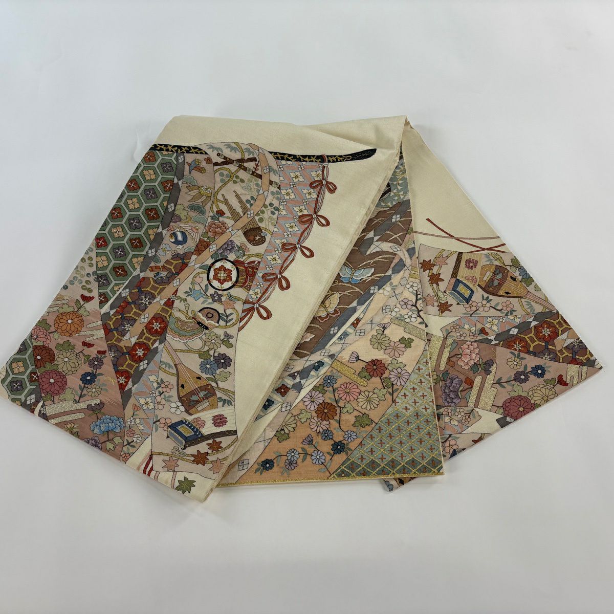 袋帯 逸品 几帳 和楽器 金銀糸 クリーム お太鼓柄 正絹