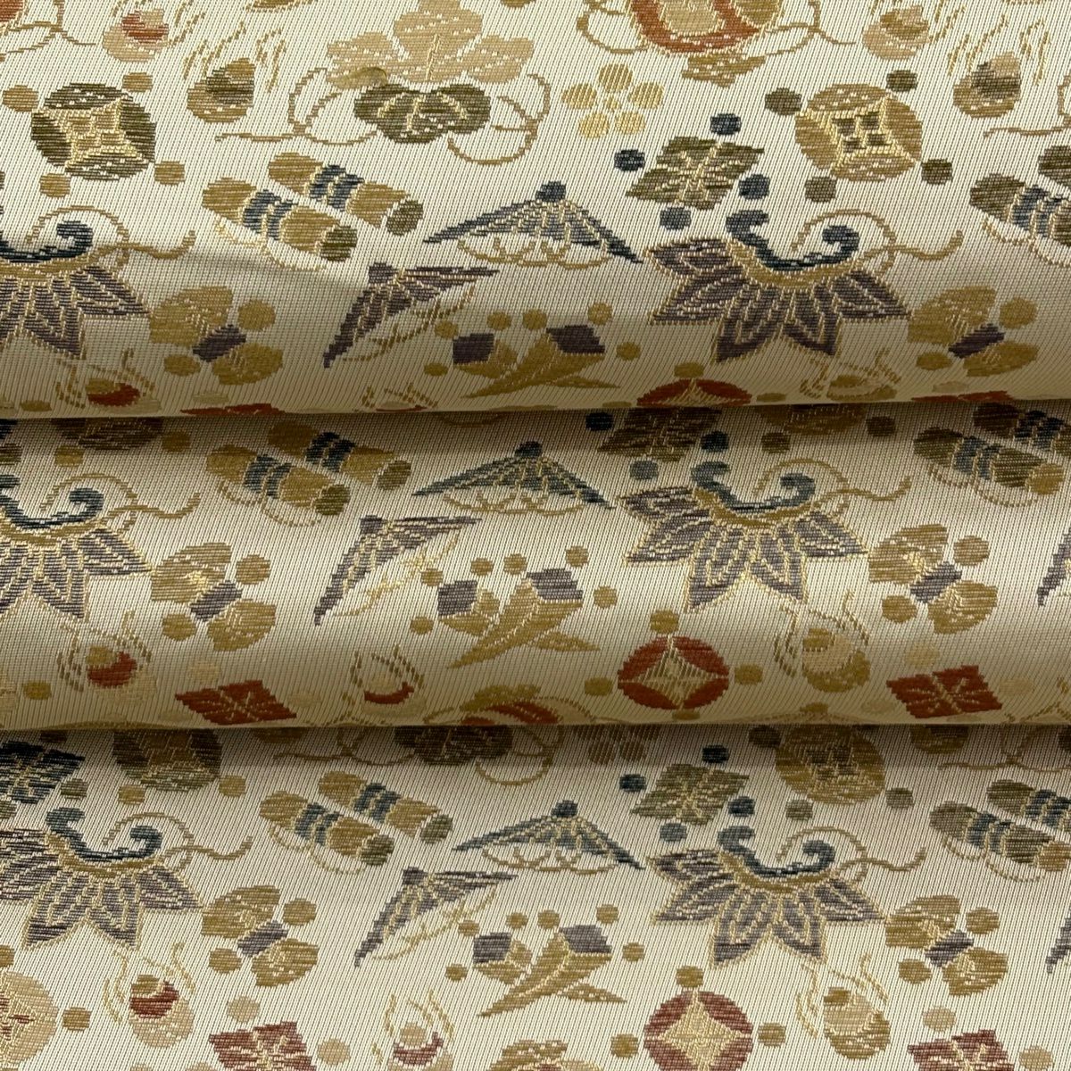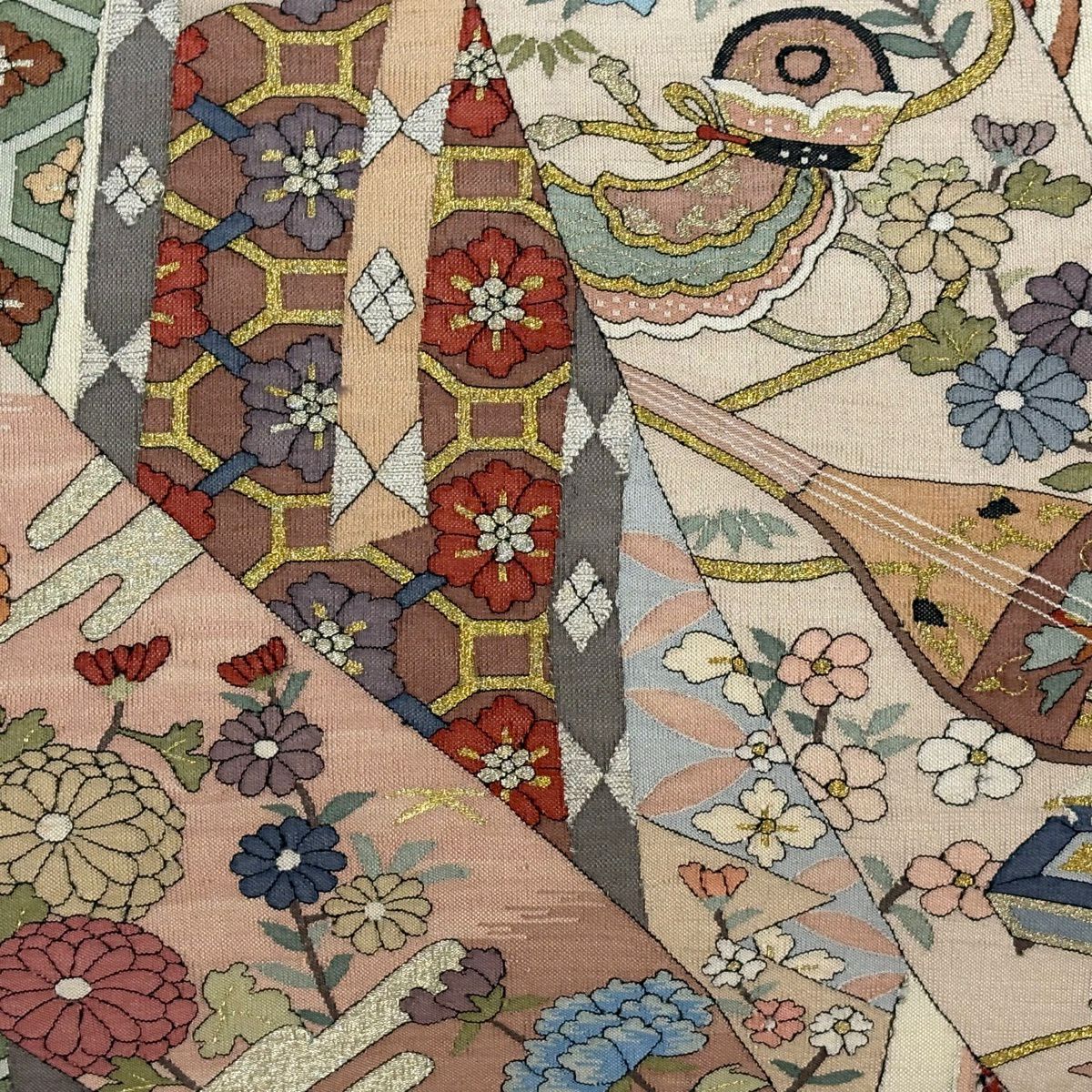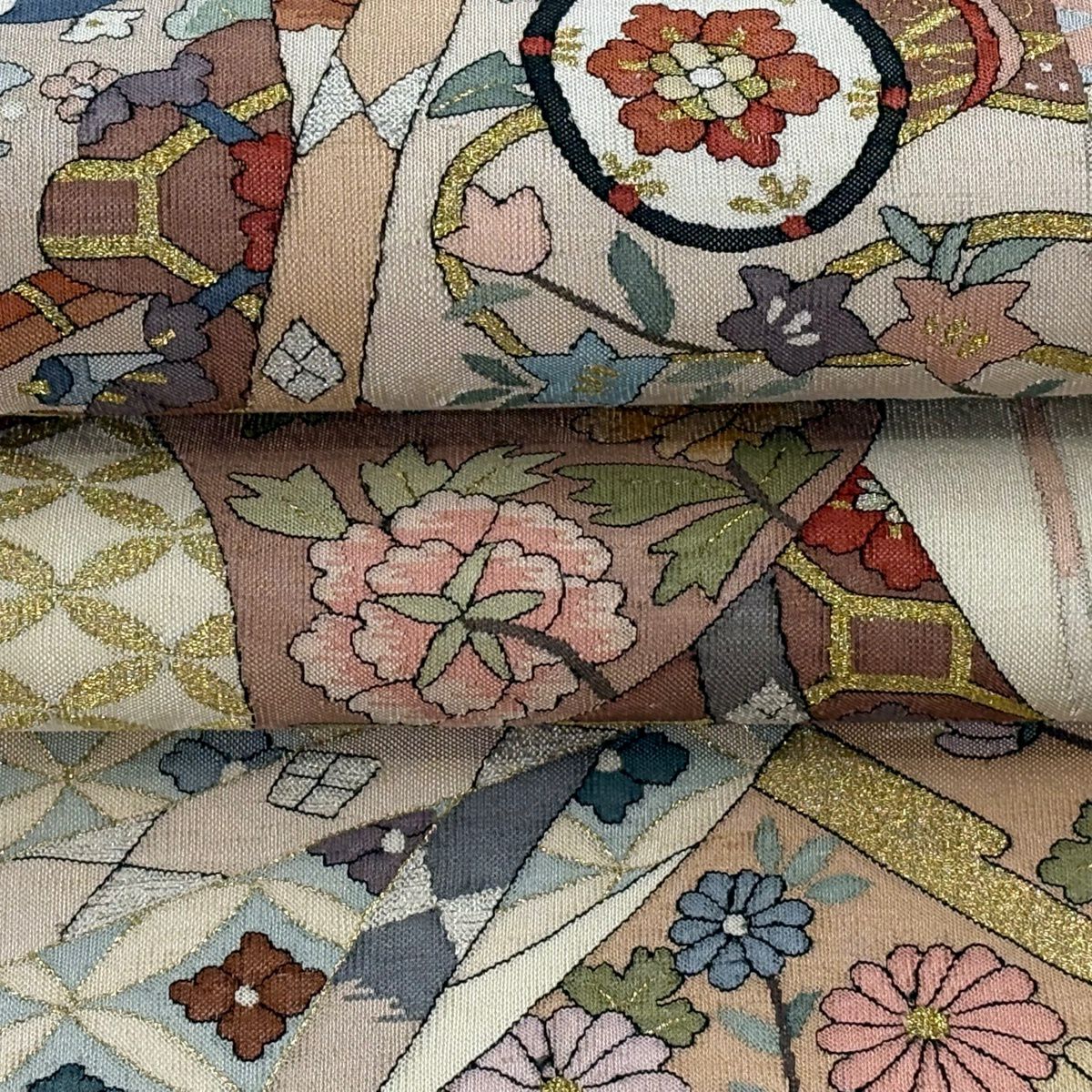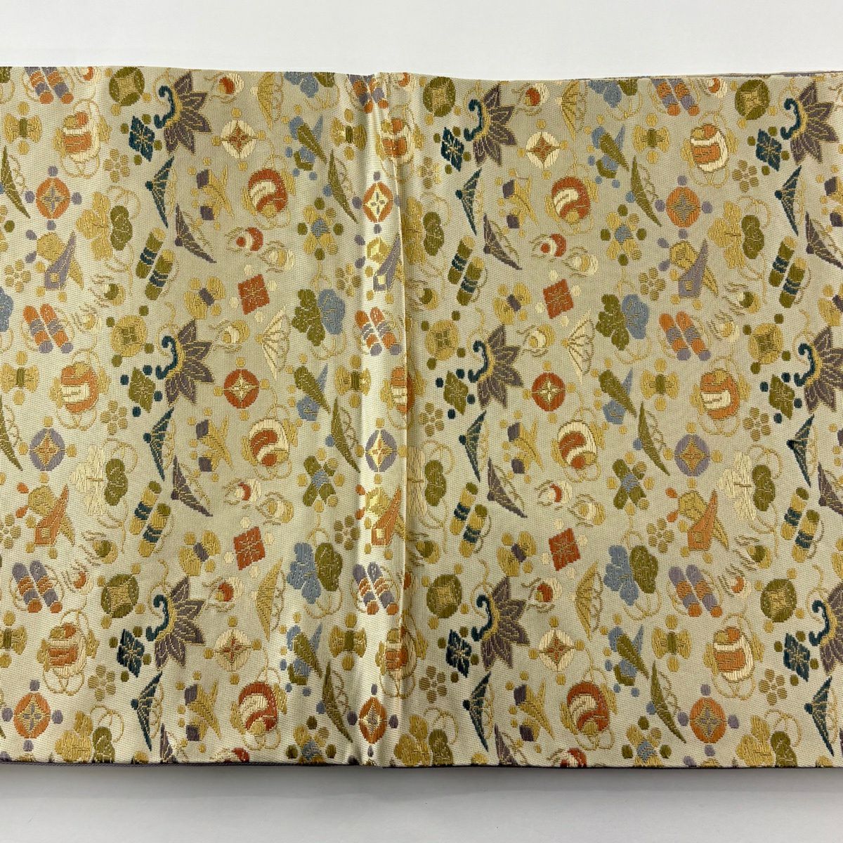 袋帯 逸品 几帳 和楽器 金銀糸 クリーム お太鼓柄 正絹