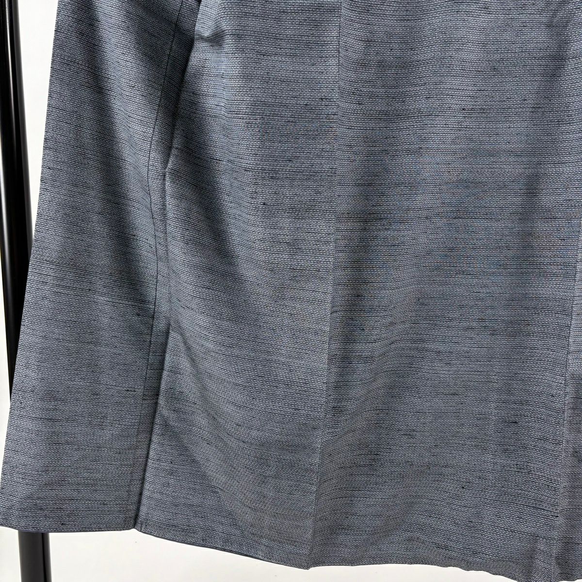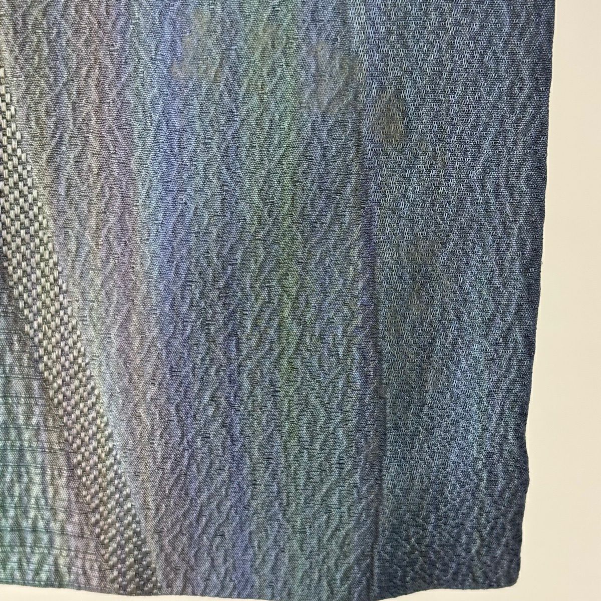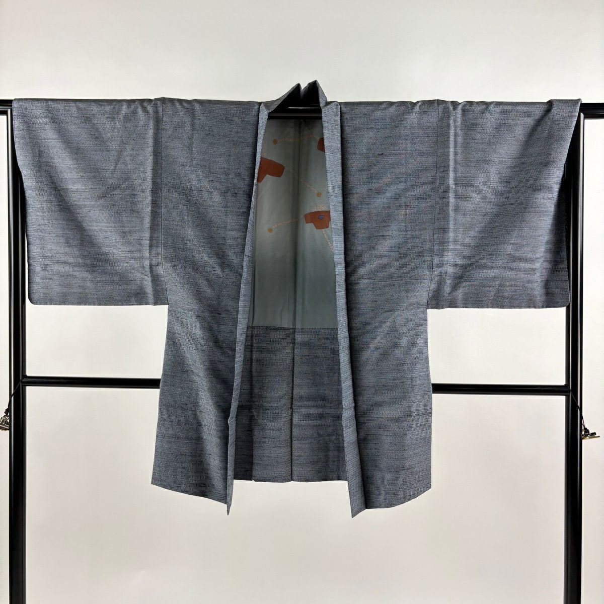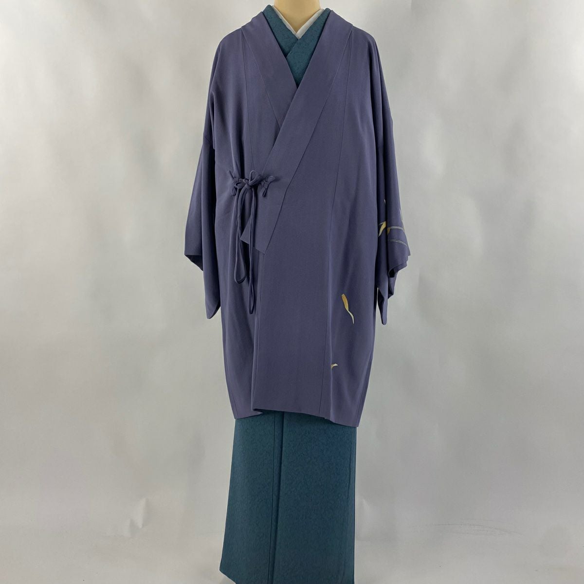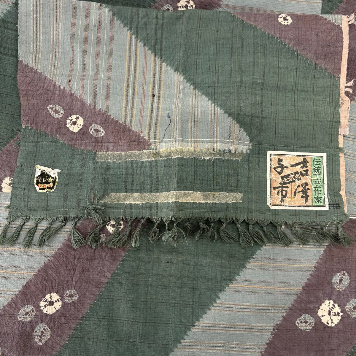 道中着 身丈100.5cm 裄丈69.5cm L 和装コート 着物衿 落款あり 縦縞 よろけ縞 ぼかし 灰緑 正絹 逸品