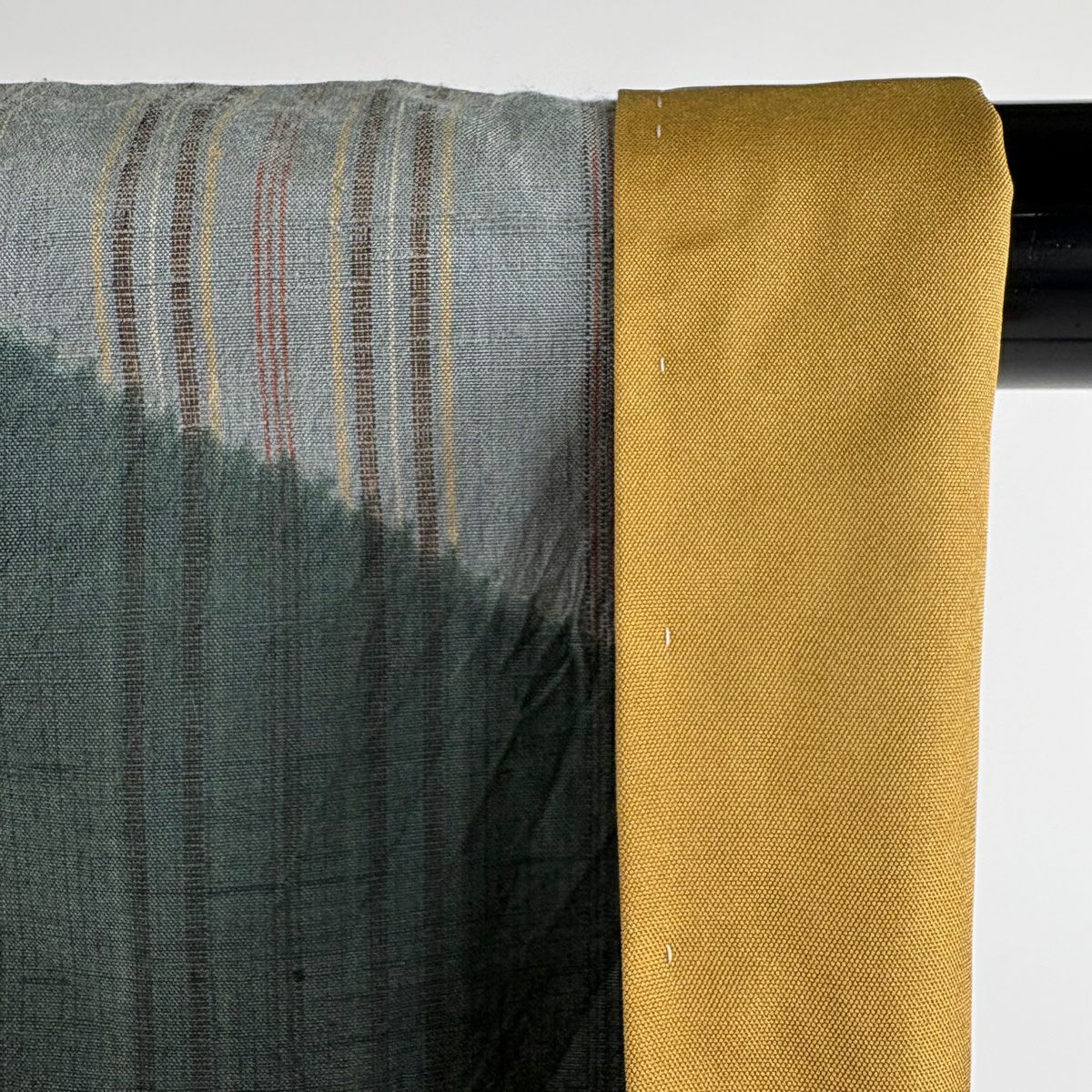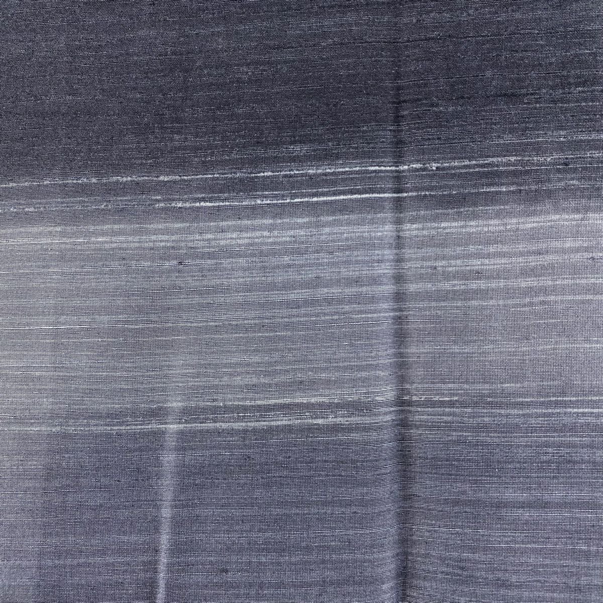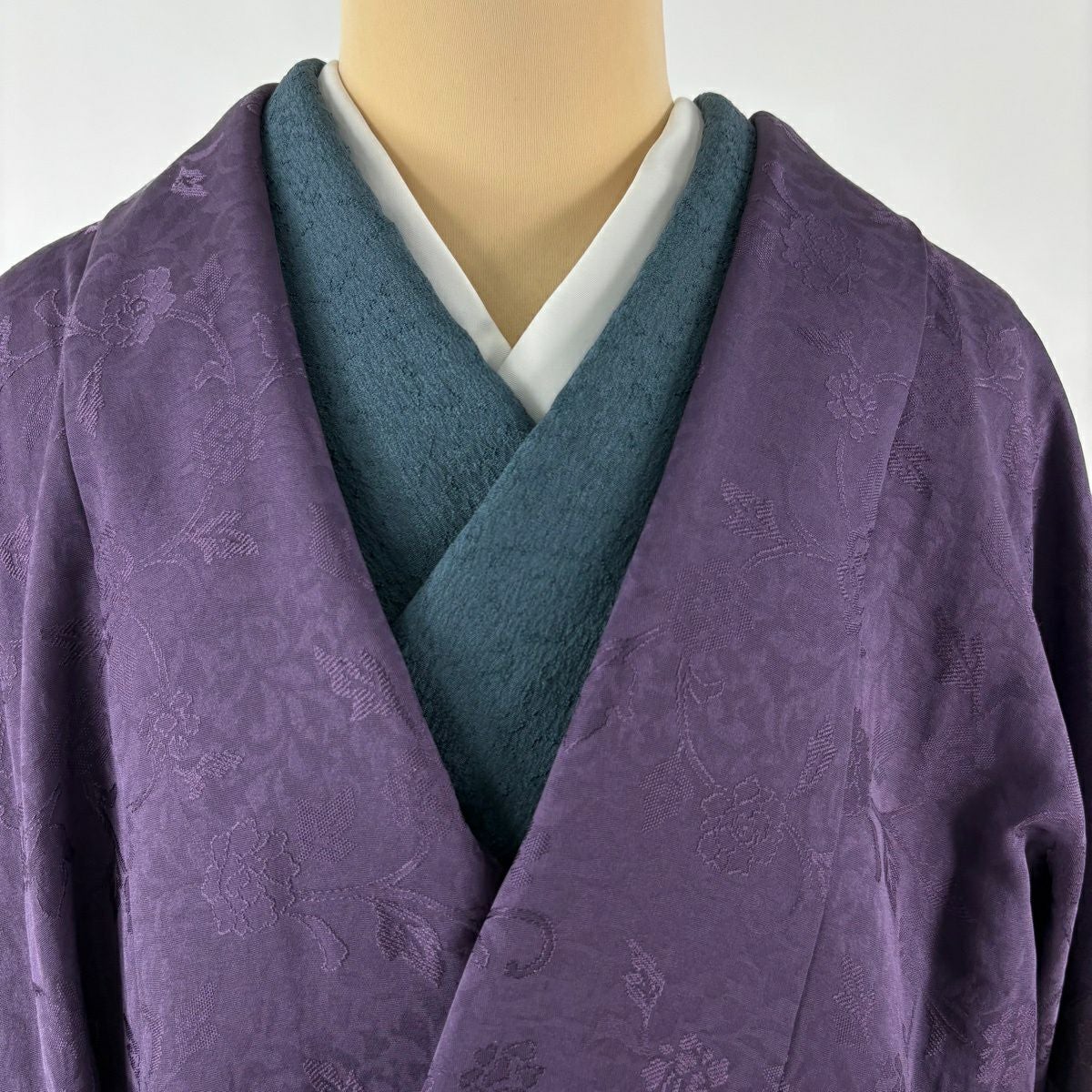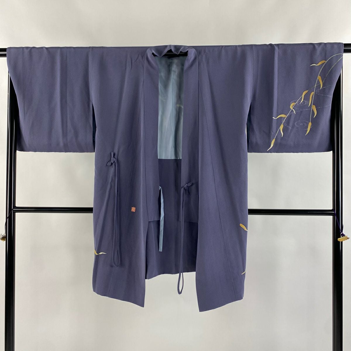 道中着 身丈100.5cm 裄丈69.5cm L 和装コート 着物衿 落款あり 縦縞 よろけ縞 ぼかし 灰緑 正絹 逸品