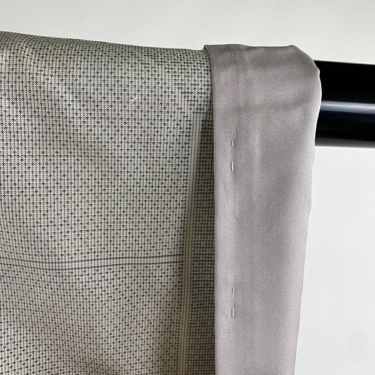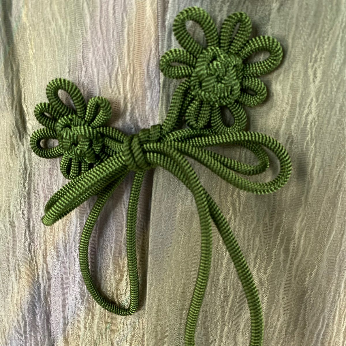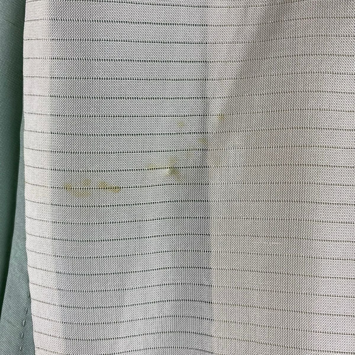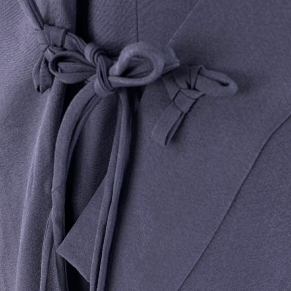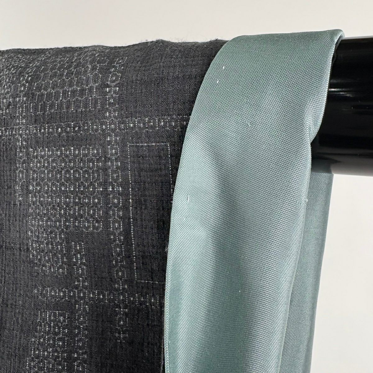 道中着 身丈100.5cm 裄丈69.5cm L 和装コート 着物衿 落款あり 縦縞 よろけ縞 ぼかし 灰緑 正絹 逸品