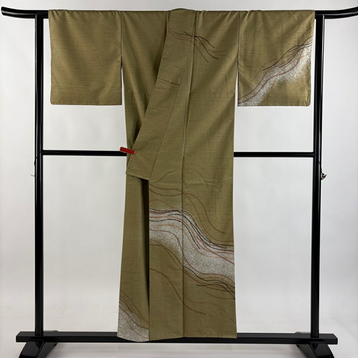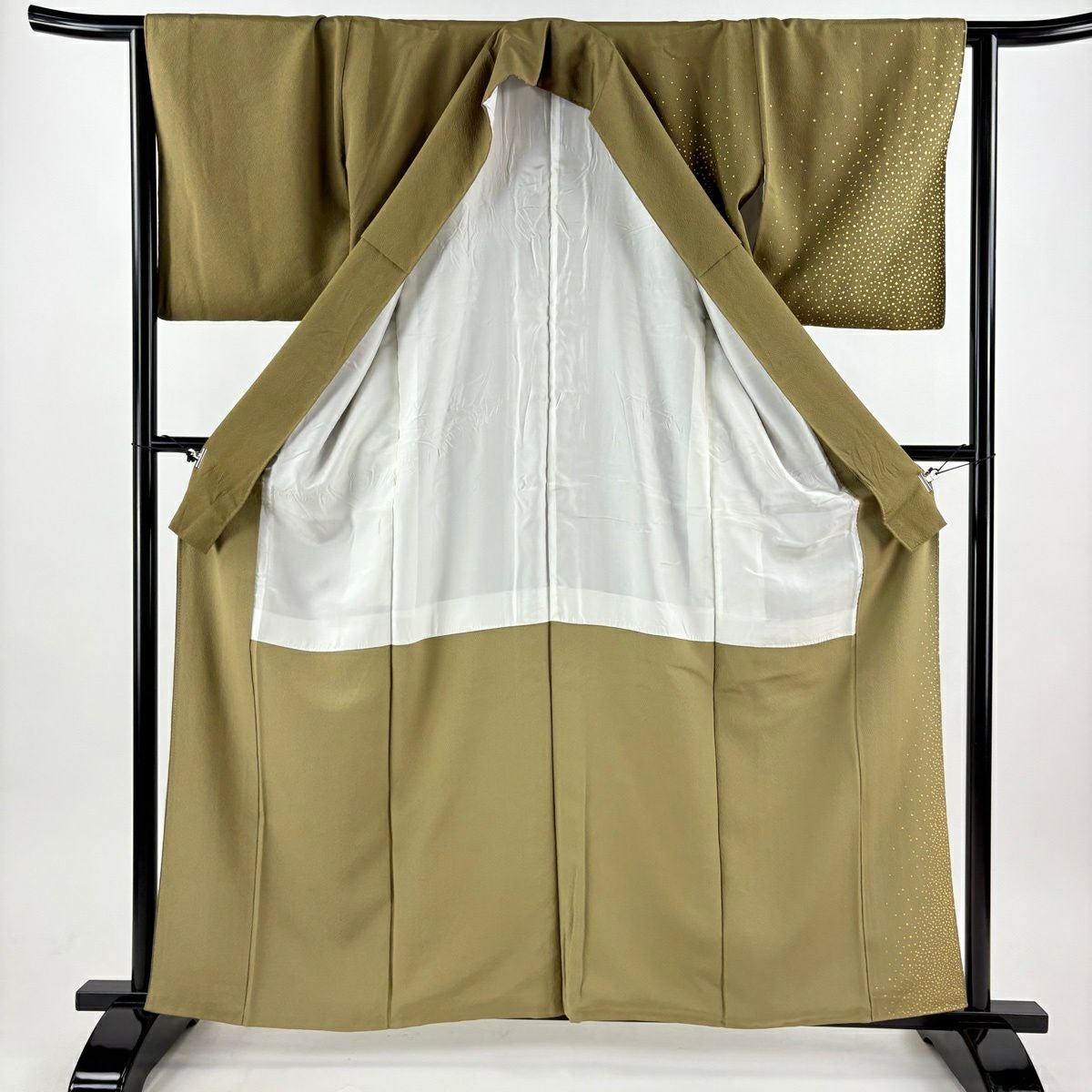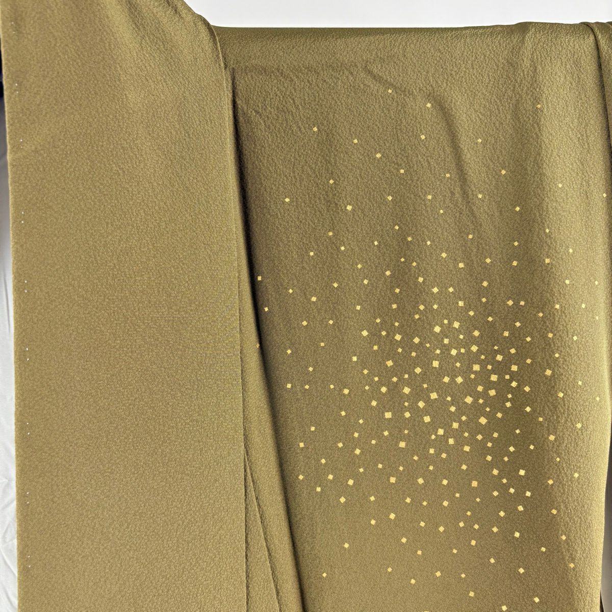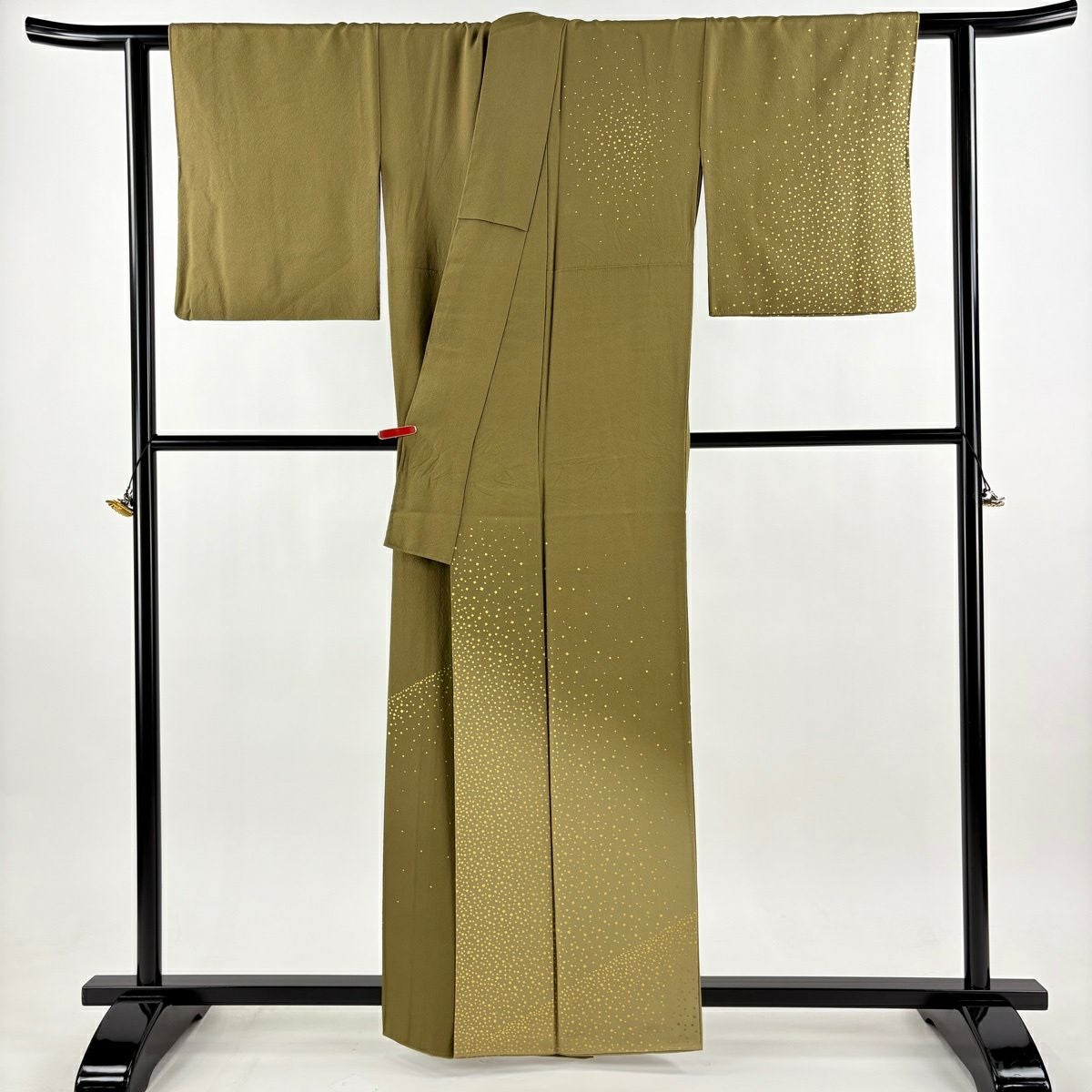 付下げ 身丈161cm 裄丈64cm M 袷 人間国宝 福田喜重 落款あり 幾何学 金彩 ぼかし 茶緑色 正絹 逸品