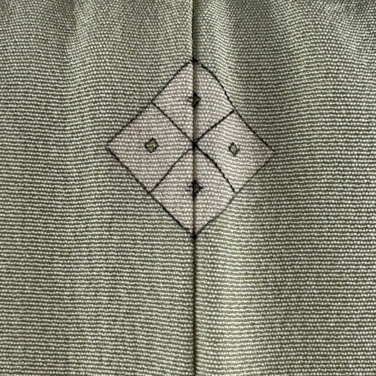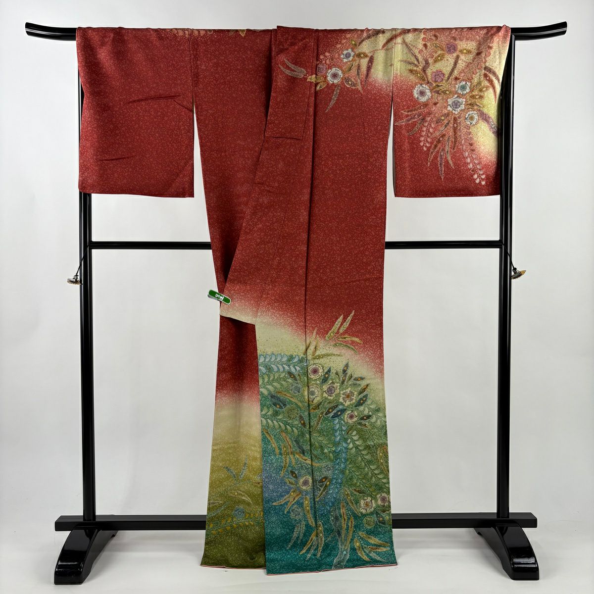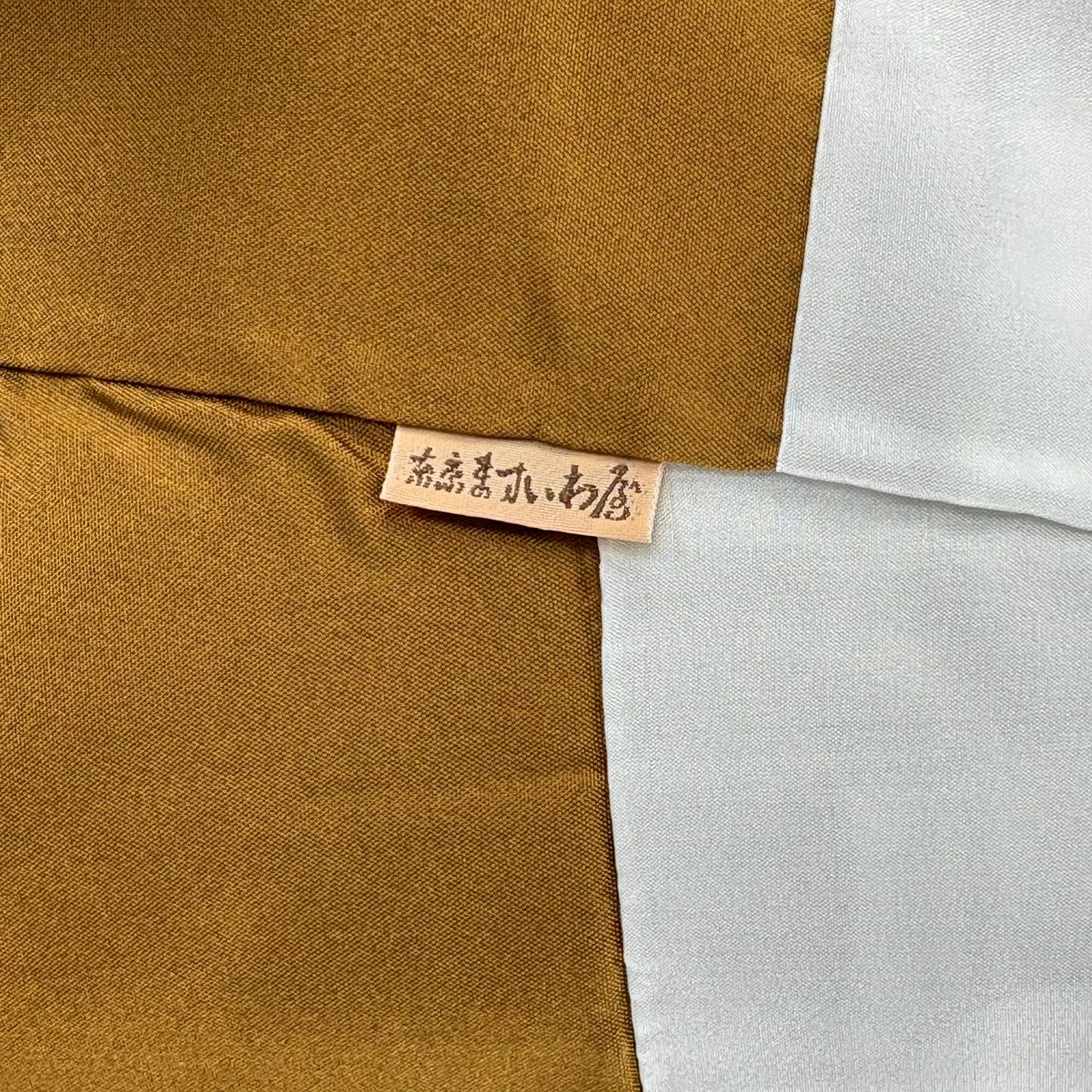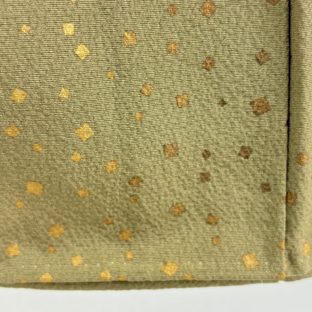 付下げ 身丈161cm 裄丈64cm M 袷 人間国宝 福田喜重 落款あり 幾何学 金彩 ぼかし 茶緑色 正絹 逸品