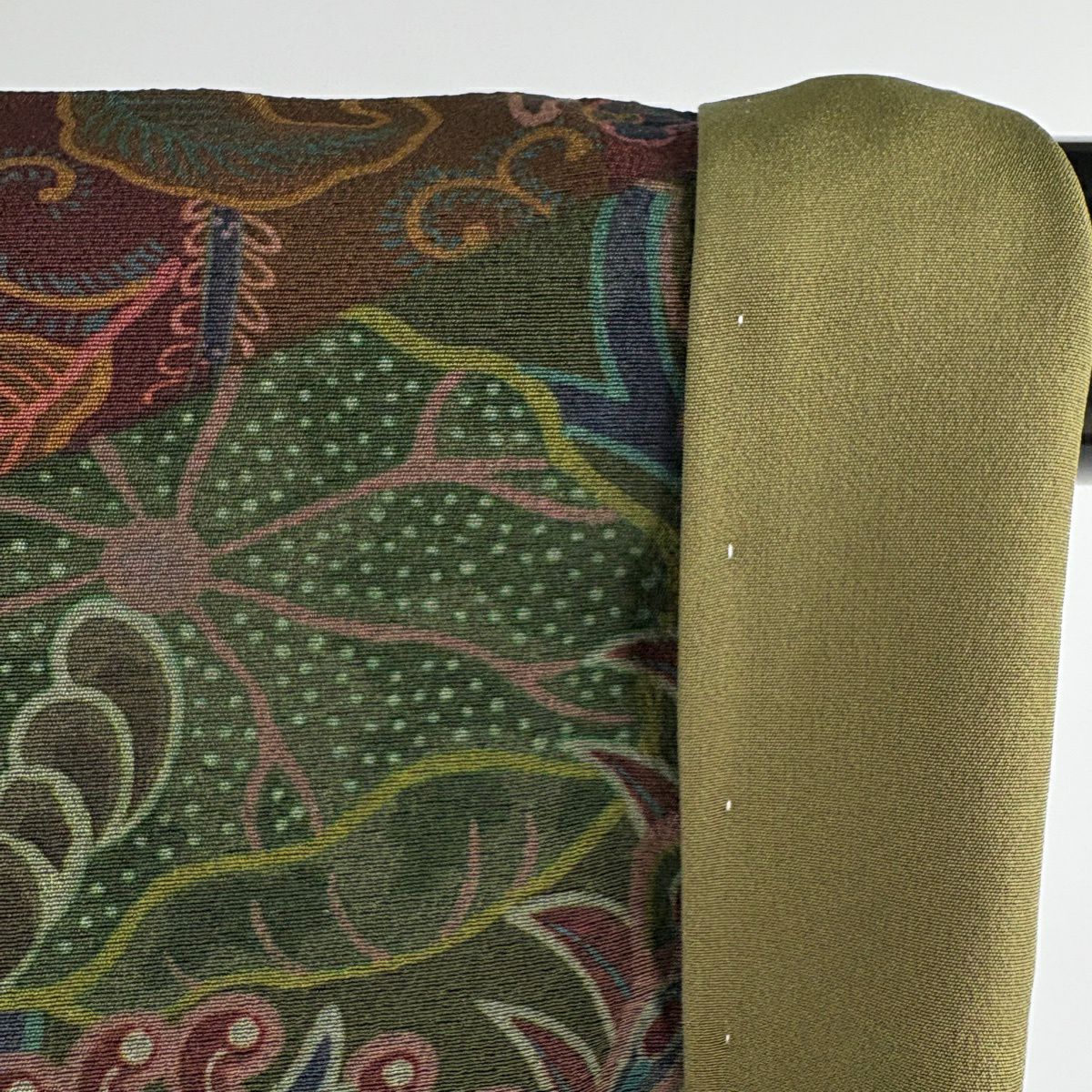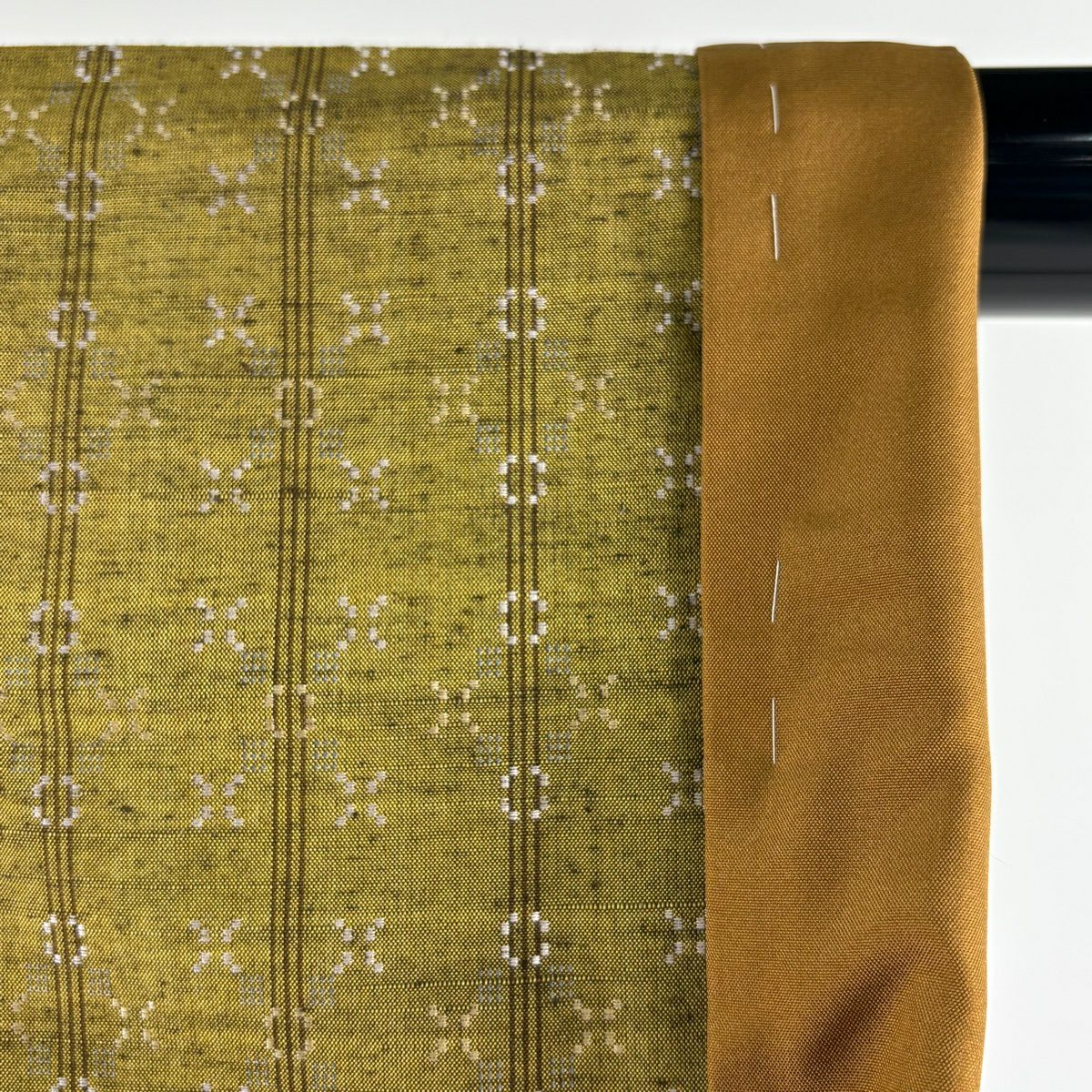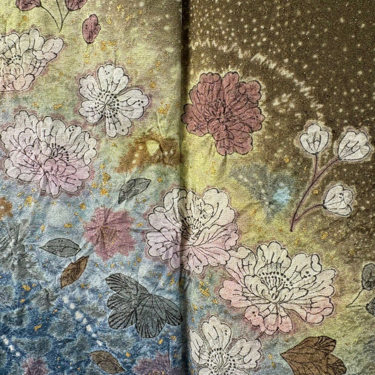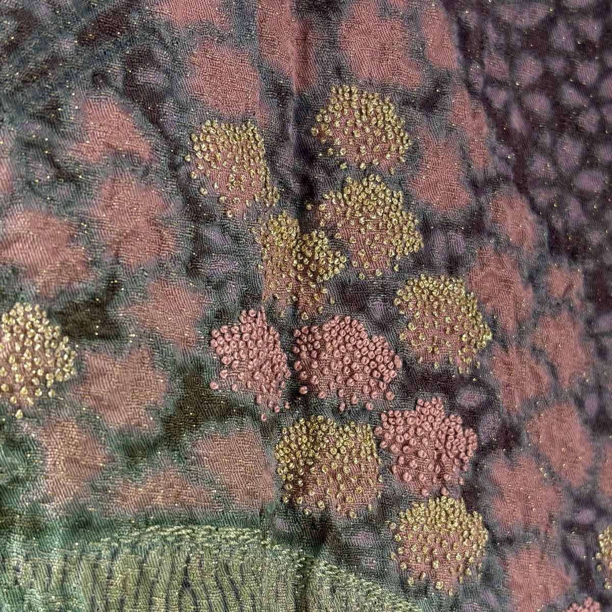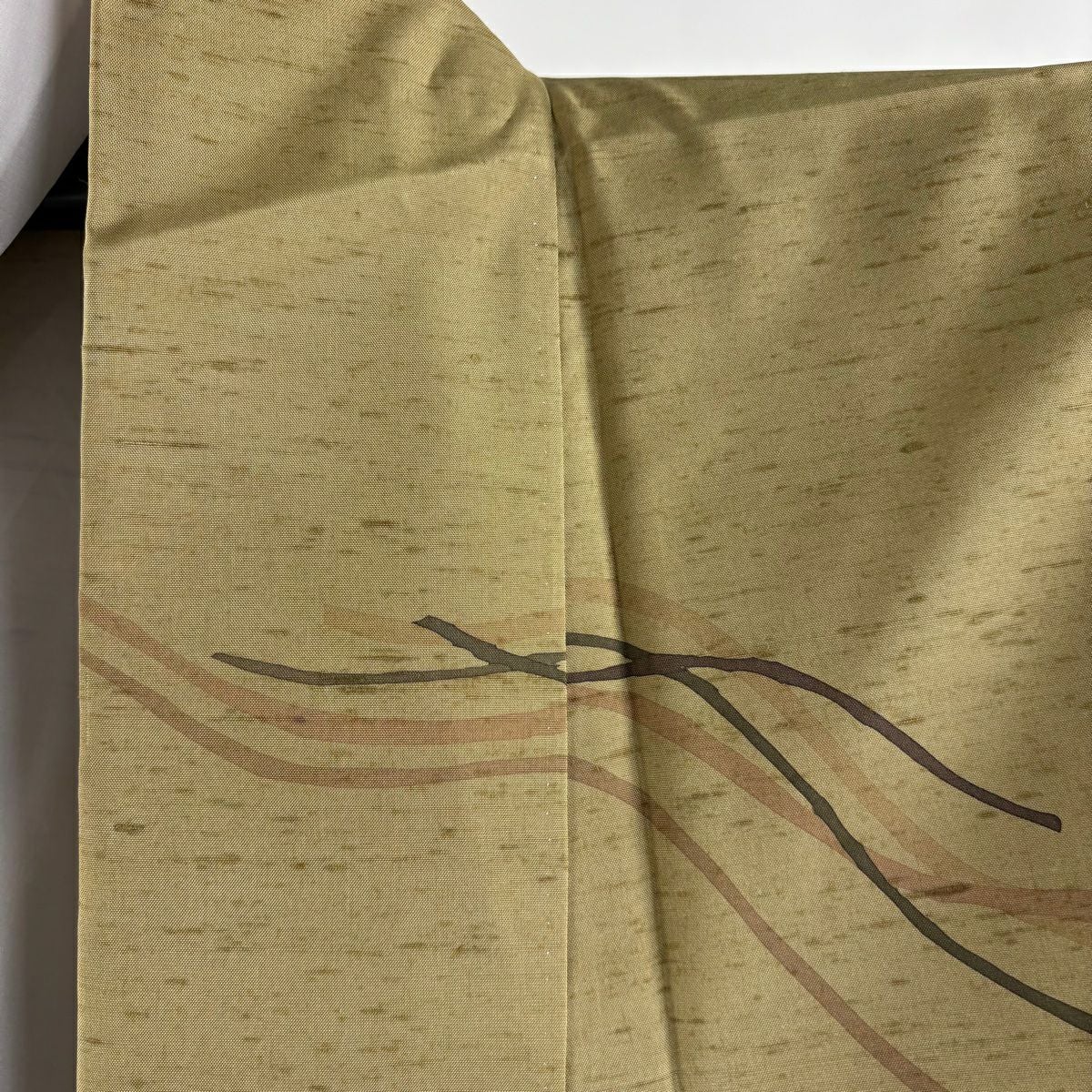 付下げ 身丈161cm 裄丈64cm M 袷 人間国宝 福田喜重 落款あり 幾何学 金彩 ぼかし 茶緑色 正絹 逸品