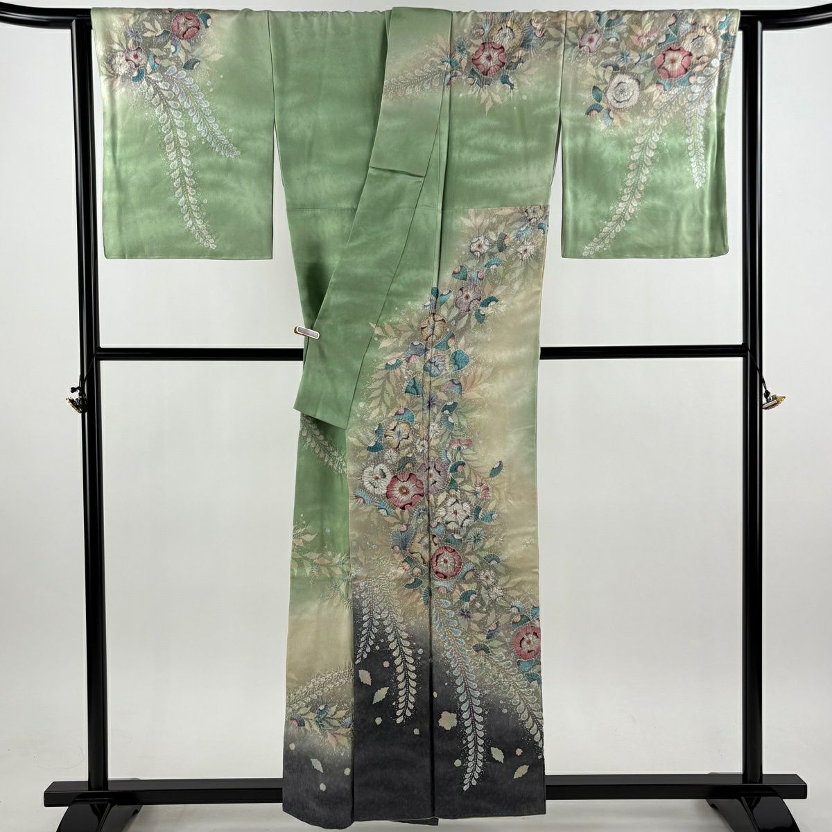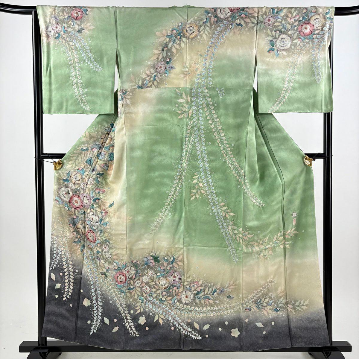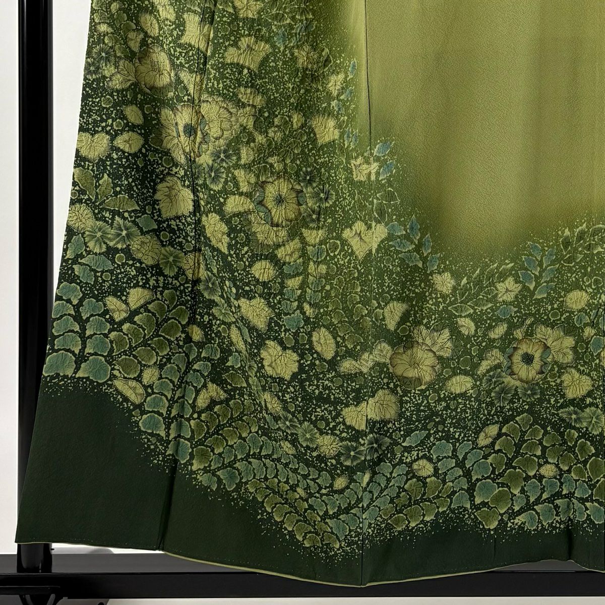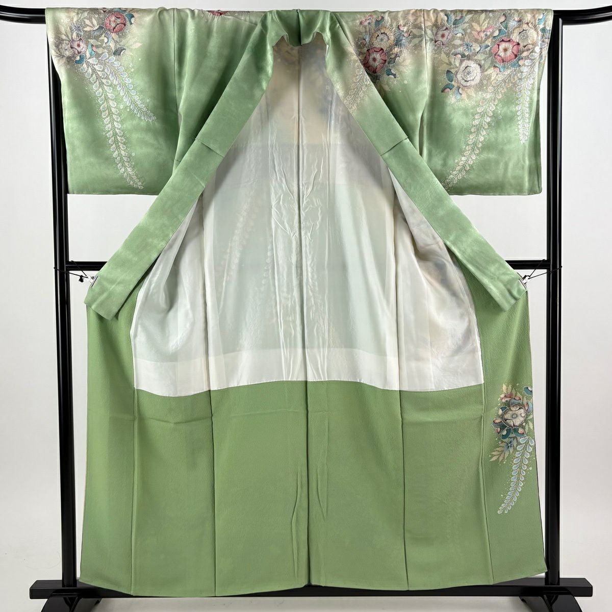 【美品】 訪問着 身丈158cm 裄丈67cm M 袷 翠山工房 落款あり 辻が花 銀通し ぼかし 薄緑 正絹 逸品