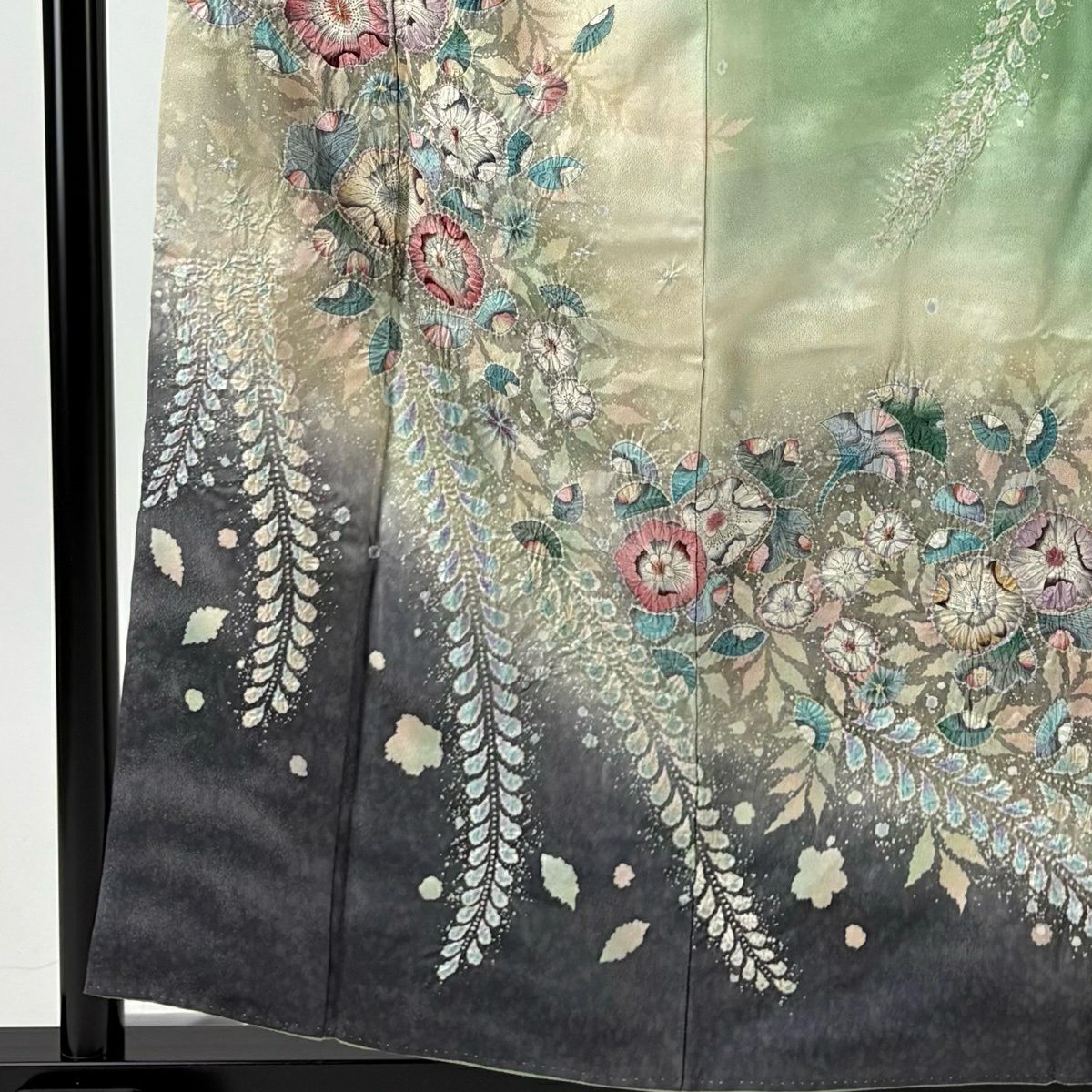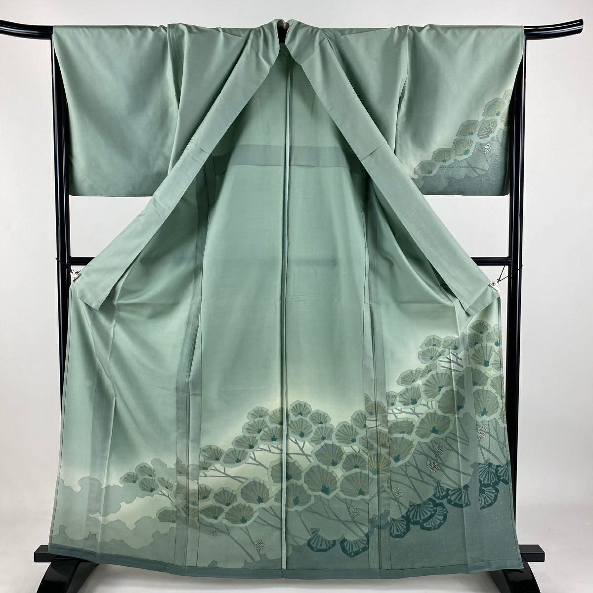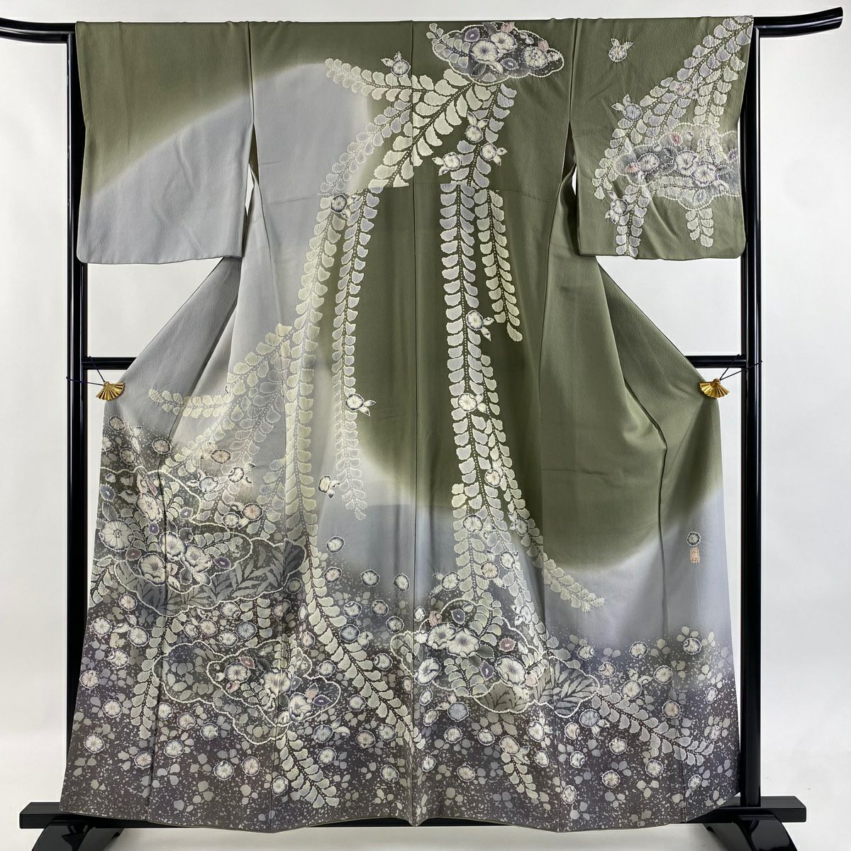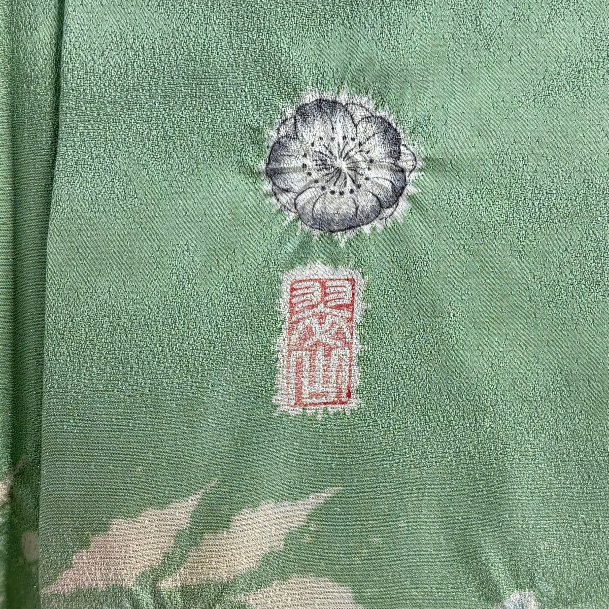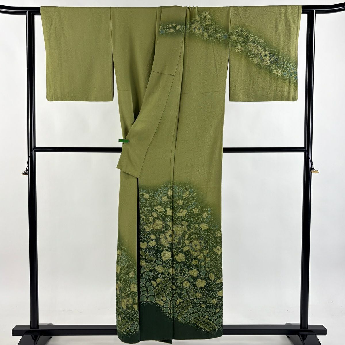 【美品】 訪問着 身丈158cm 裄丈67cm M 袷 翠山工房 落款あり 辻が花 銀通し ぼかし 薄緑 正絹 逸品