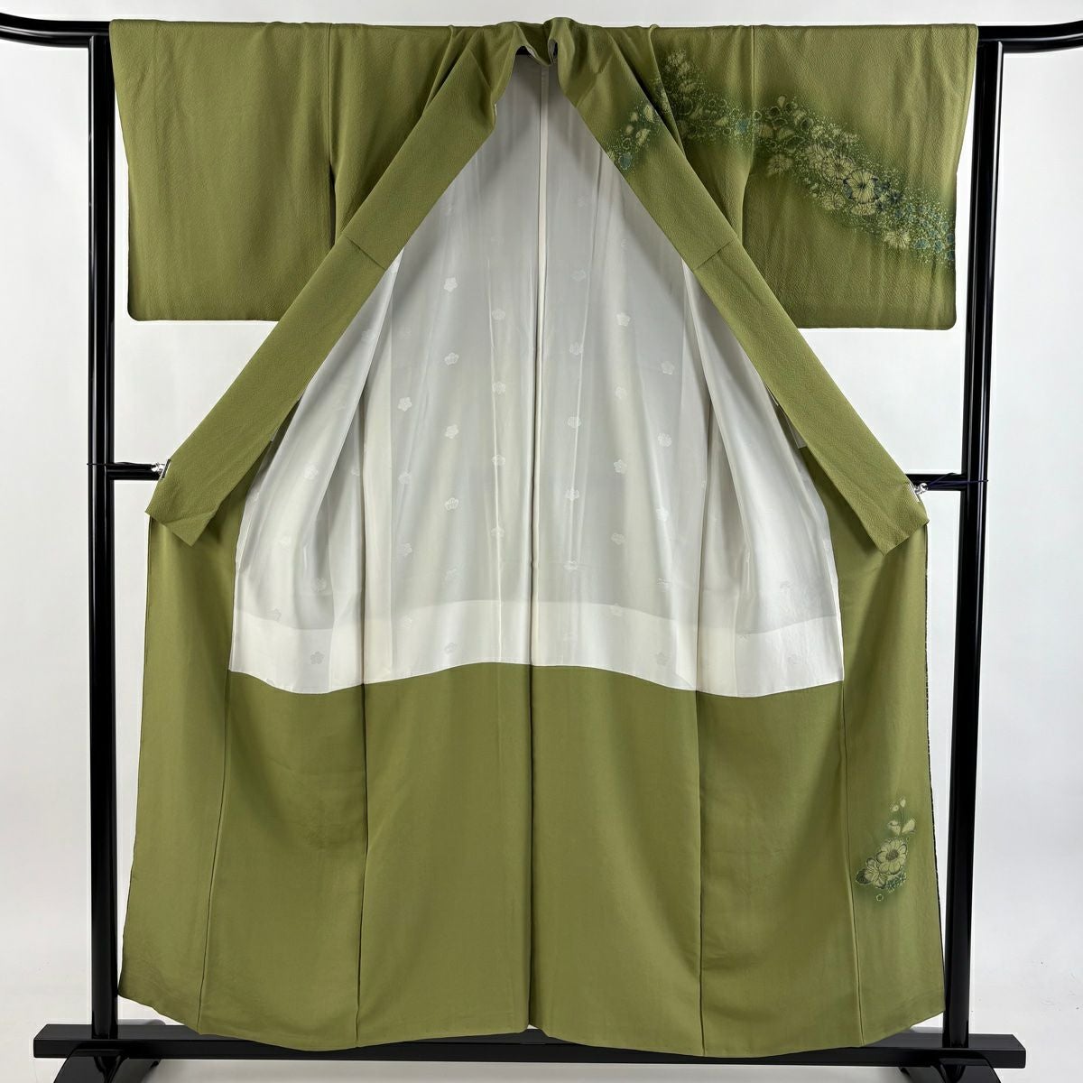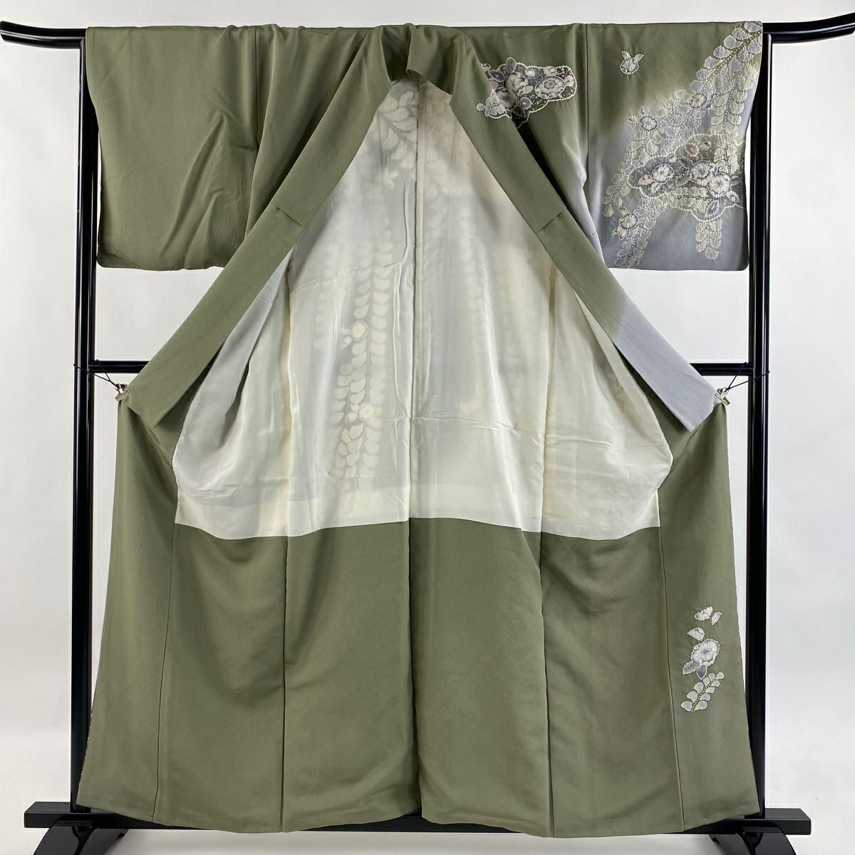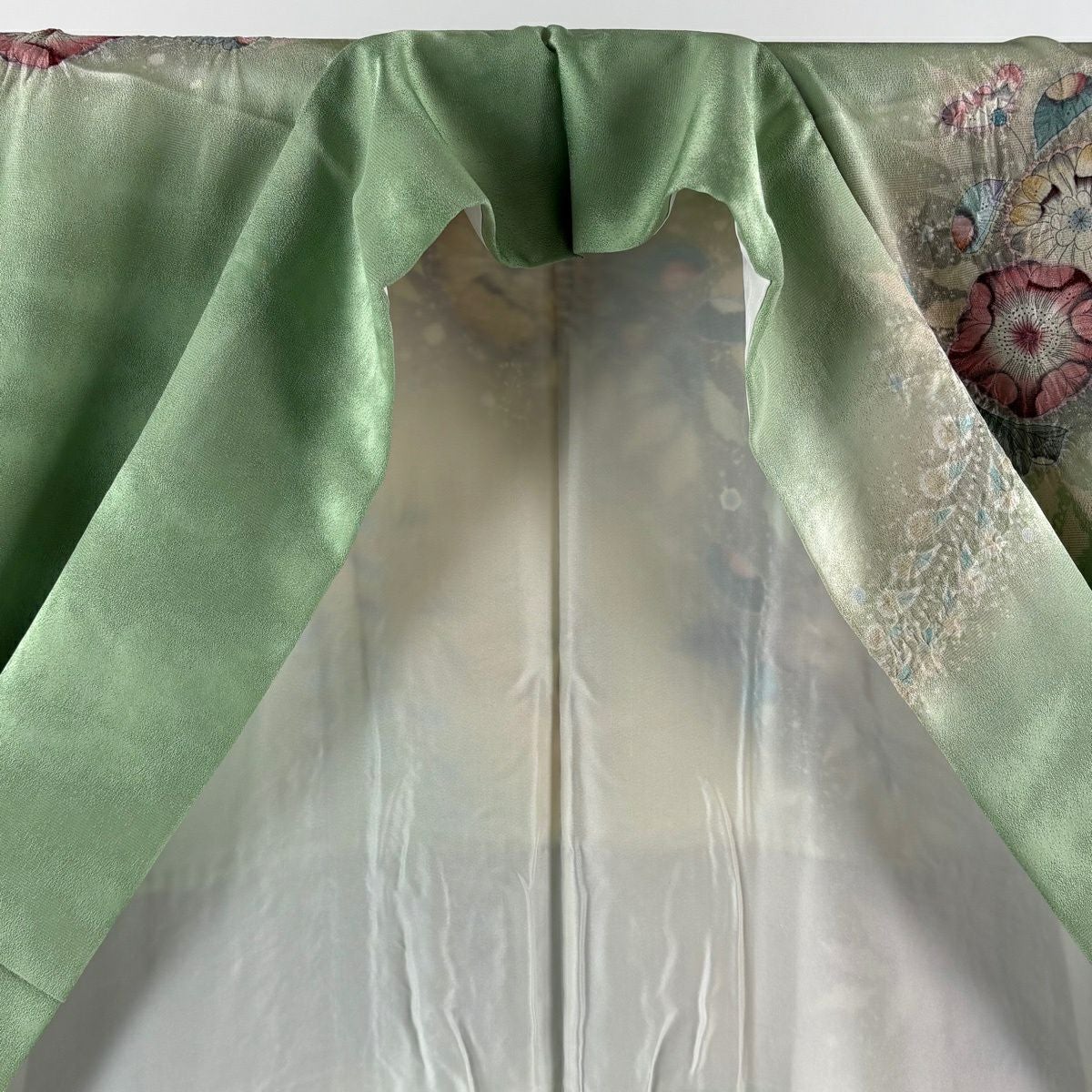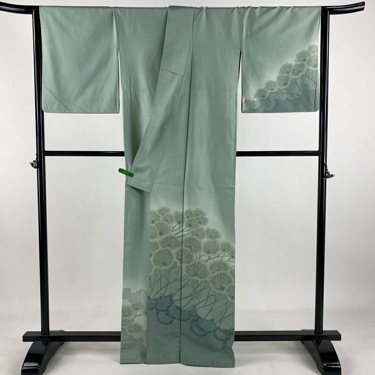 【美品】 訪問着 身丈158cm 裄丈67cm M 袷 翠山工房 落款あり 辻が花 銀通し ぼかし 薄緑 正絹 逸品