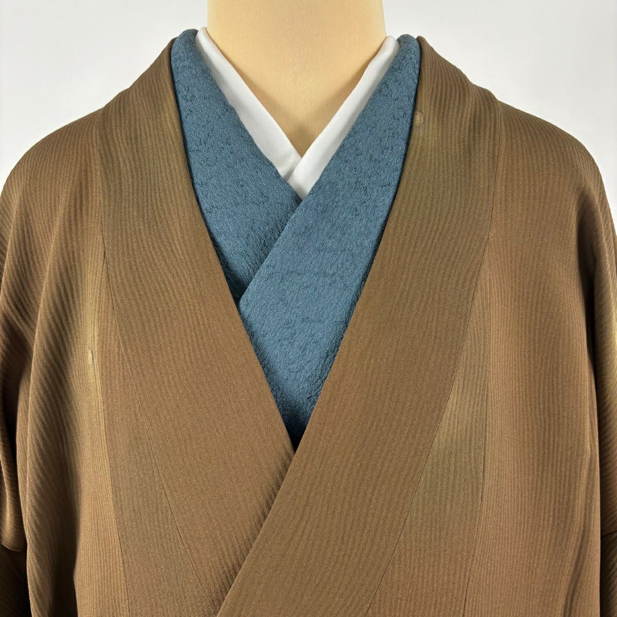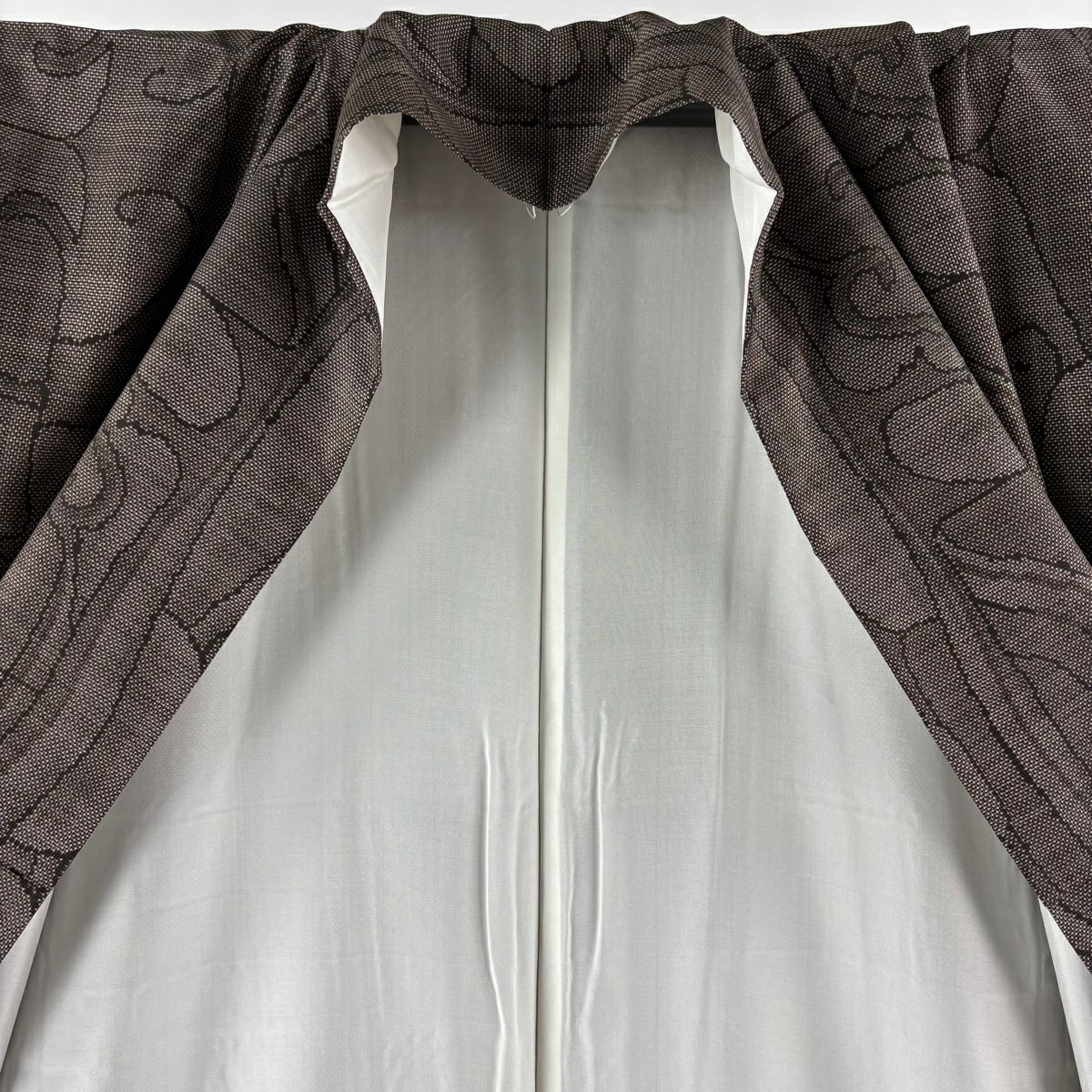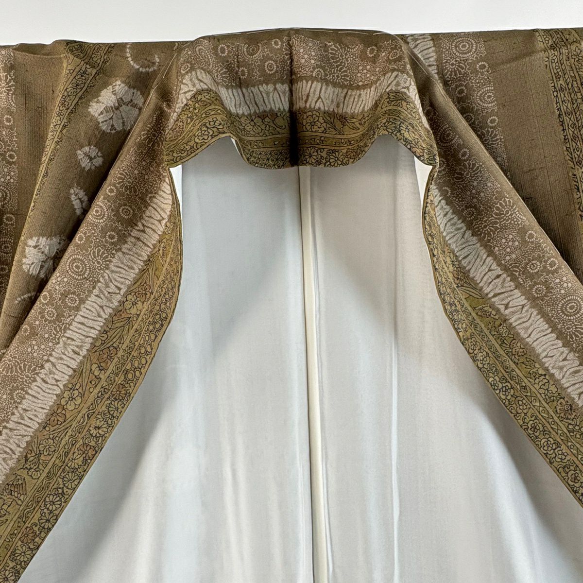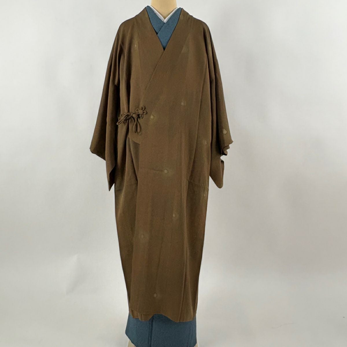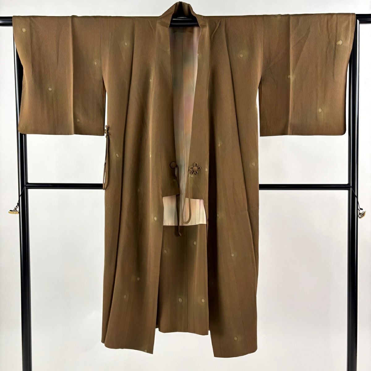【美品】 道中着 身丈124.5cm 裄丈66cm M 和装コート 着物着物衿 幾何学模様 ぼかし 茶色 正絹 逸品