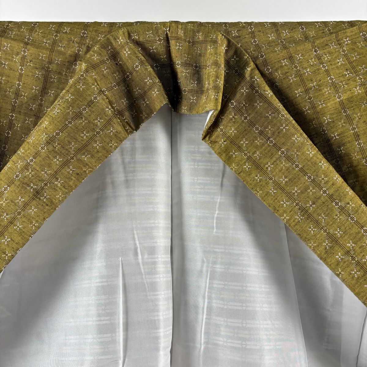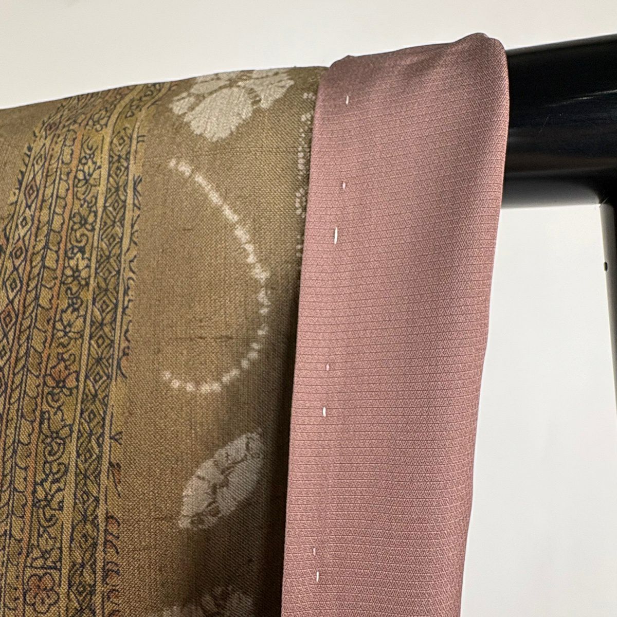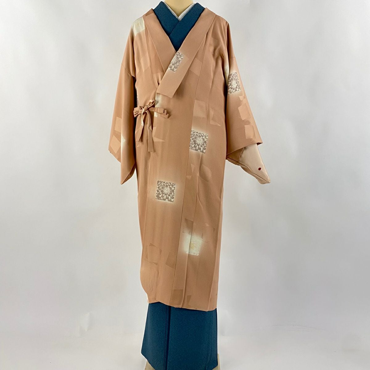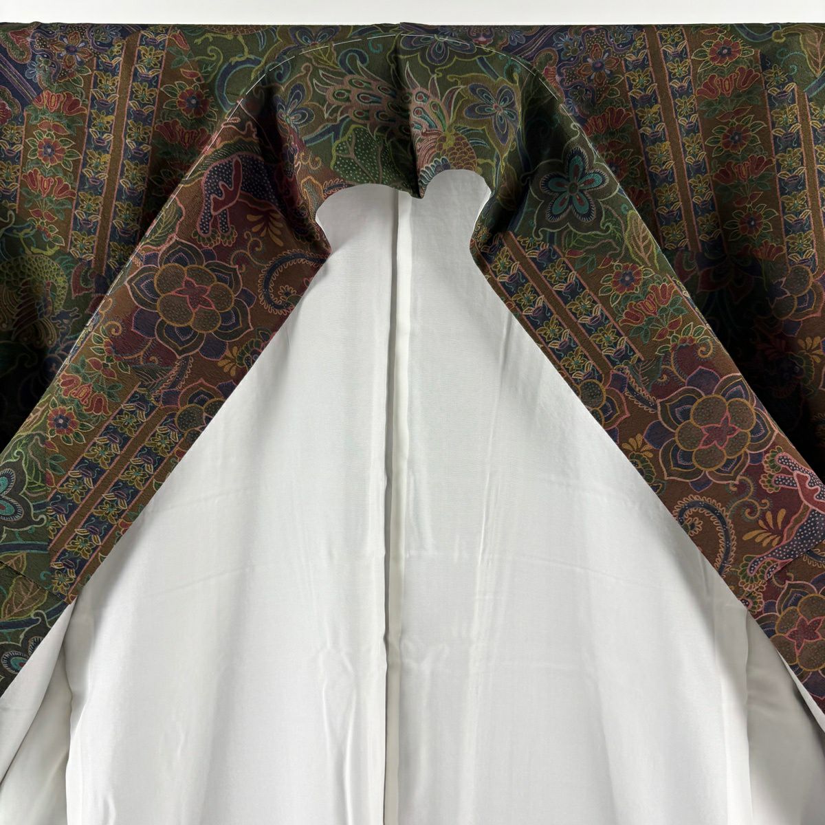 【美品】 道中着 身丈124.5cm 裄丈66cm M 和装コート 着物着物衿 幾何学模様 ぼかし 茶色 正絹 逸品