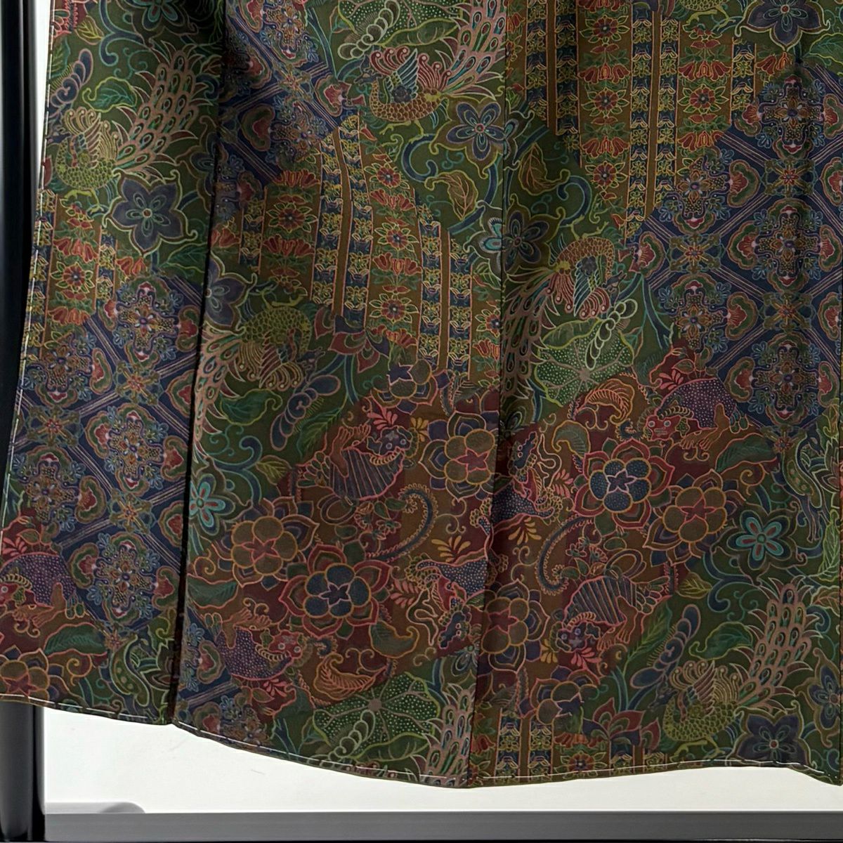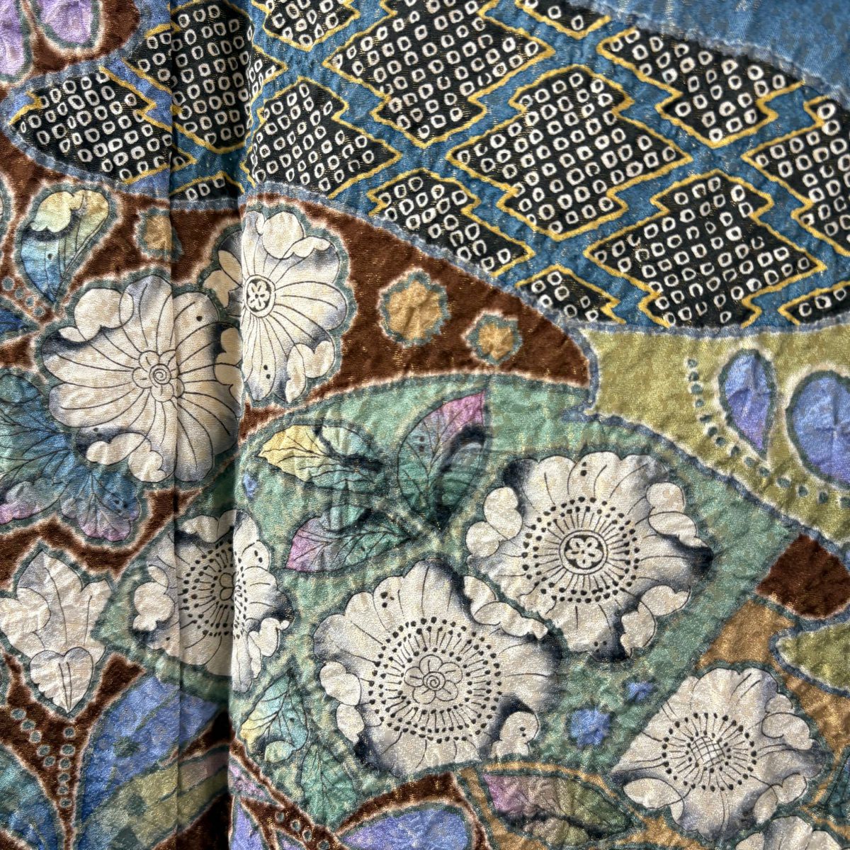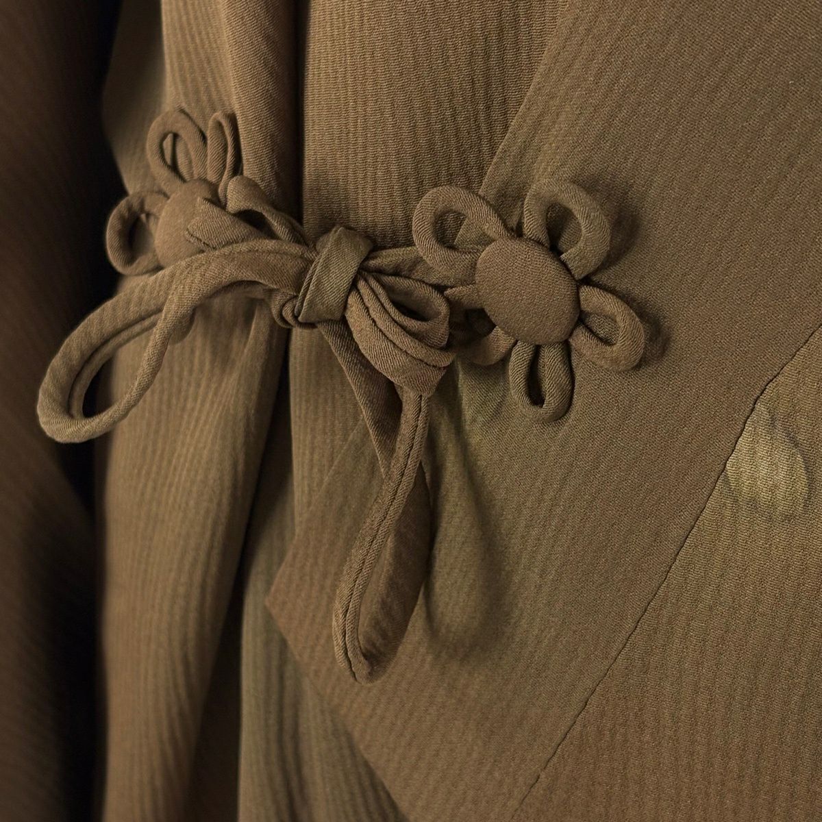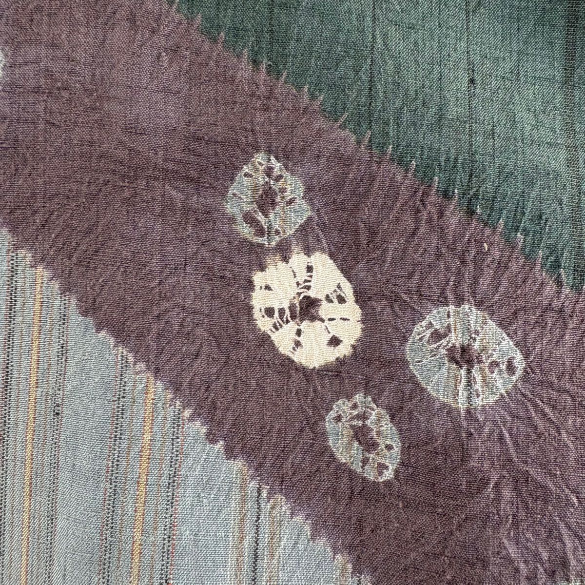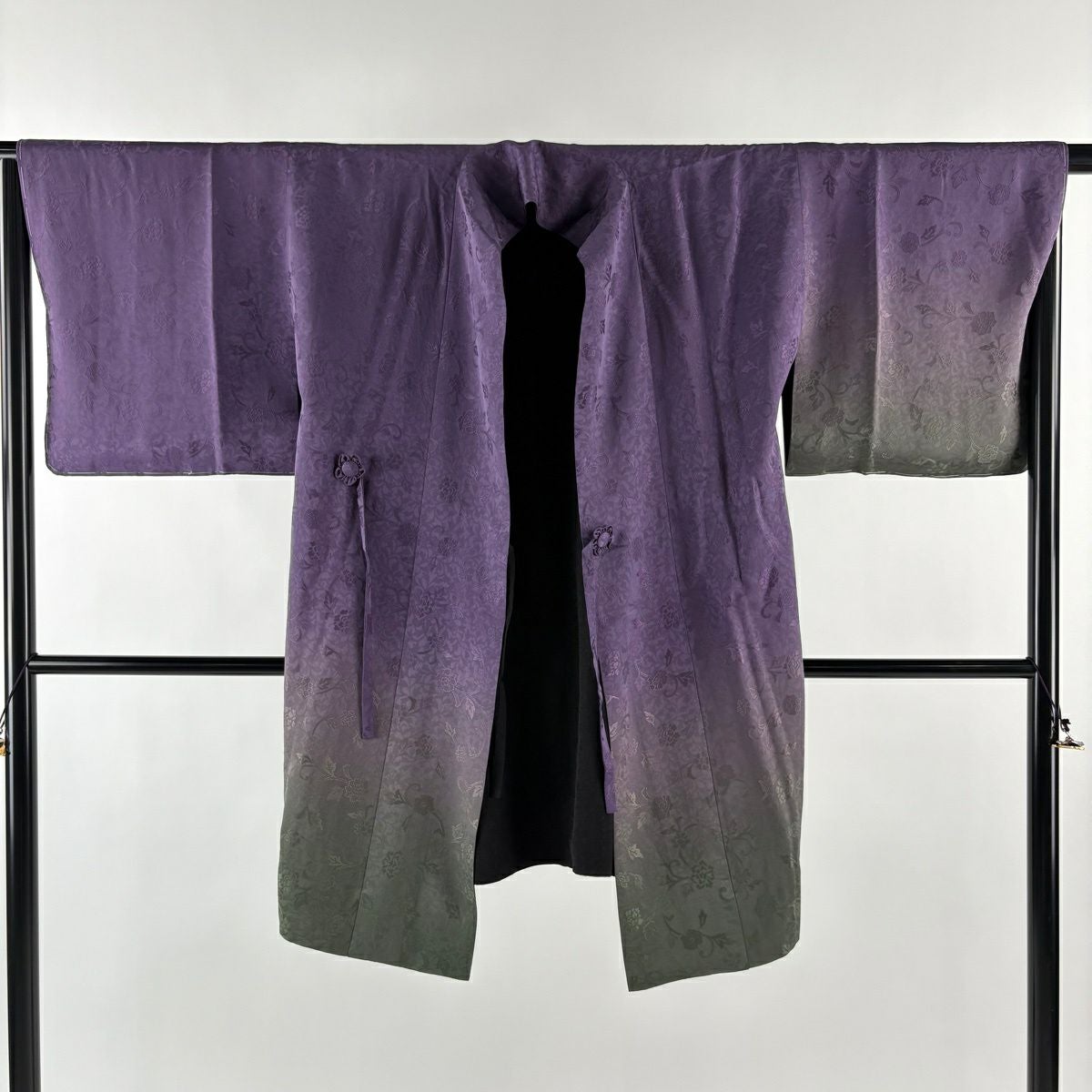 【美品】 道中着 身丈124.5cm 裄丈66cm M 和装コート 着物着物衿 幾何学模様 ぼかし 茶色 正絹 逸品