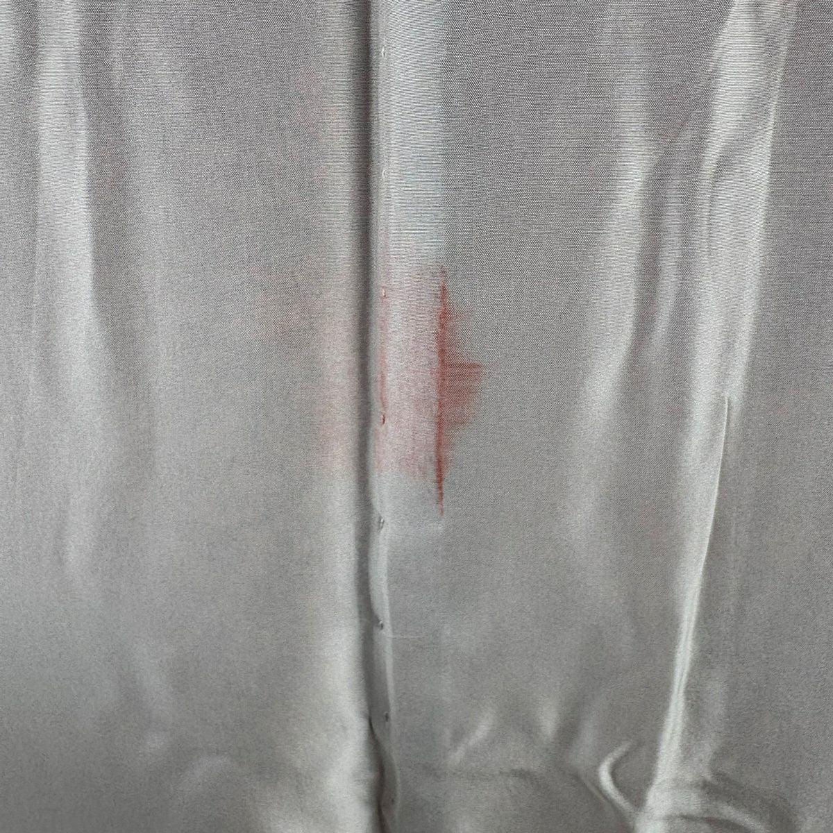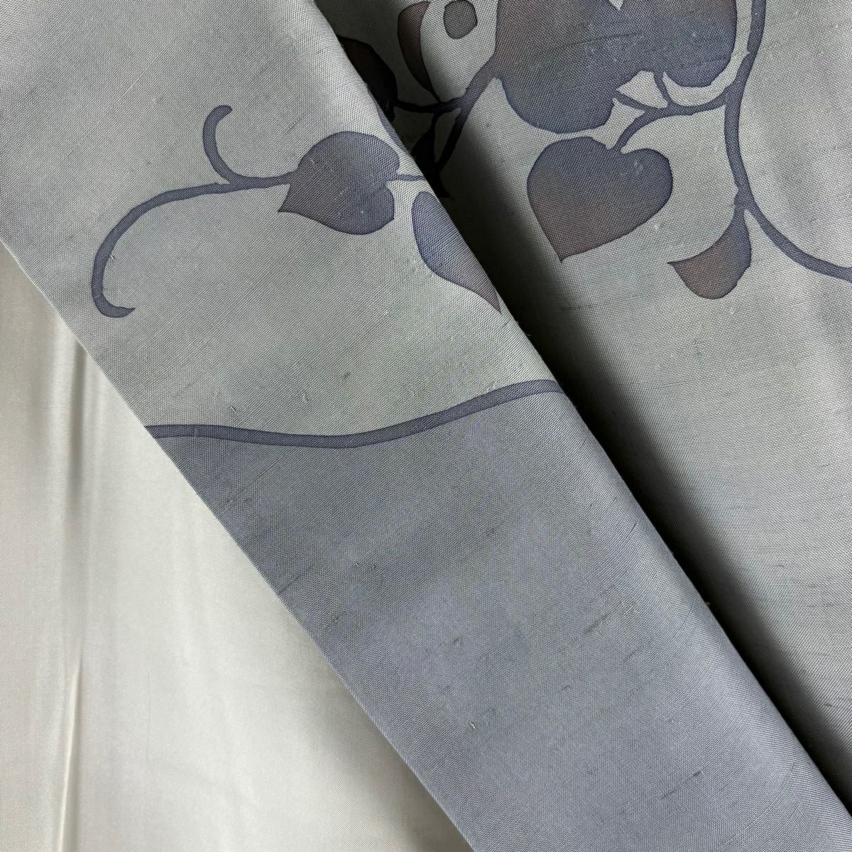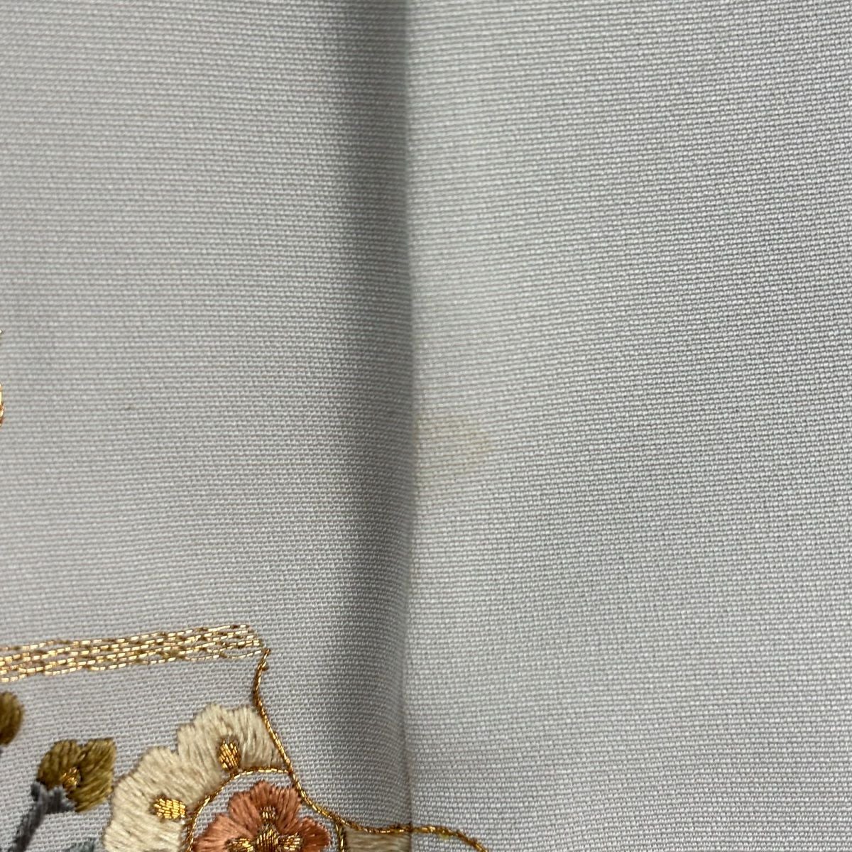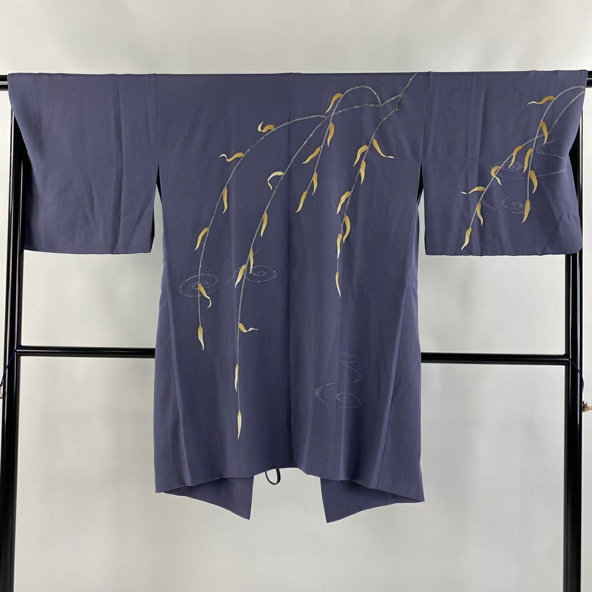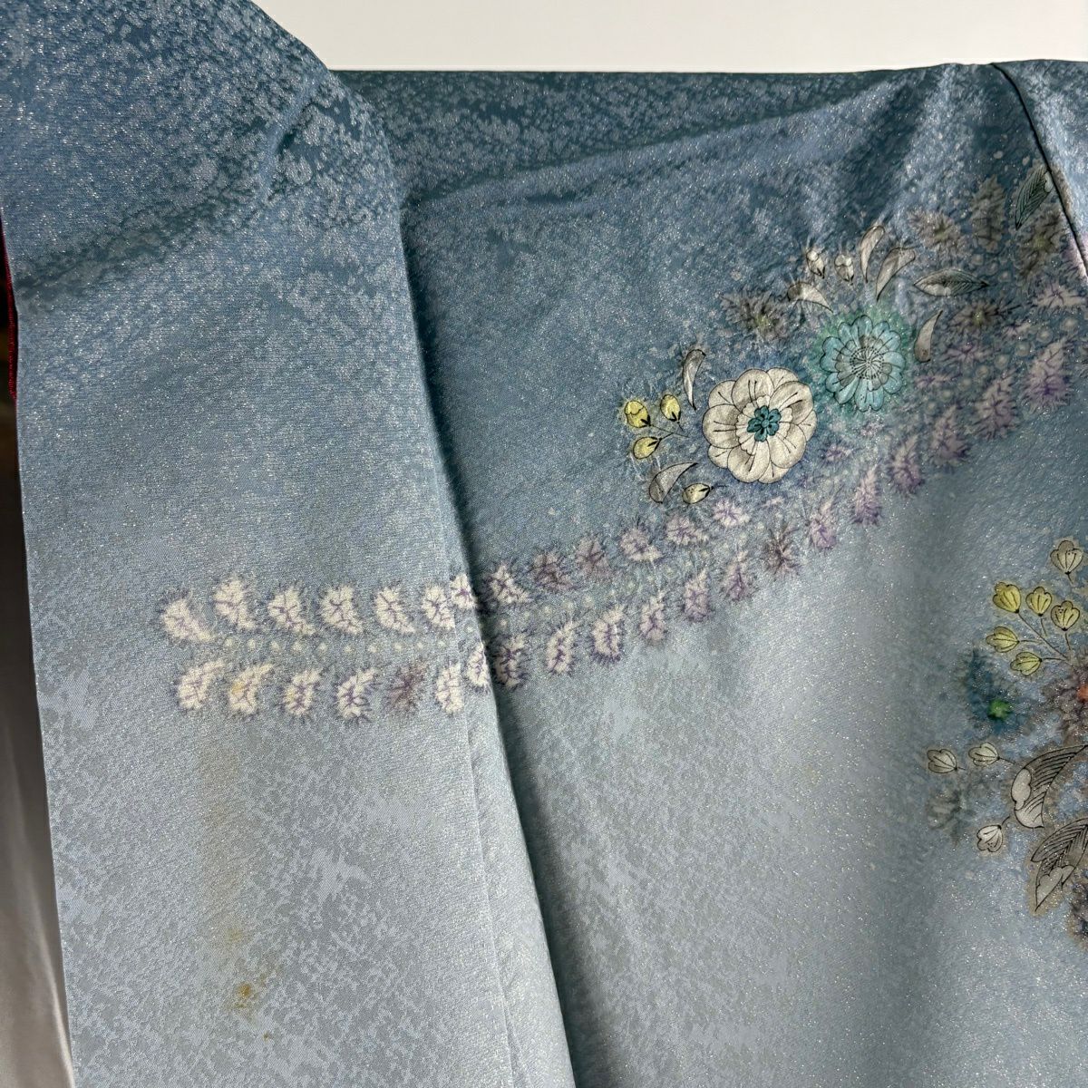 付下げ 身丈155.5cm 裄丈64cm M 袷 鶴見保次 落款あり 枝花 雪輪 ぼかし 青灰色 正絹 逸品 一つ紋