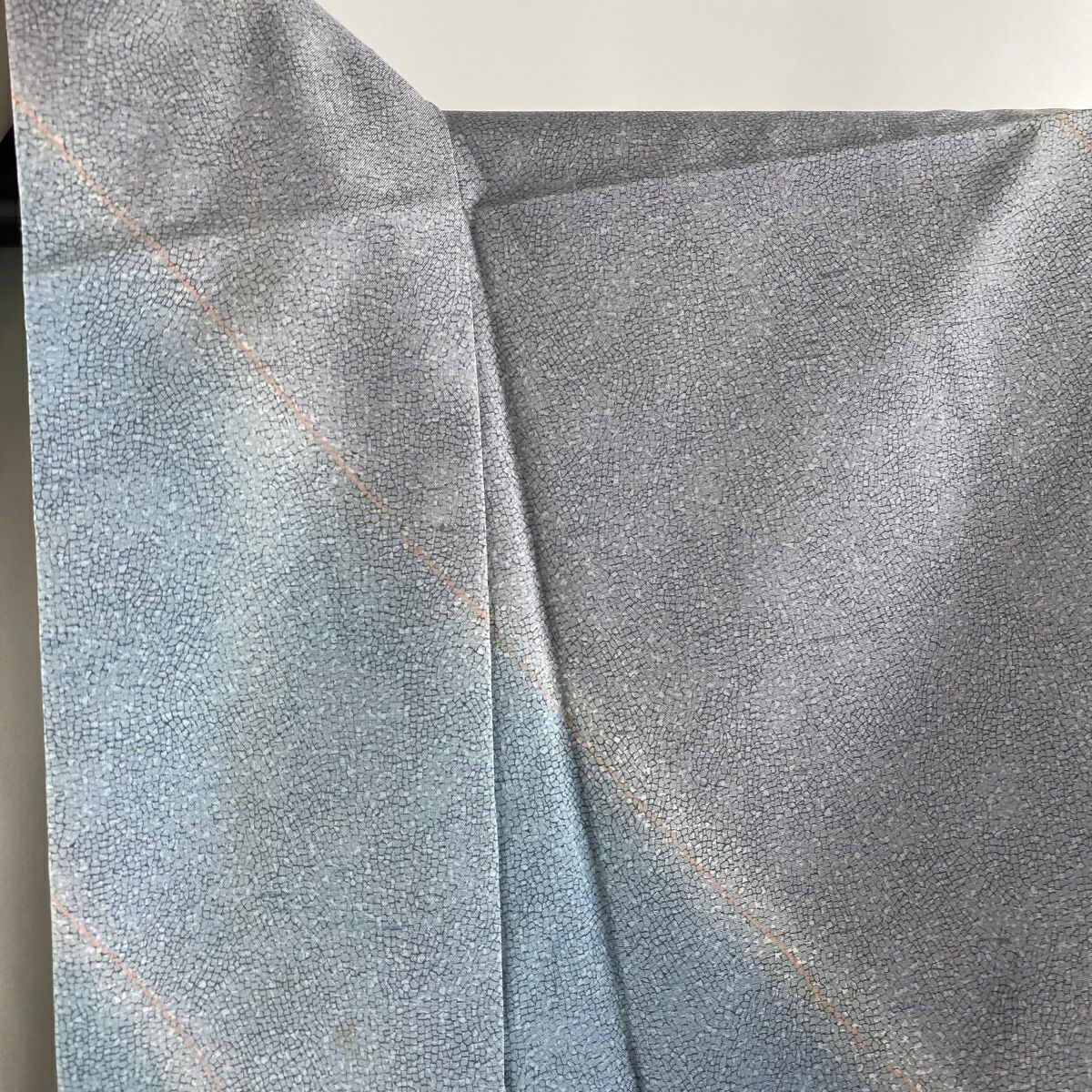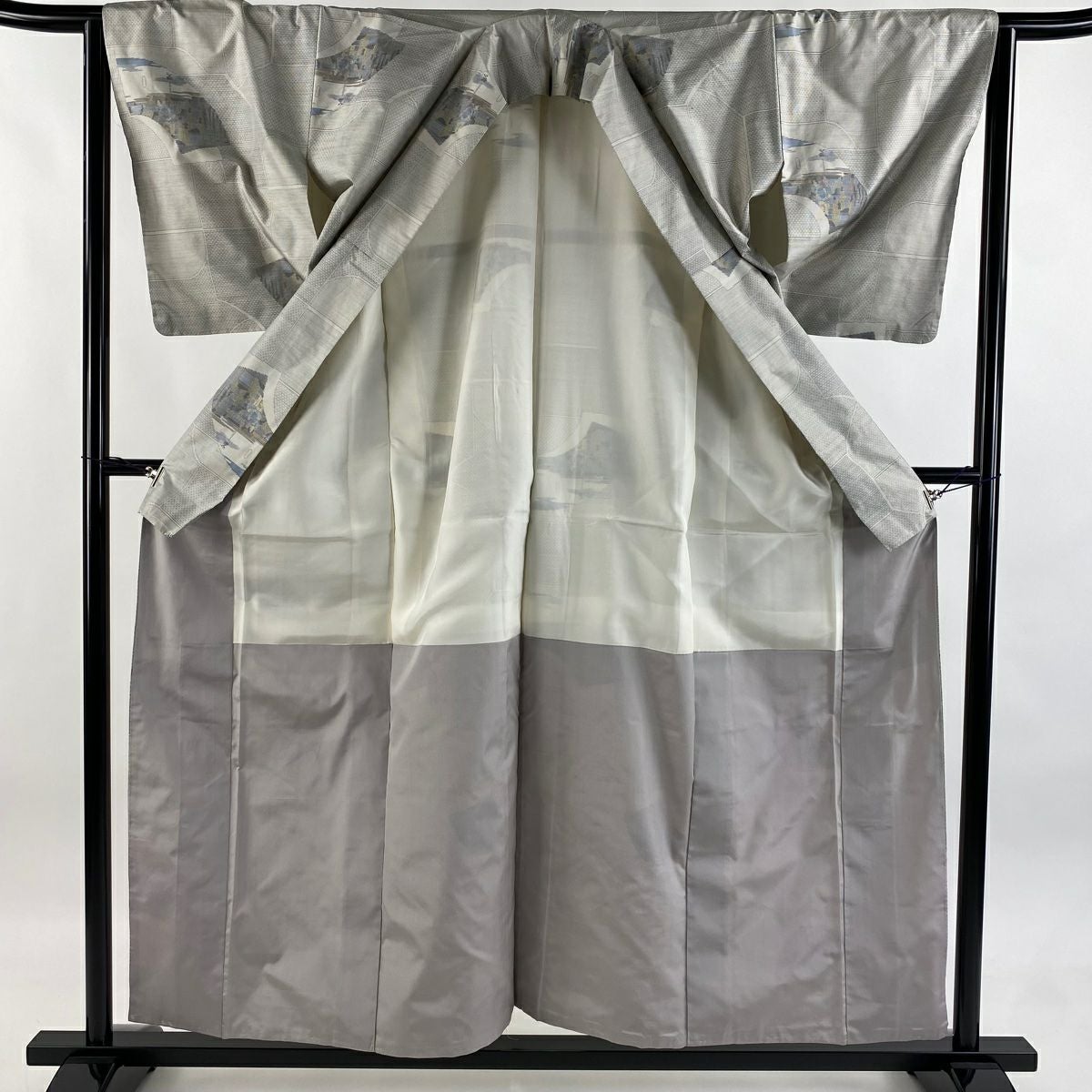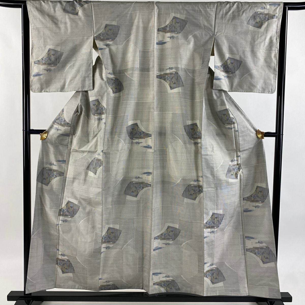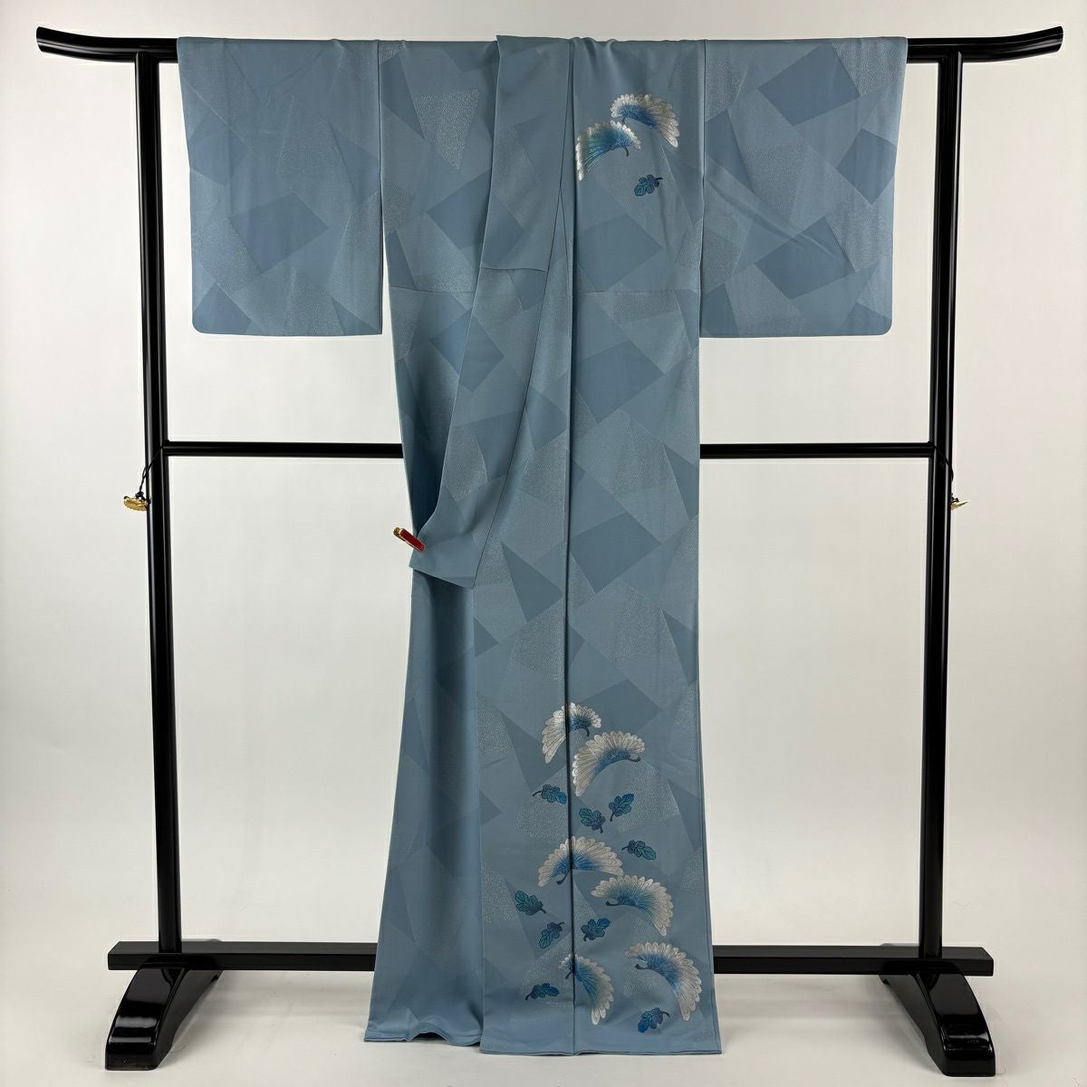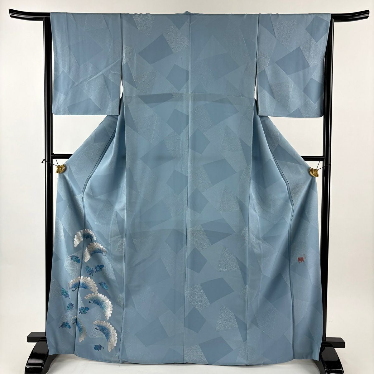 【美品】 訪問着 身丈161cm 裄丈65cm M 袷 翠山工房 落款あり 辻が花 扇面 金通し 青灰色 正絹 逸品