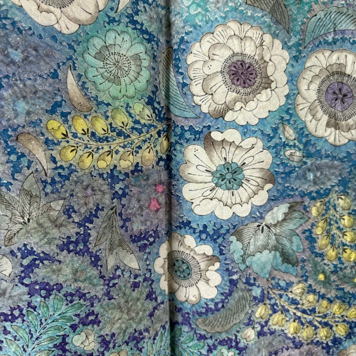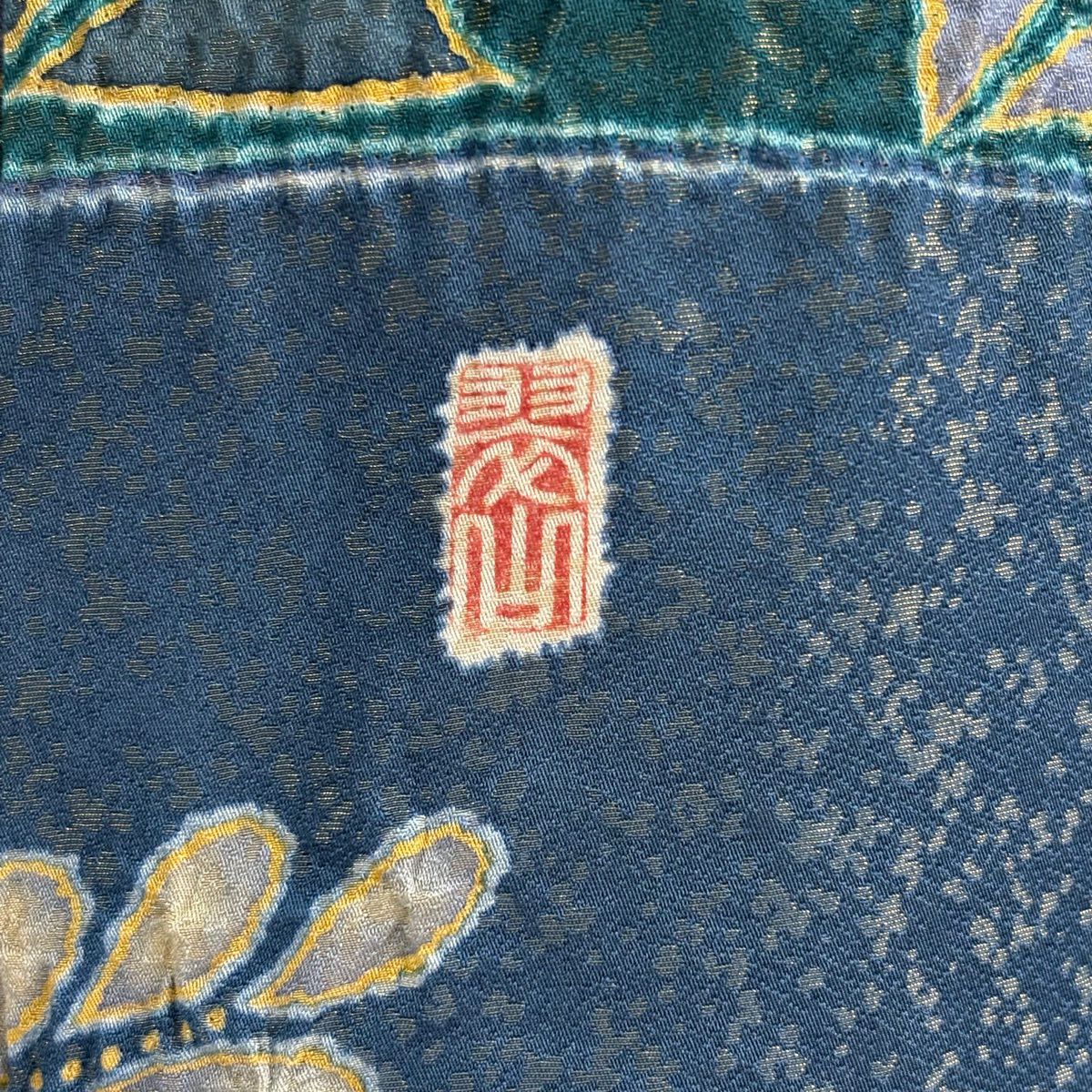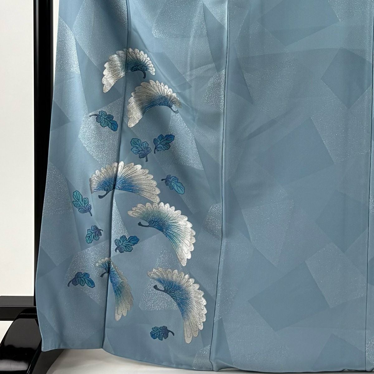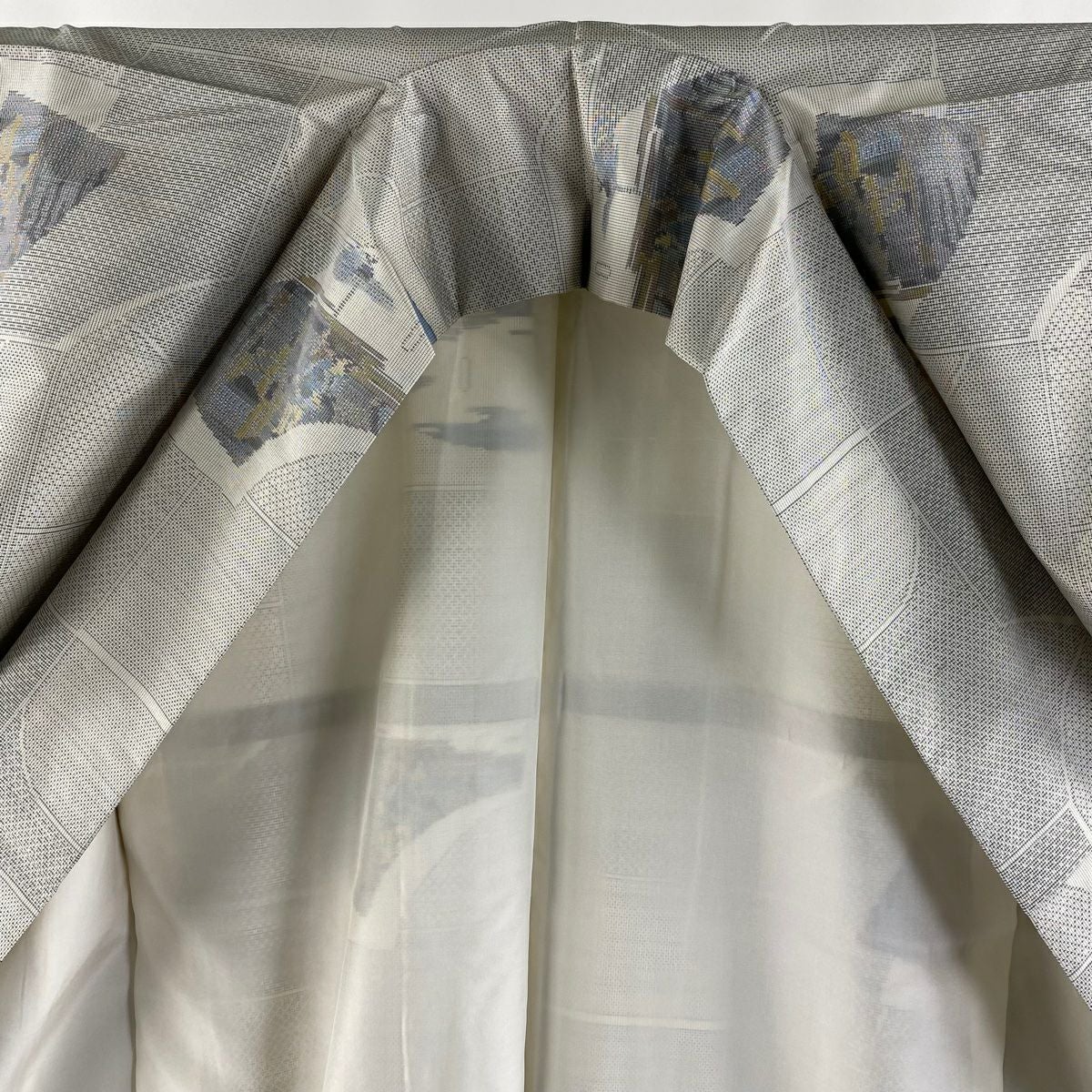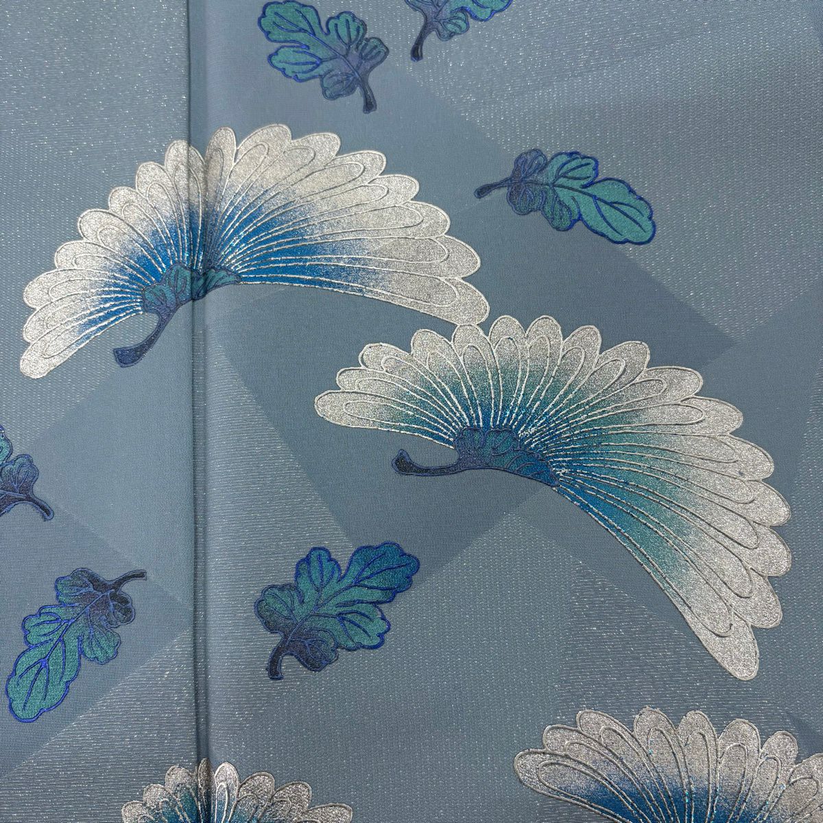 【美品】 訪問着 身丈161cm 裄丈65cm M 袷 翠山工房 落款あり 辻が花 扇面 金通し 青灰色 正絹 逸品