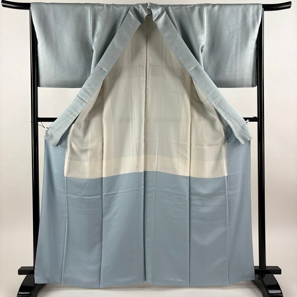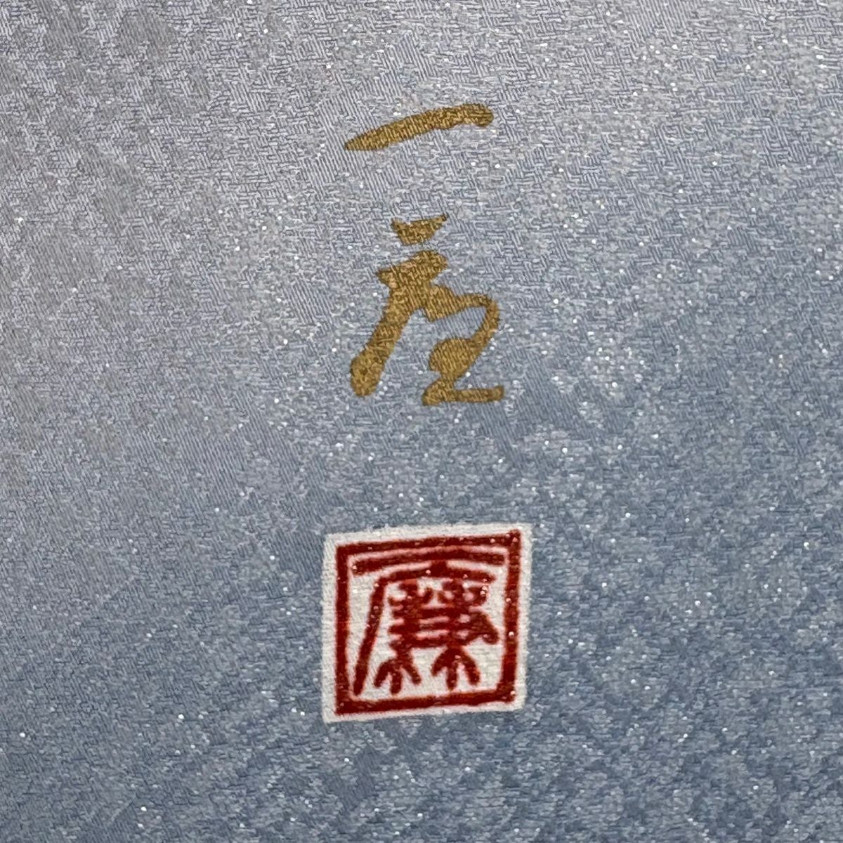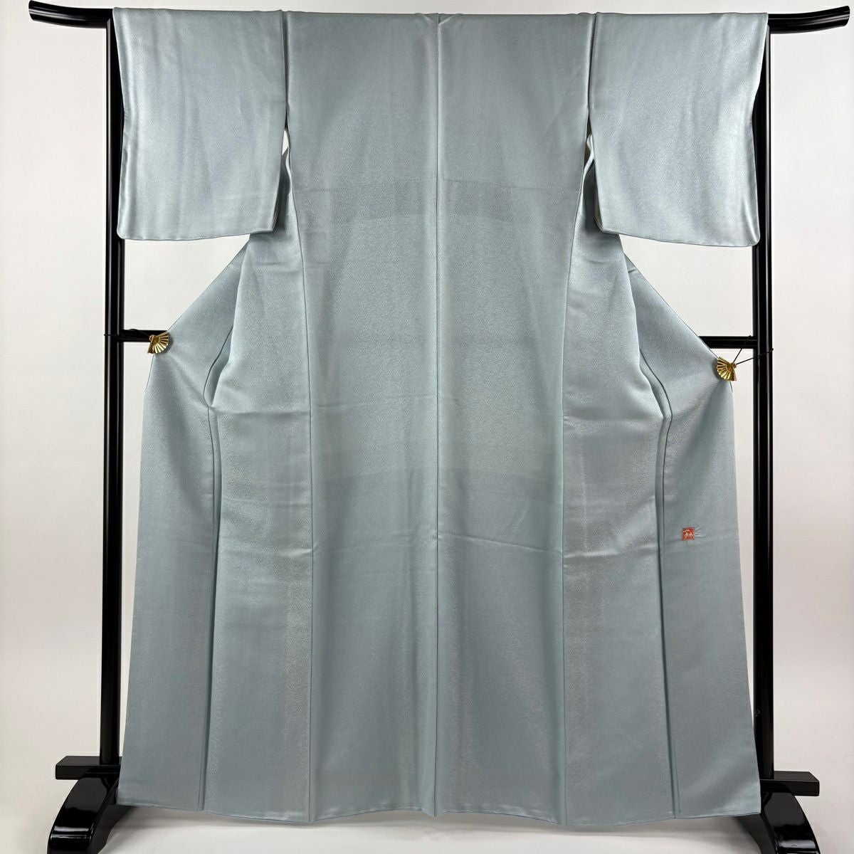 【美品】 色無地 身丈165.5cm 裄丈65.5cm M 袷 二代目 久保田一竹 落款あり 地紋 金通し 水色 正絹 逸品