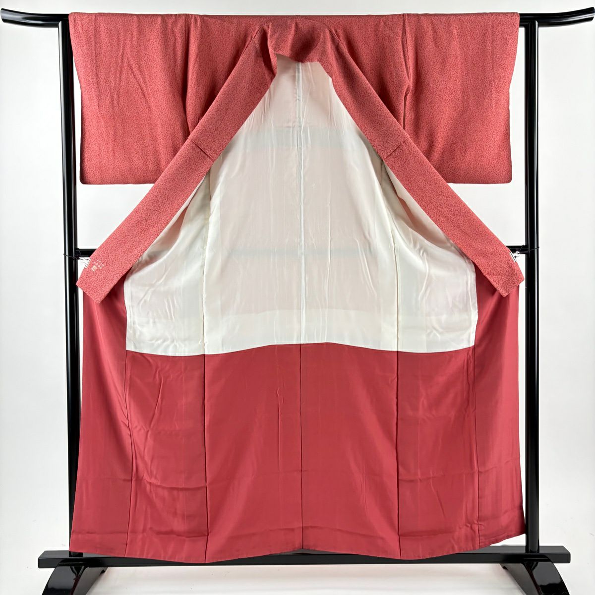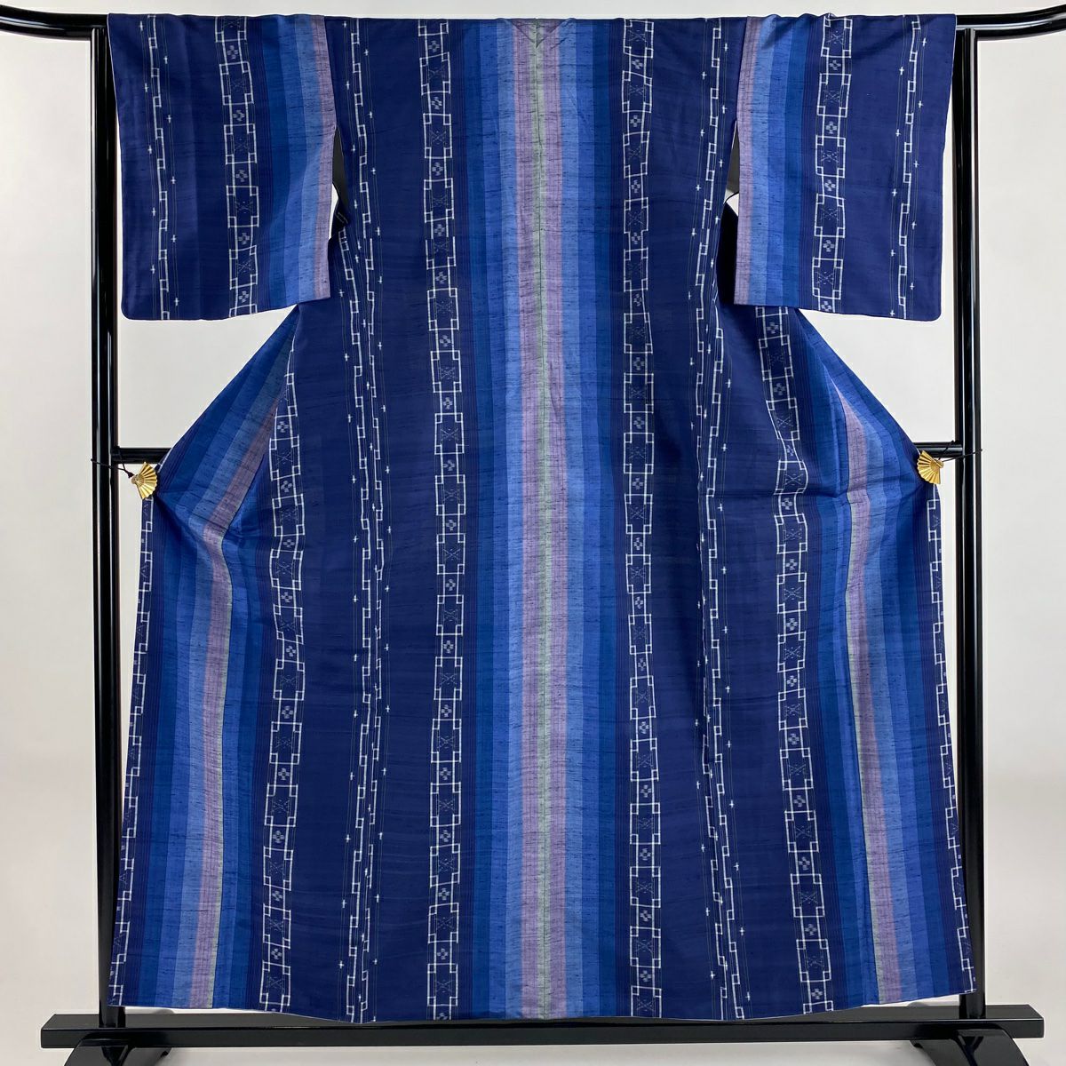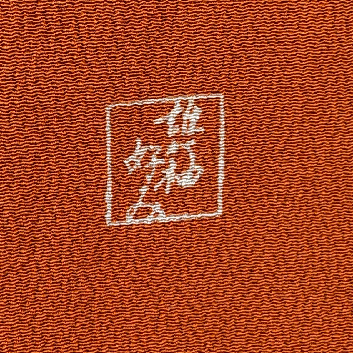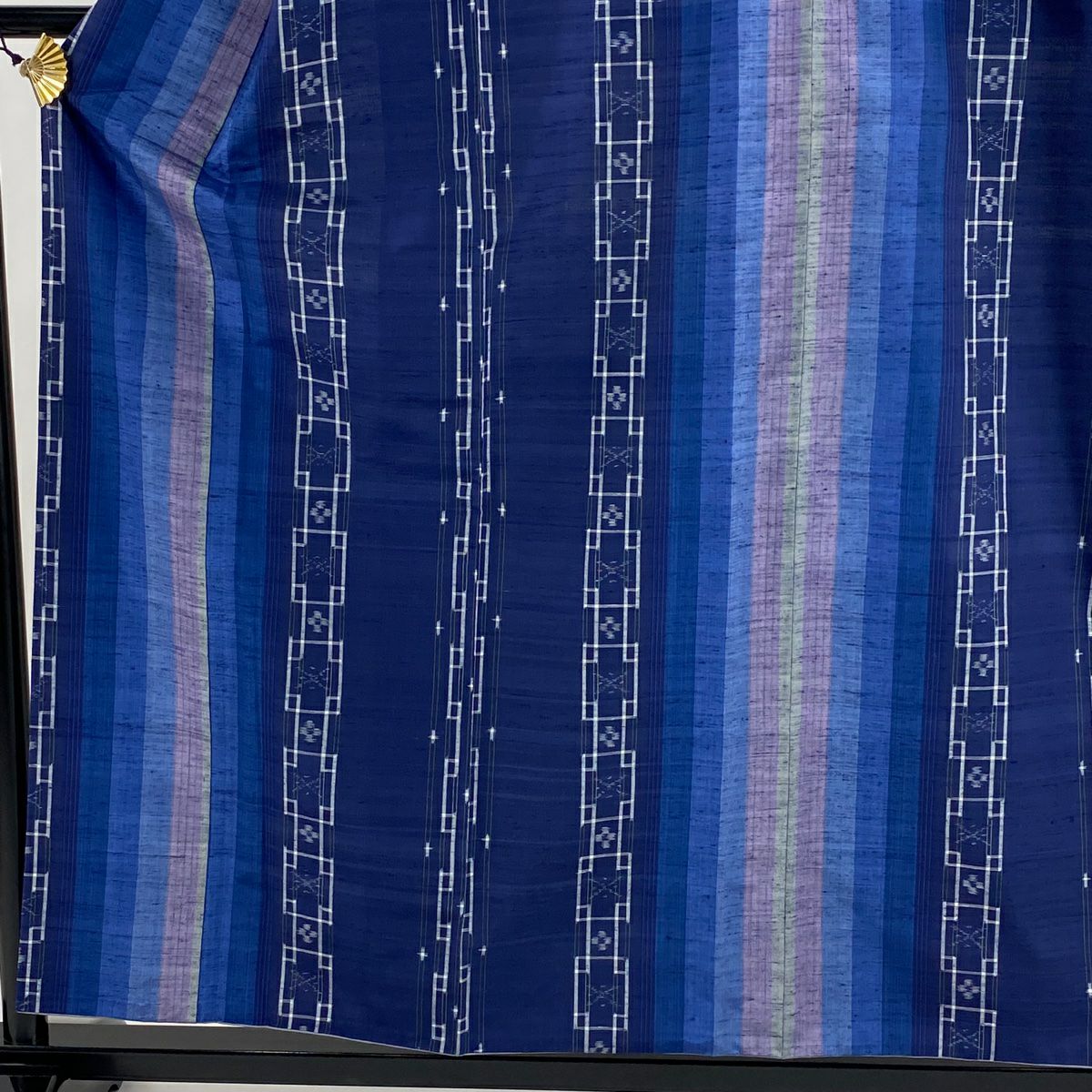 お召 身丈163cm 裄丈65.5cm M 単衣 白川貞夫 落款あり 証紙あり 縞 麻の葉 柿渋染 焦茶色 正絹 逸品