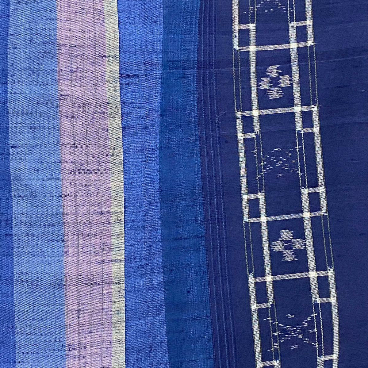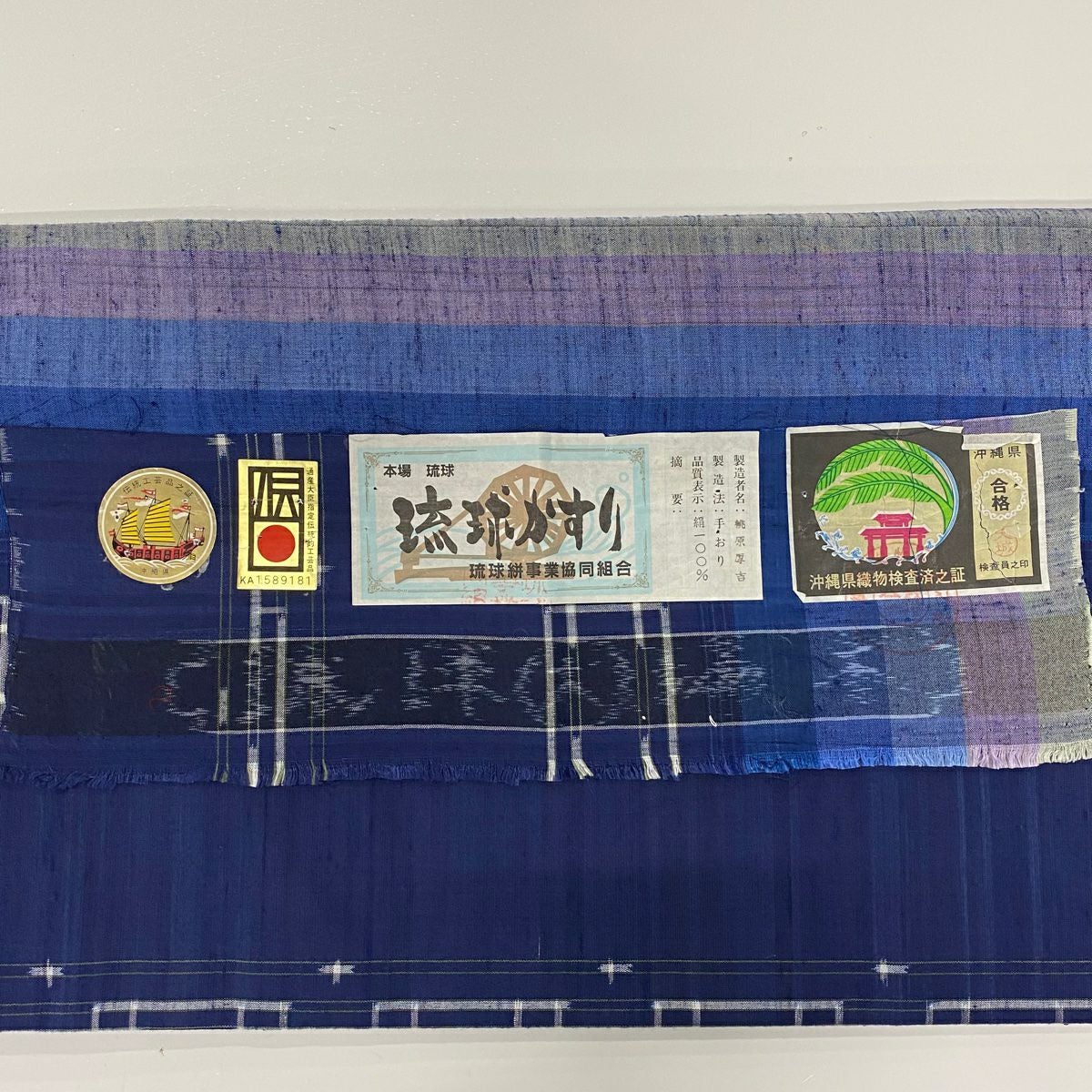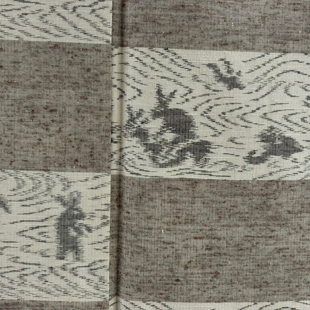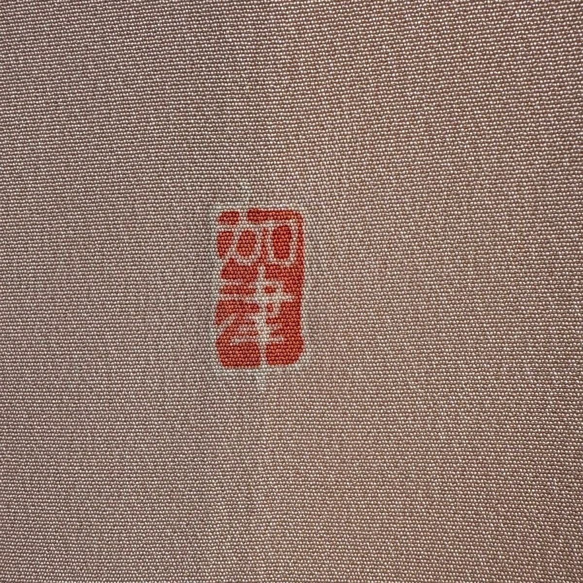 お召 身丈163cm 裄丈65.5cm M 単衣 白川貞夫 落款あり 証紙あり 縞 麻の葉 柿渋染 焦茶色 正絹 逸品