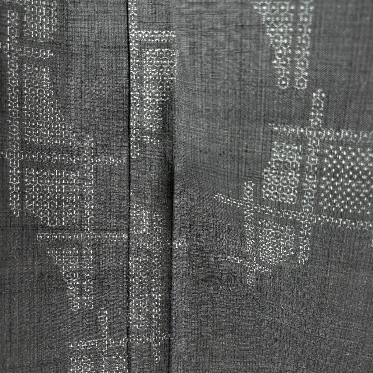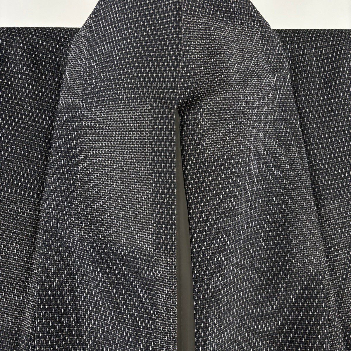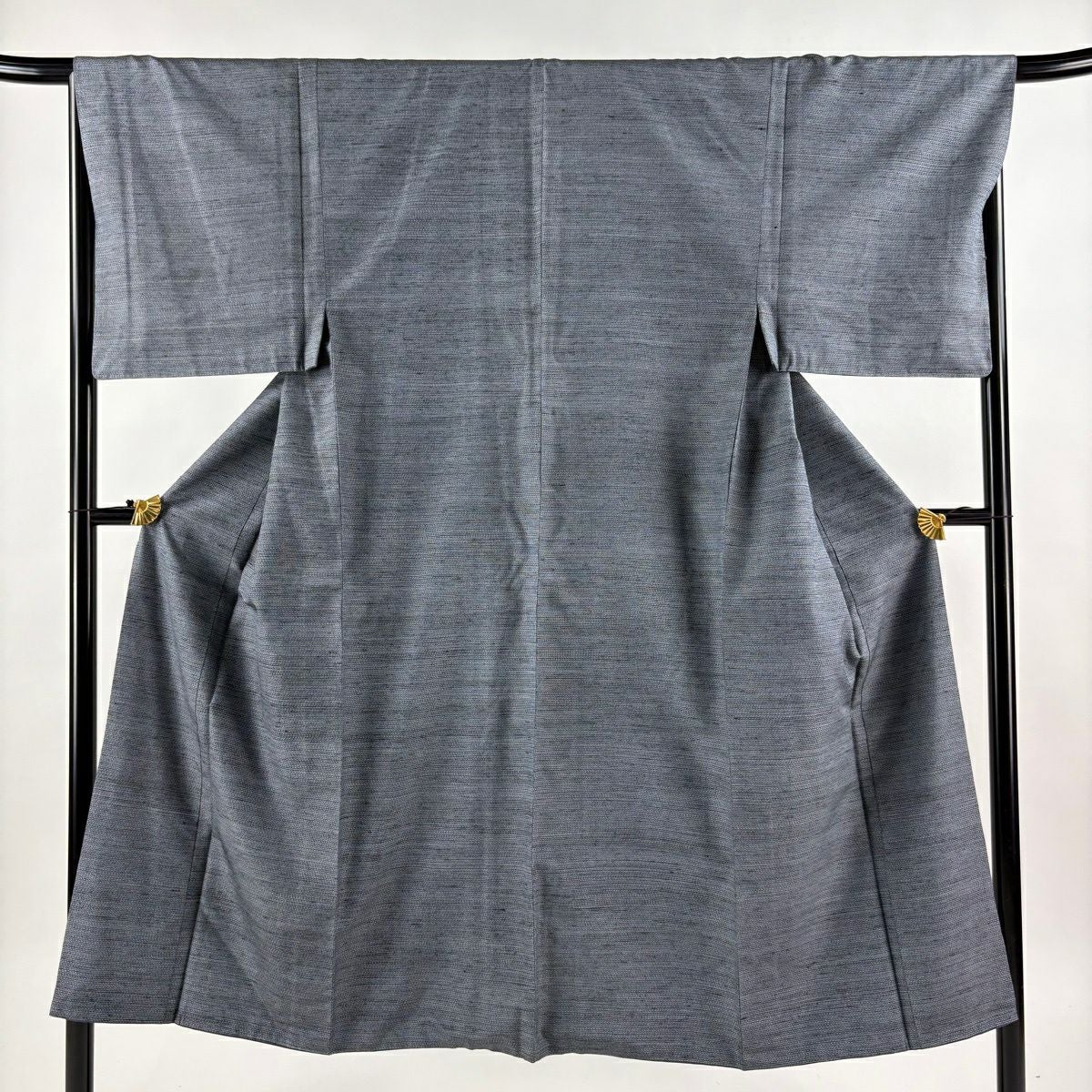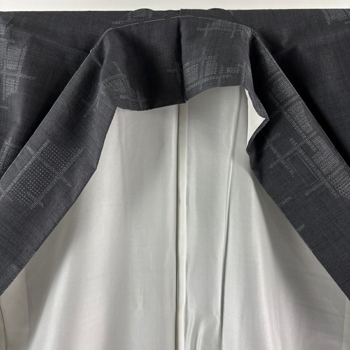 【美品】 男着物 身丈146cm 裄丈67.5cm M 袷 アンサンブル 塩沢紬 証紙あり 亀甲 灰色 正絹 逸品