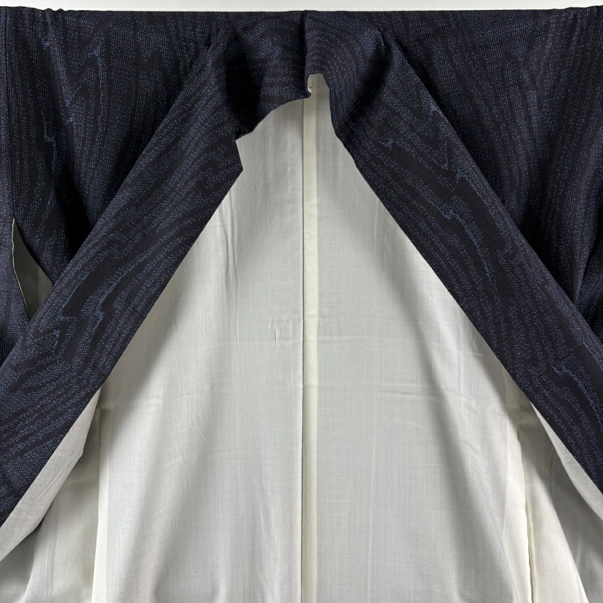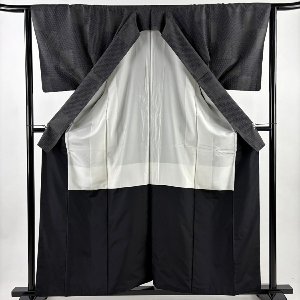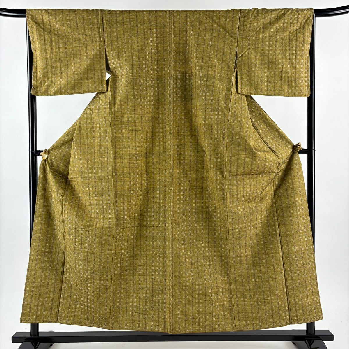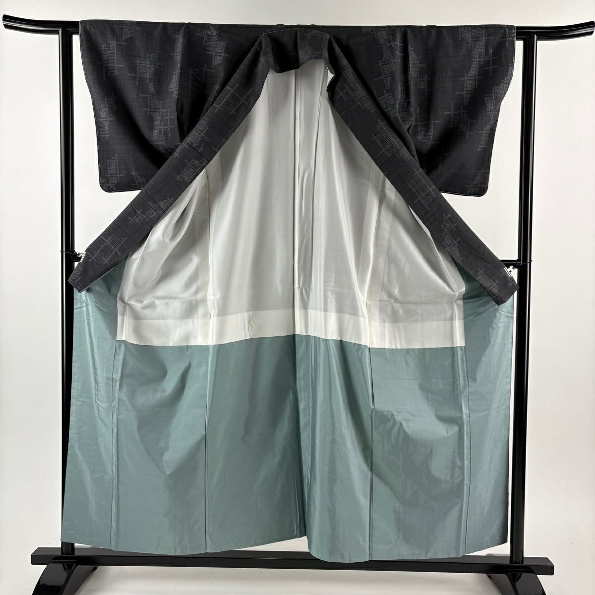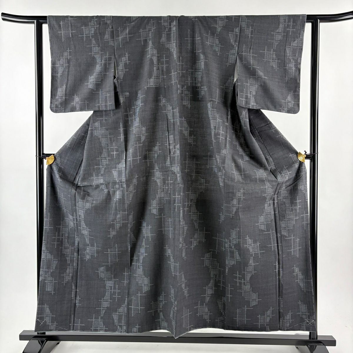 【美品】 男着物 身丈146cm 裄丈67.5cm M 袷 アンサンブル 塩沢紬 証紙あり 亀甲 灰色 正絹 逸品