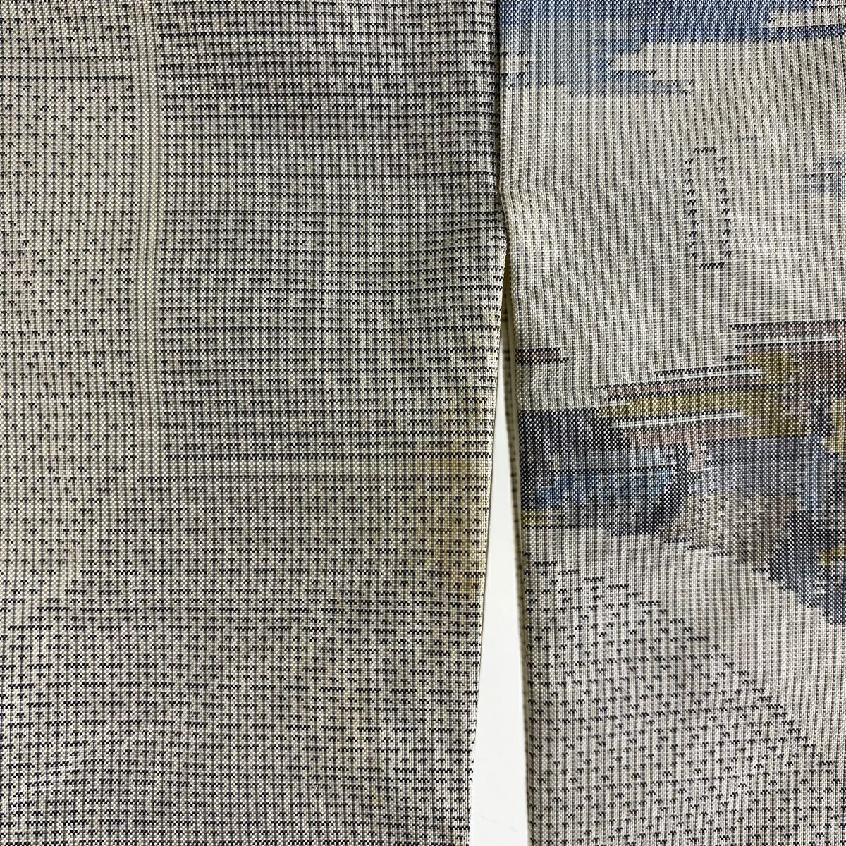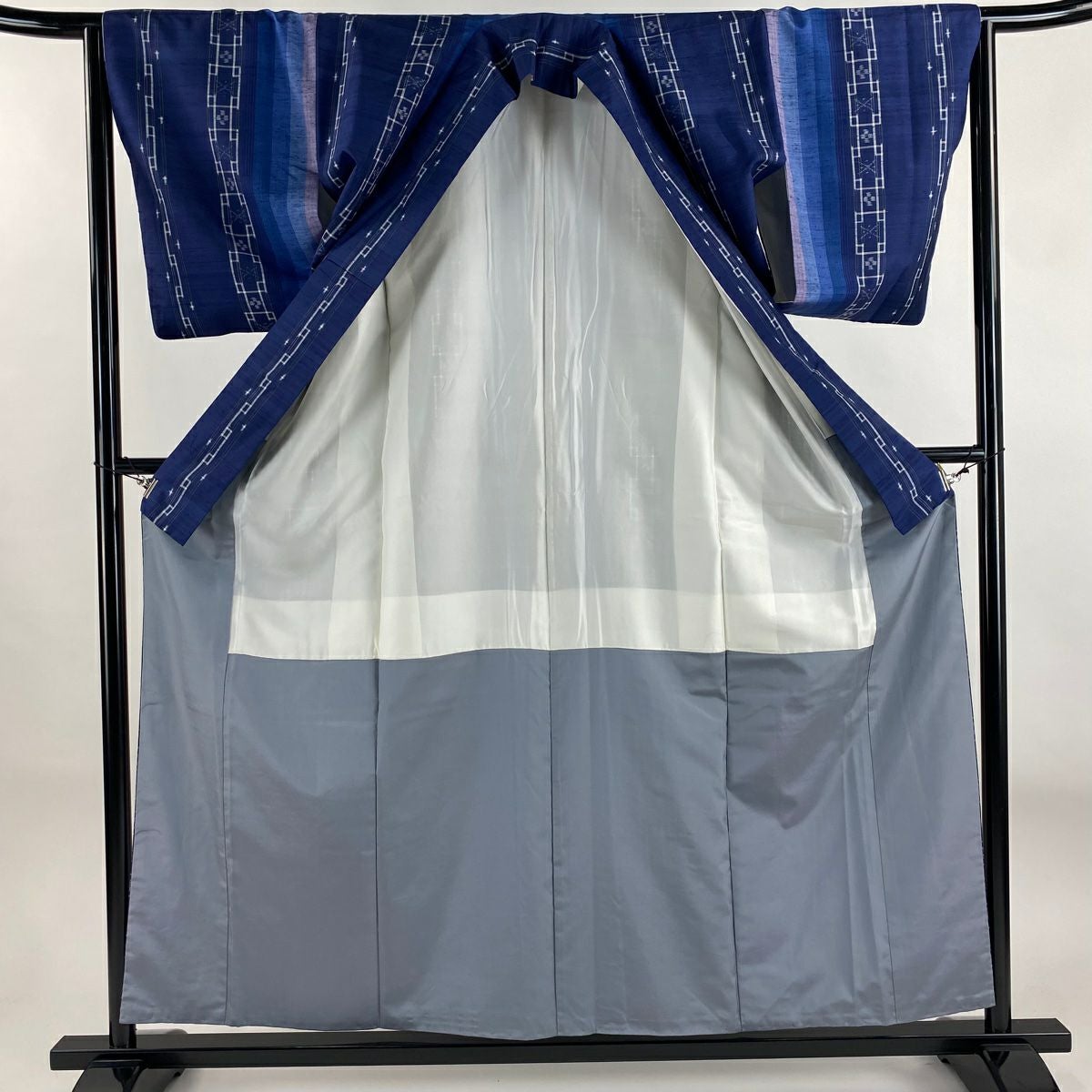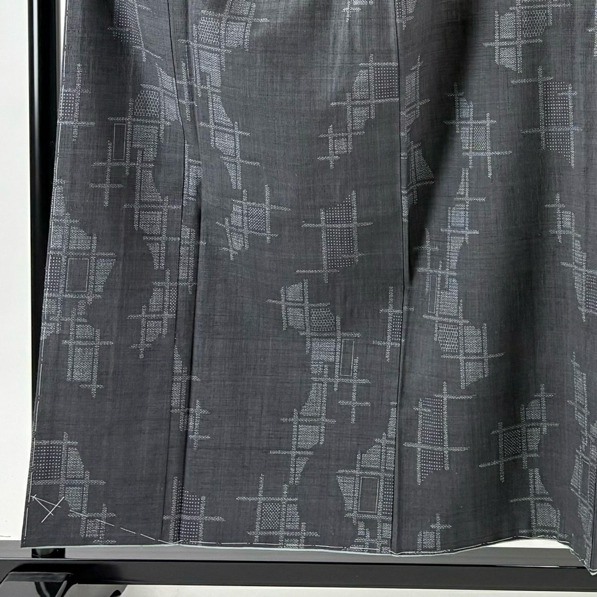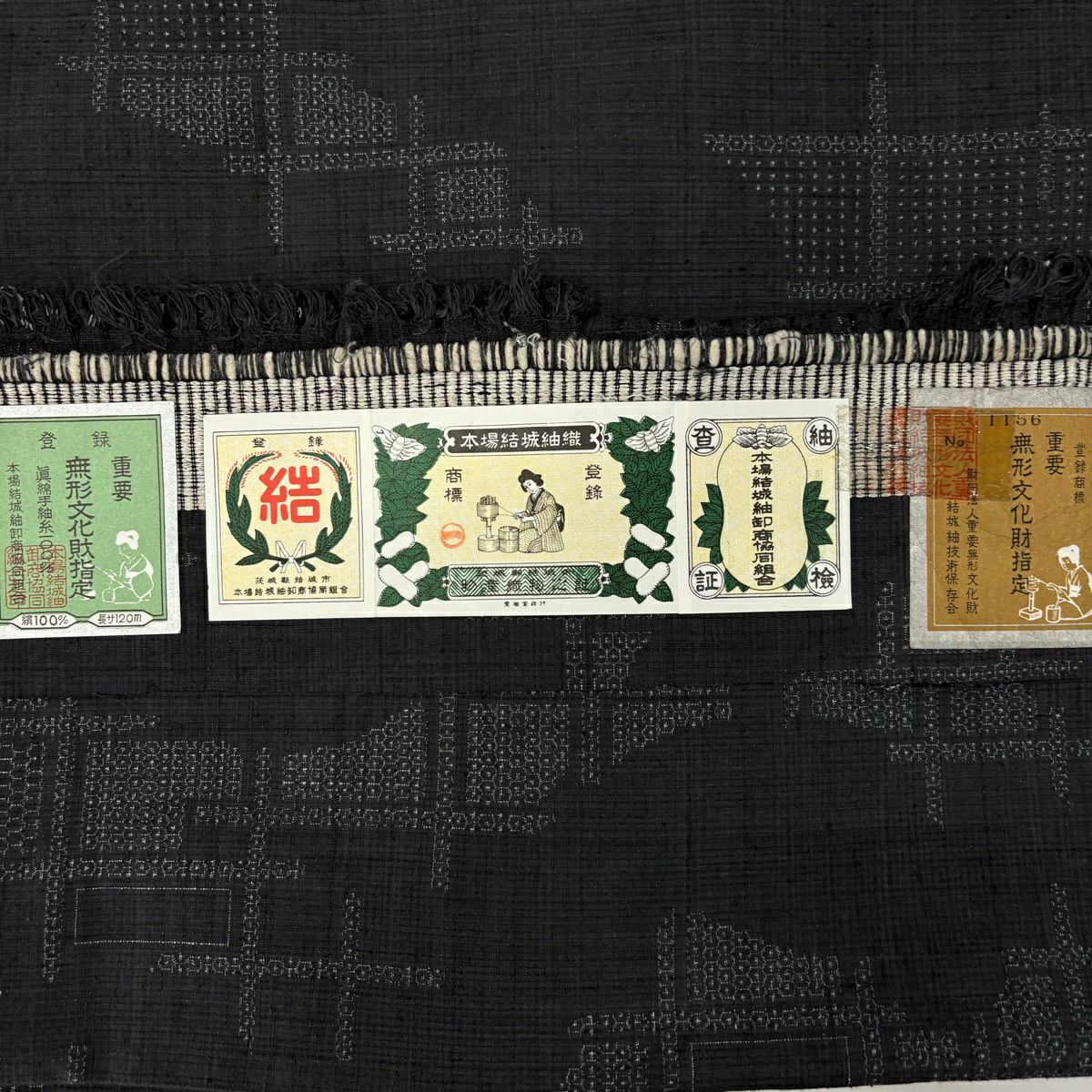【美品】 男着物 身丈146cm 裄丈67.5cm M 袷 アンサンブル 塩沢紬 証紙あり 亀甲 灰色 正絹 逸品