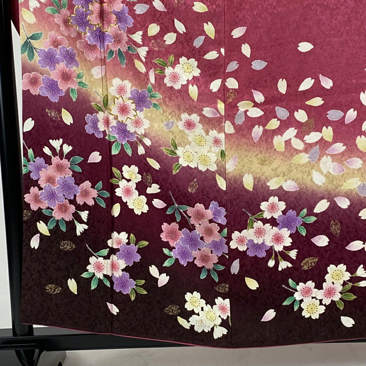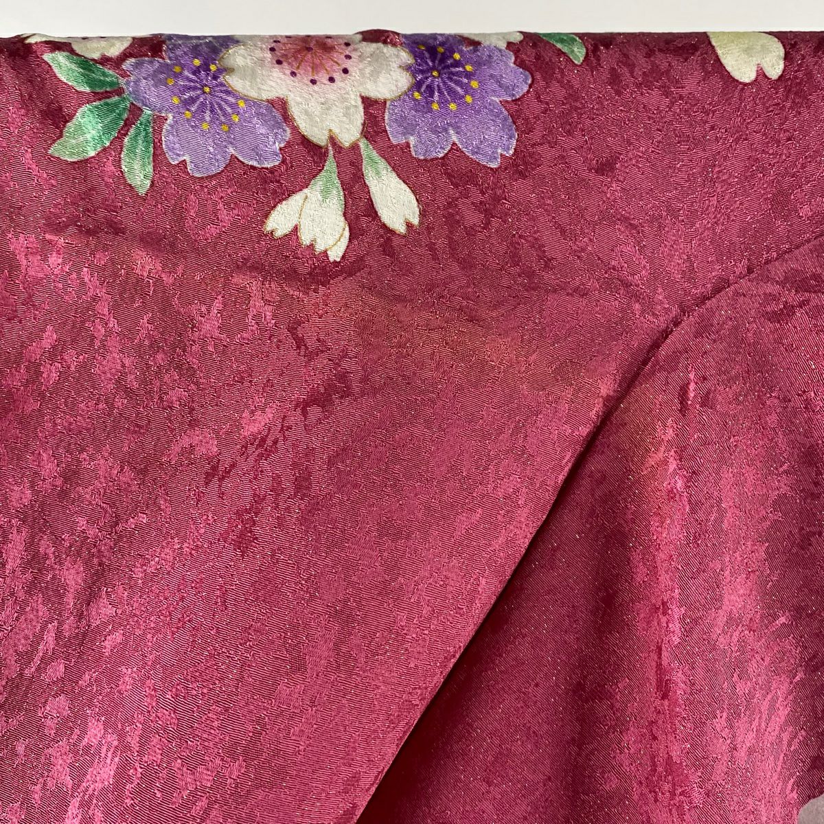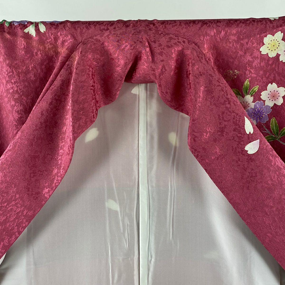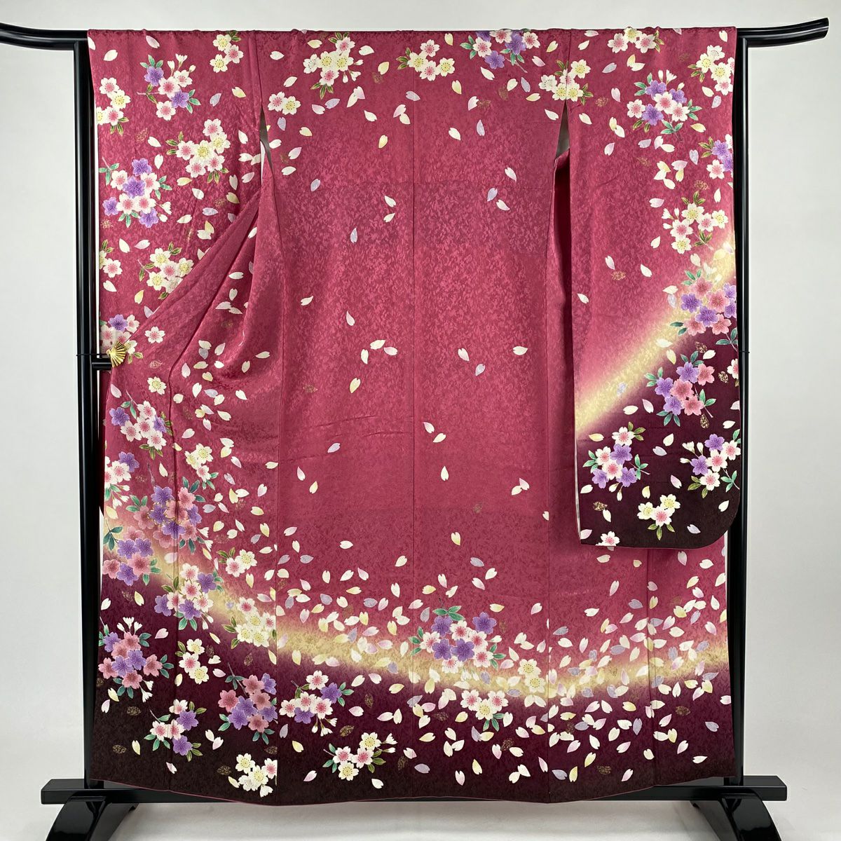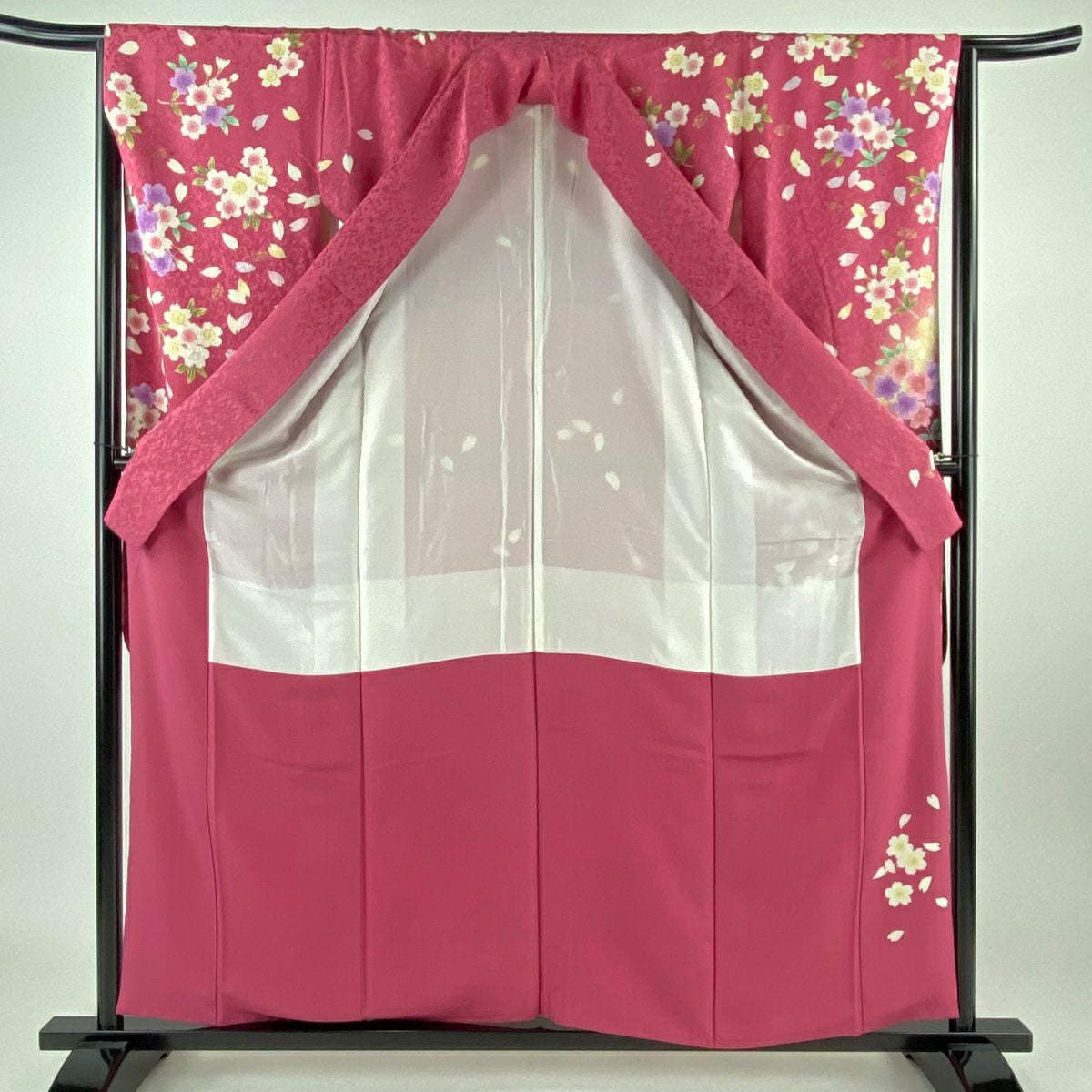 【在庫一掃】 振袖 身丈159cm 裄丈65.5cm M 袷 鈴乃屋 桜 花びら 金通し 金糸 ピンク 正絹 逸品