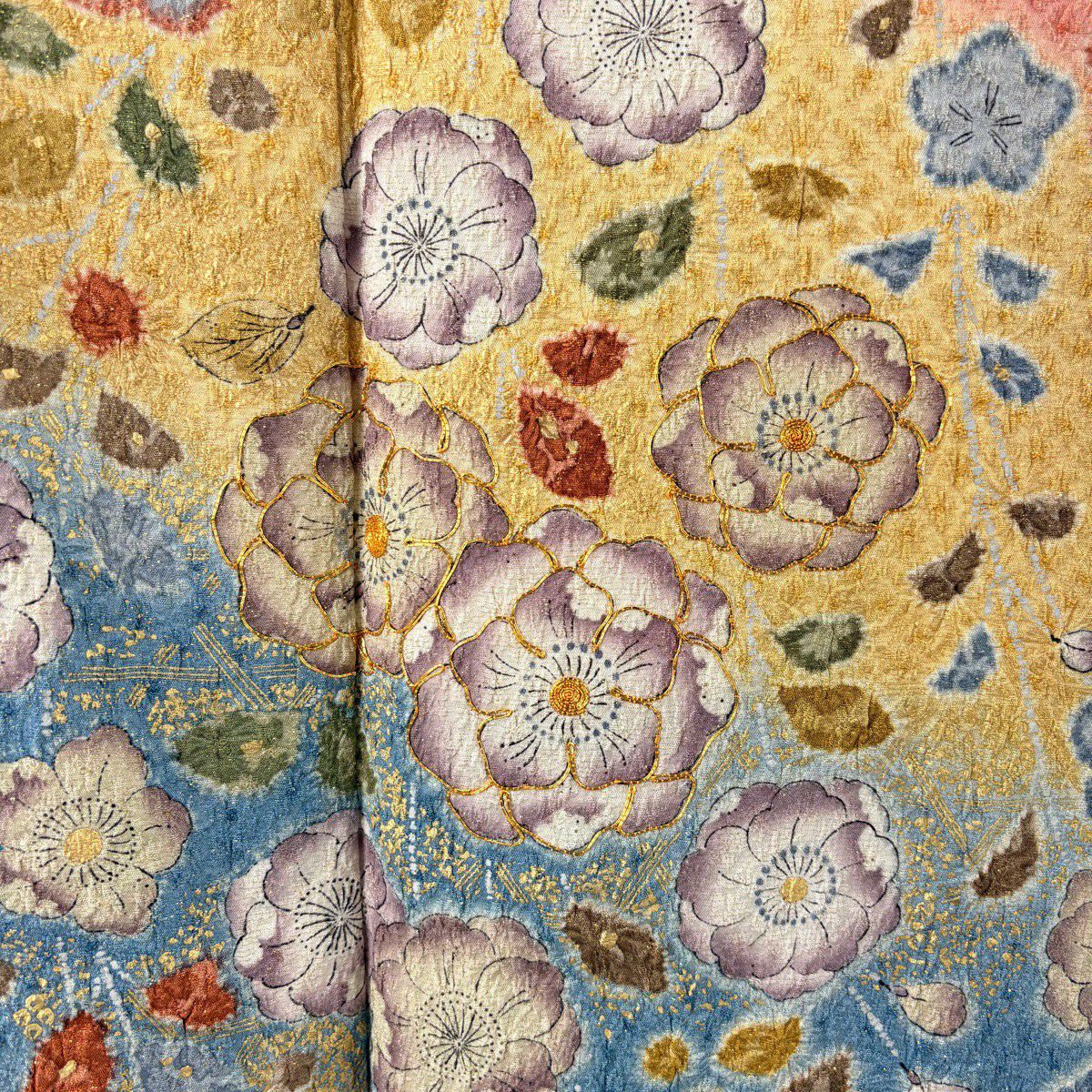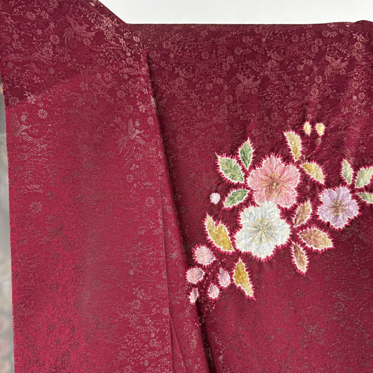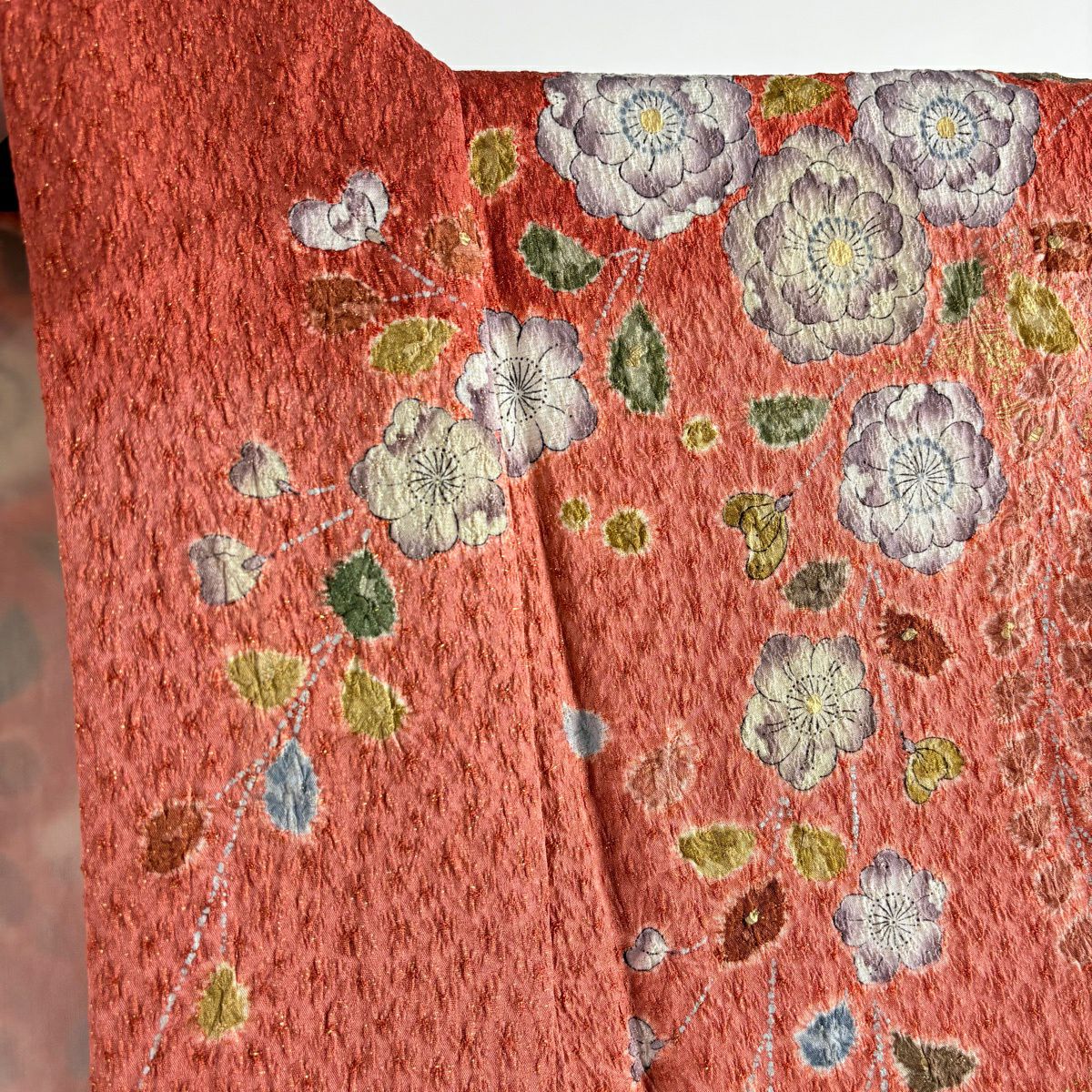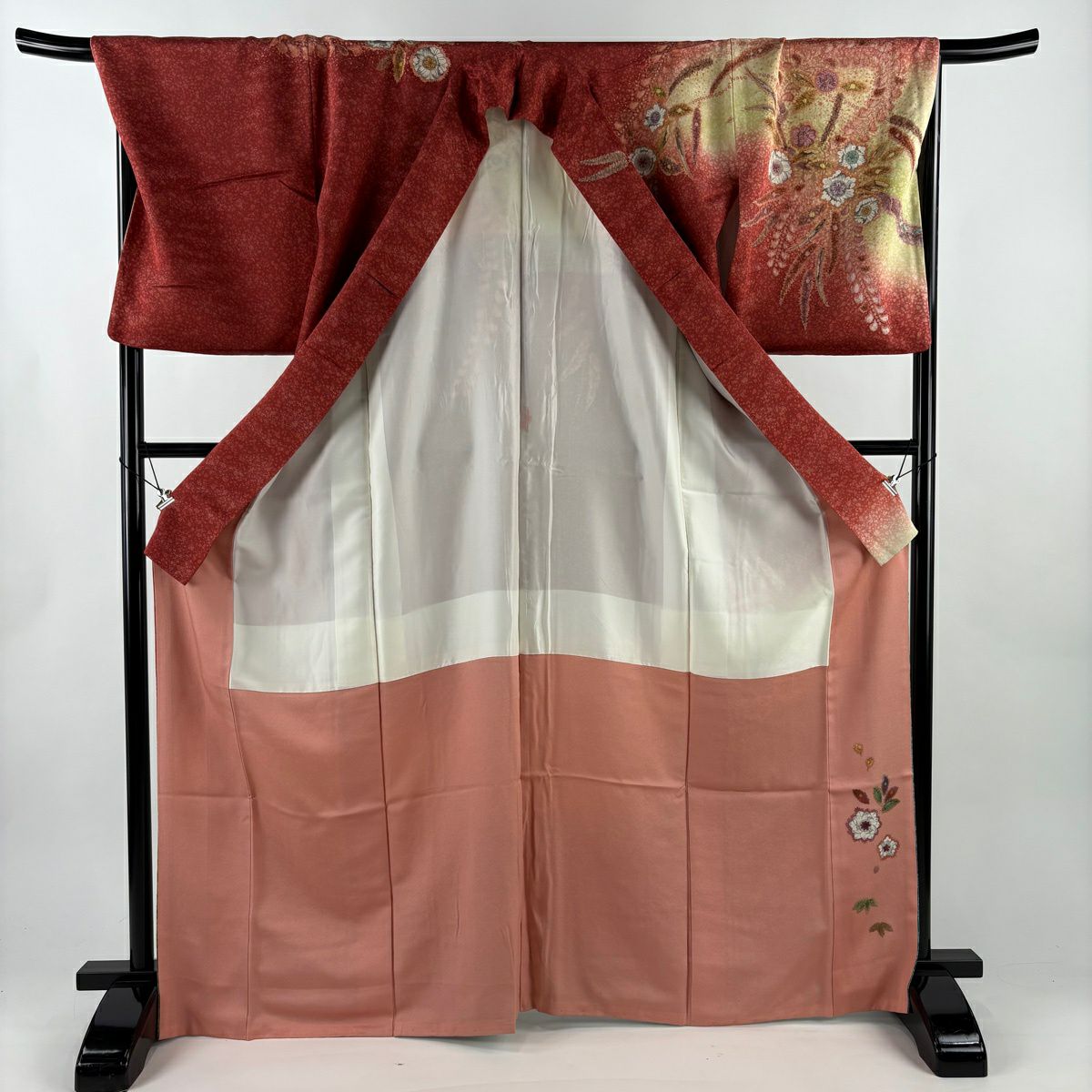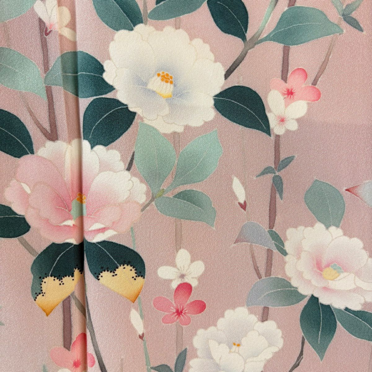 【在庫一掃】 振袖 身丈159cm 裄丈65.5cm M 袷 鈴乃屋 桜 花びら 金通し 金糸 ピンク 正絹 逸品