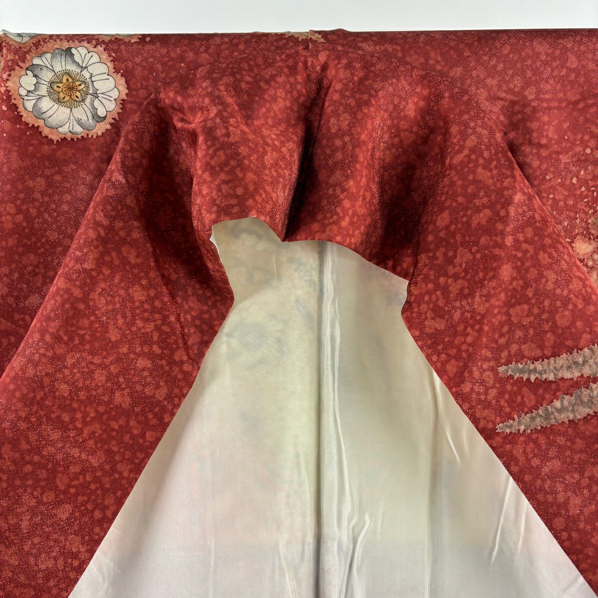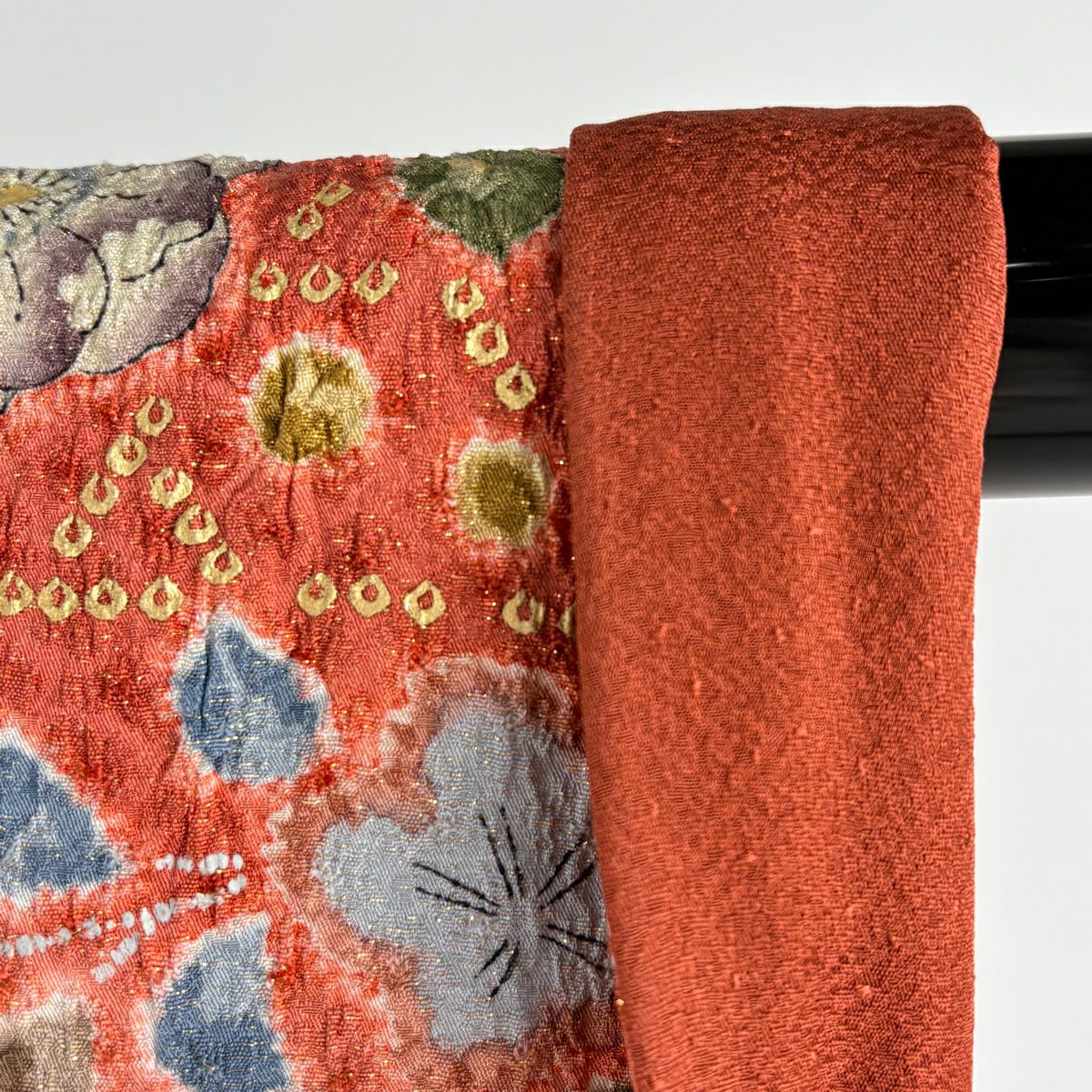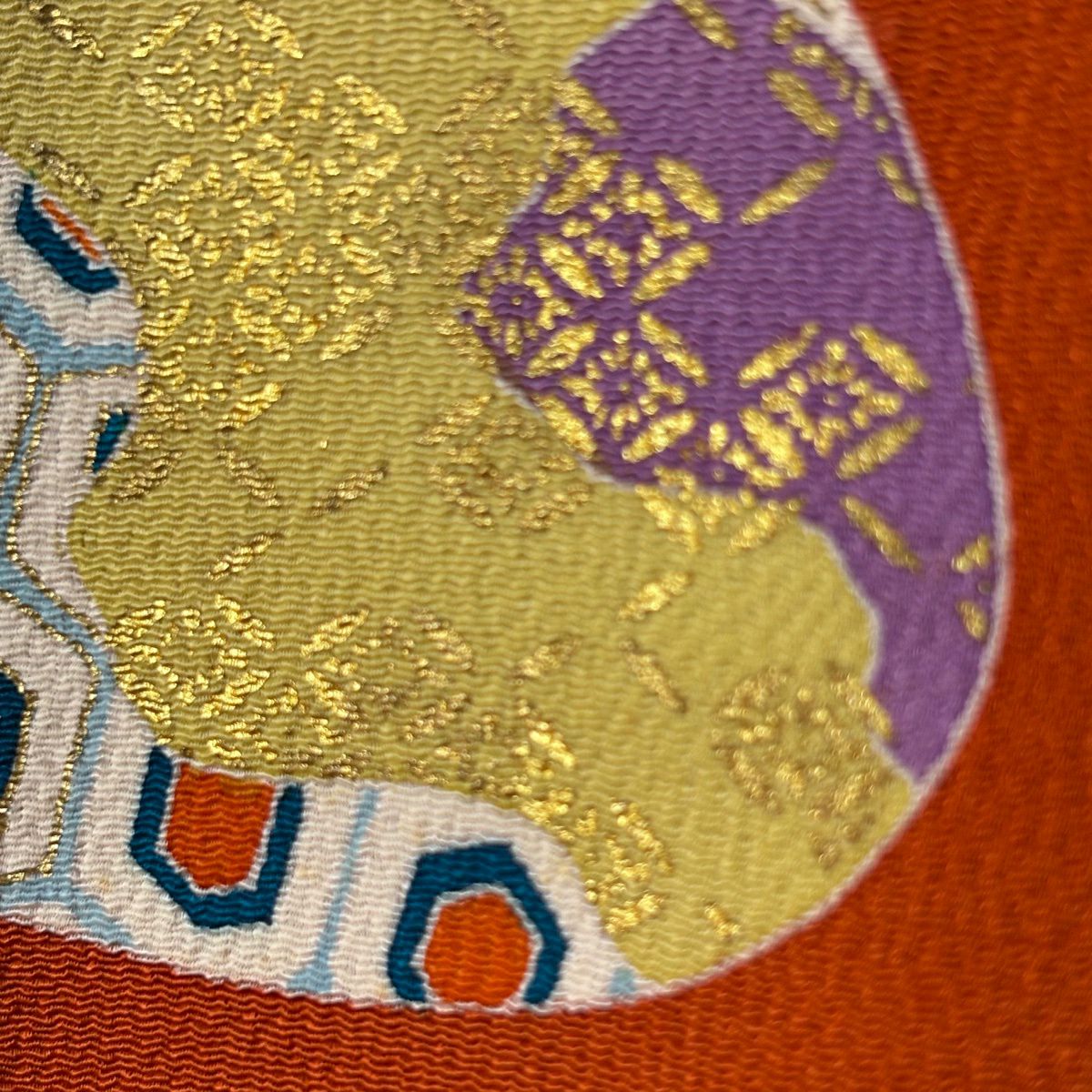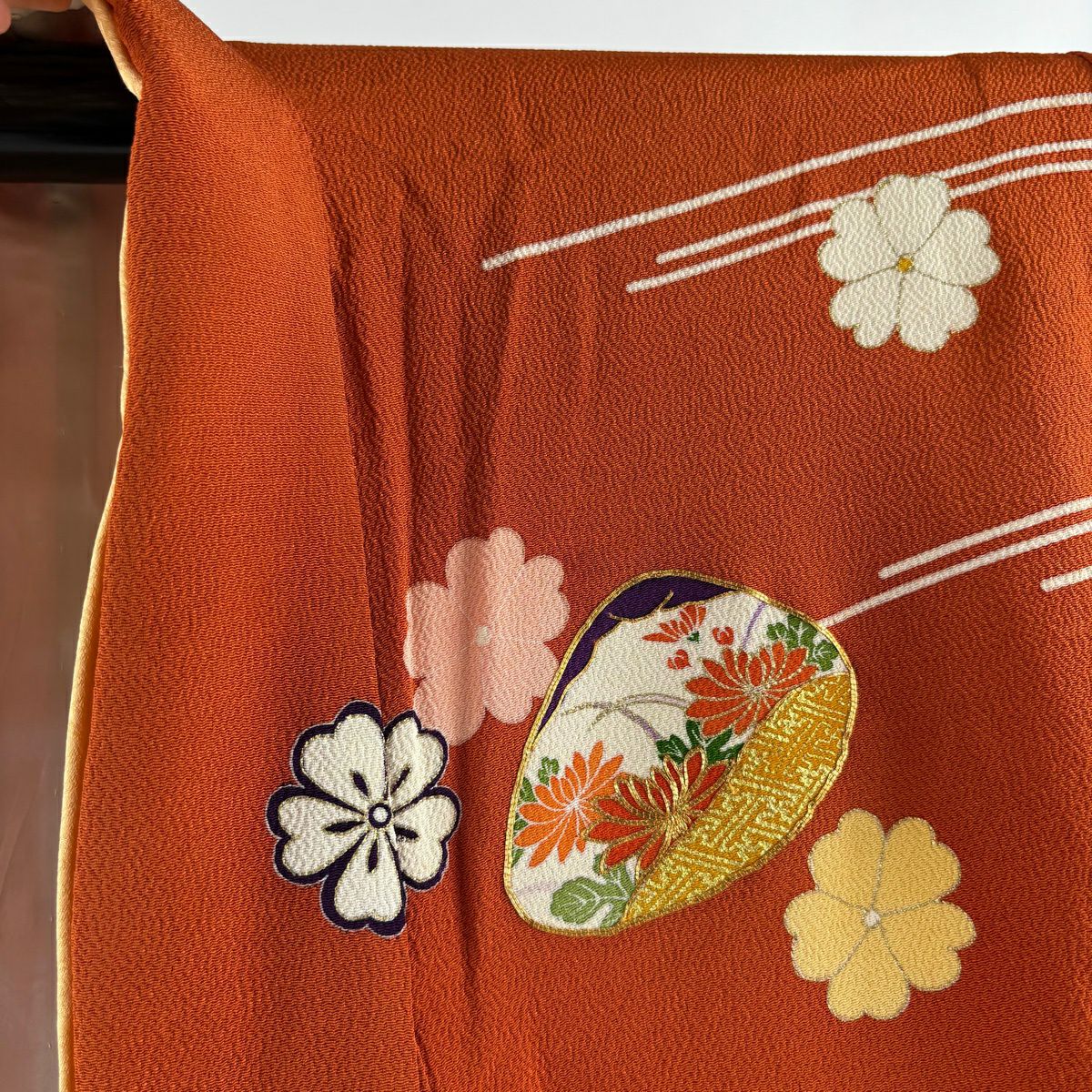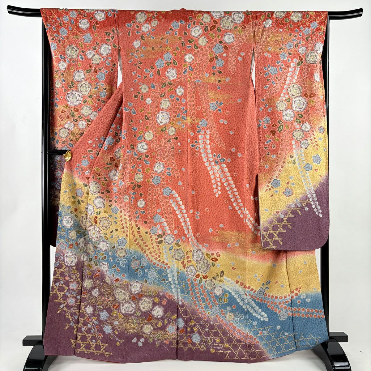 振袖 身丈160.5cm 裄丈65.5cm M 袷 誰が袖好み 落款あり 貝桶 橘 刺繍 金銀彩 オレンジ 正絹 逸品