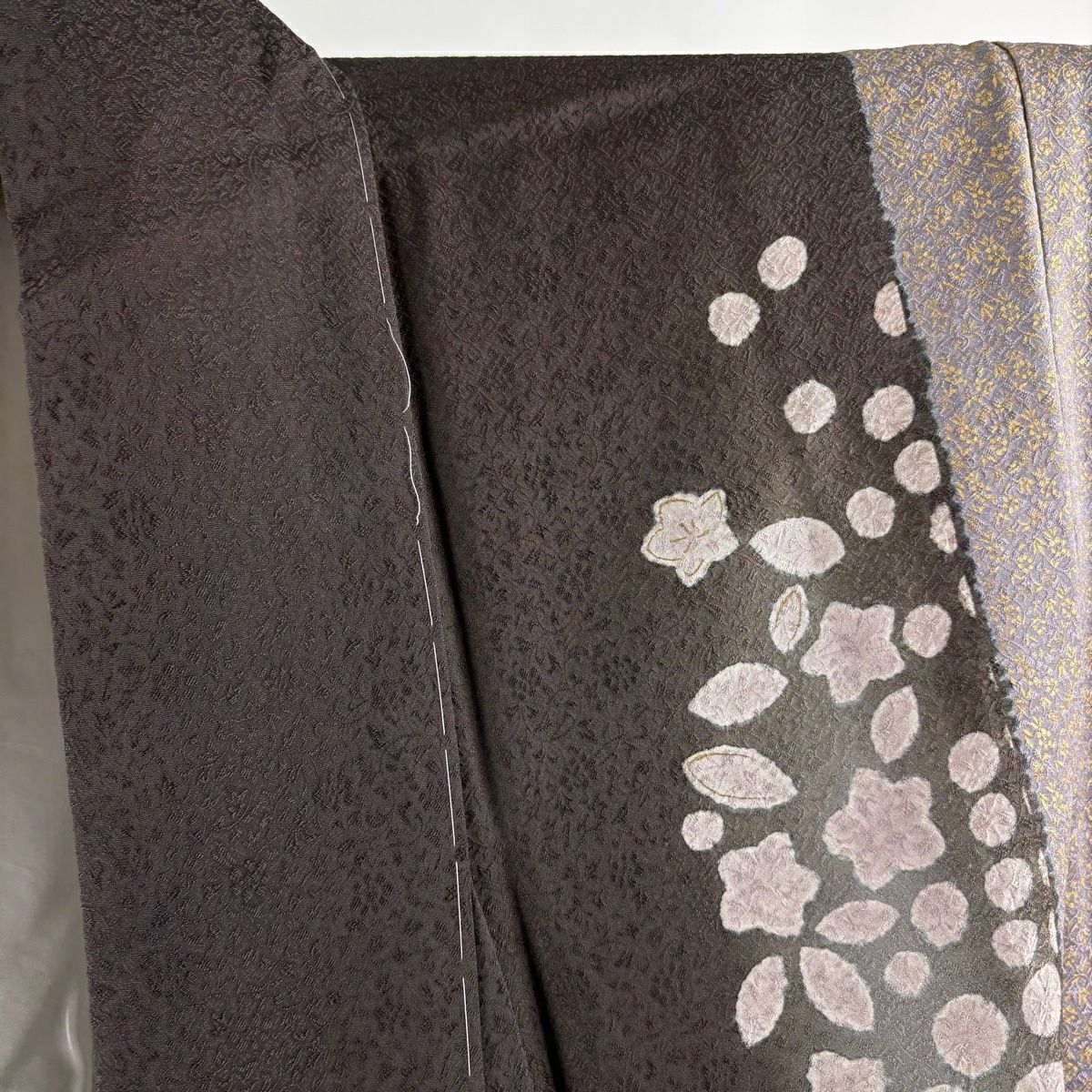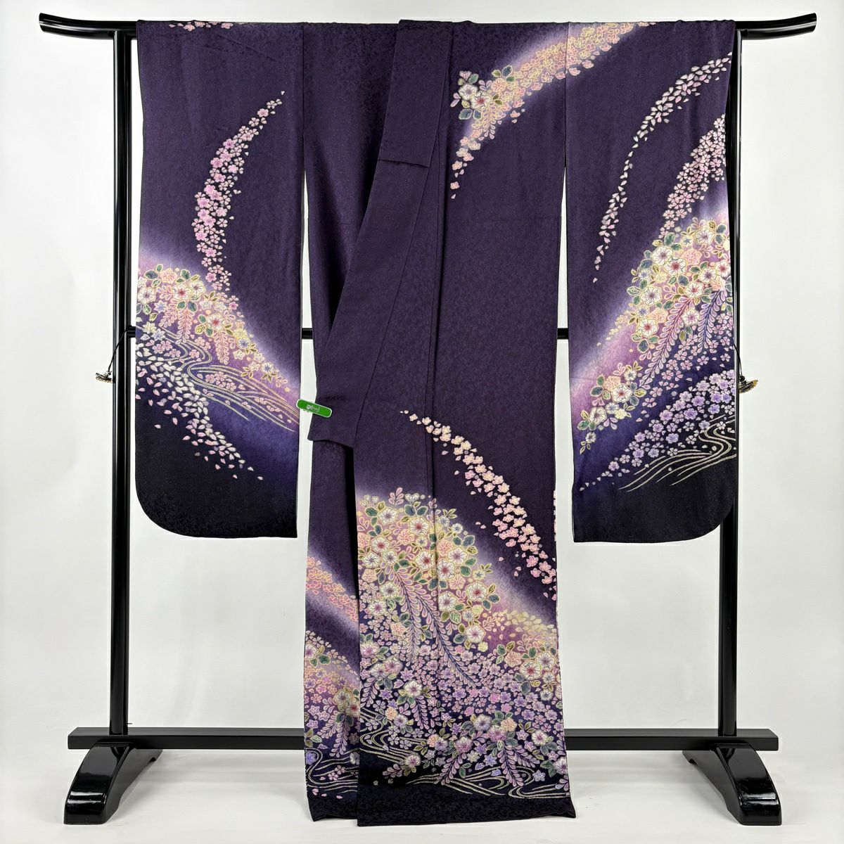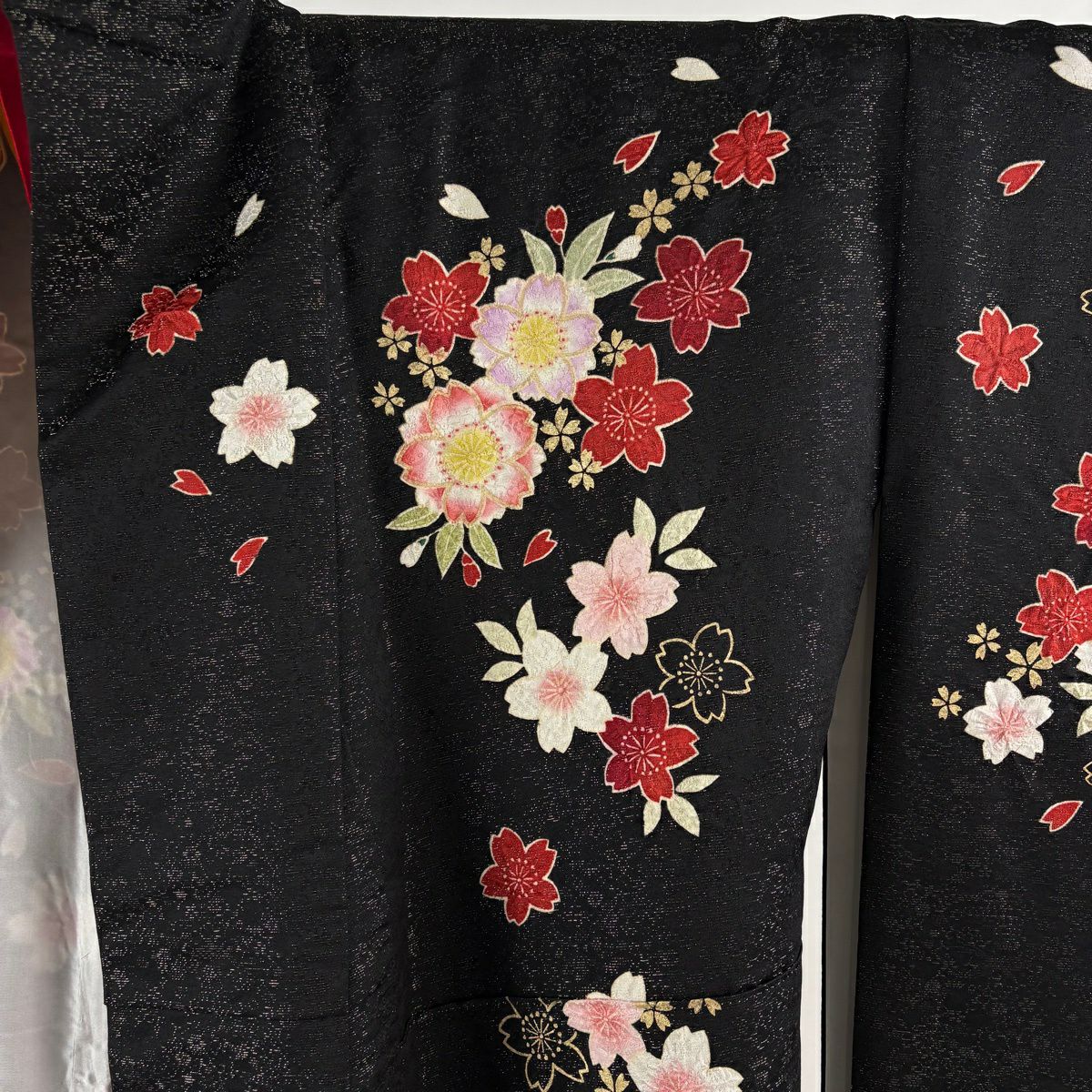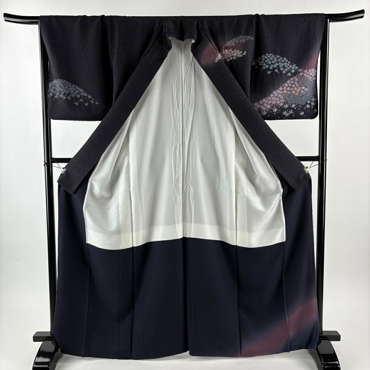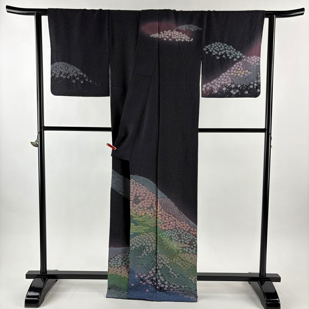 【美品】 振袖 身丈163cm 裄丈67.5cm L 袷 徳永憲峯 落款あり 桜 花びら 金通し 金彩 黒 正絹 逸品