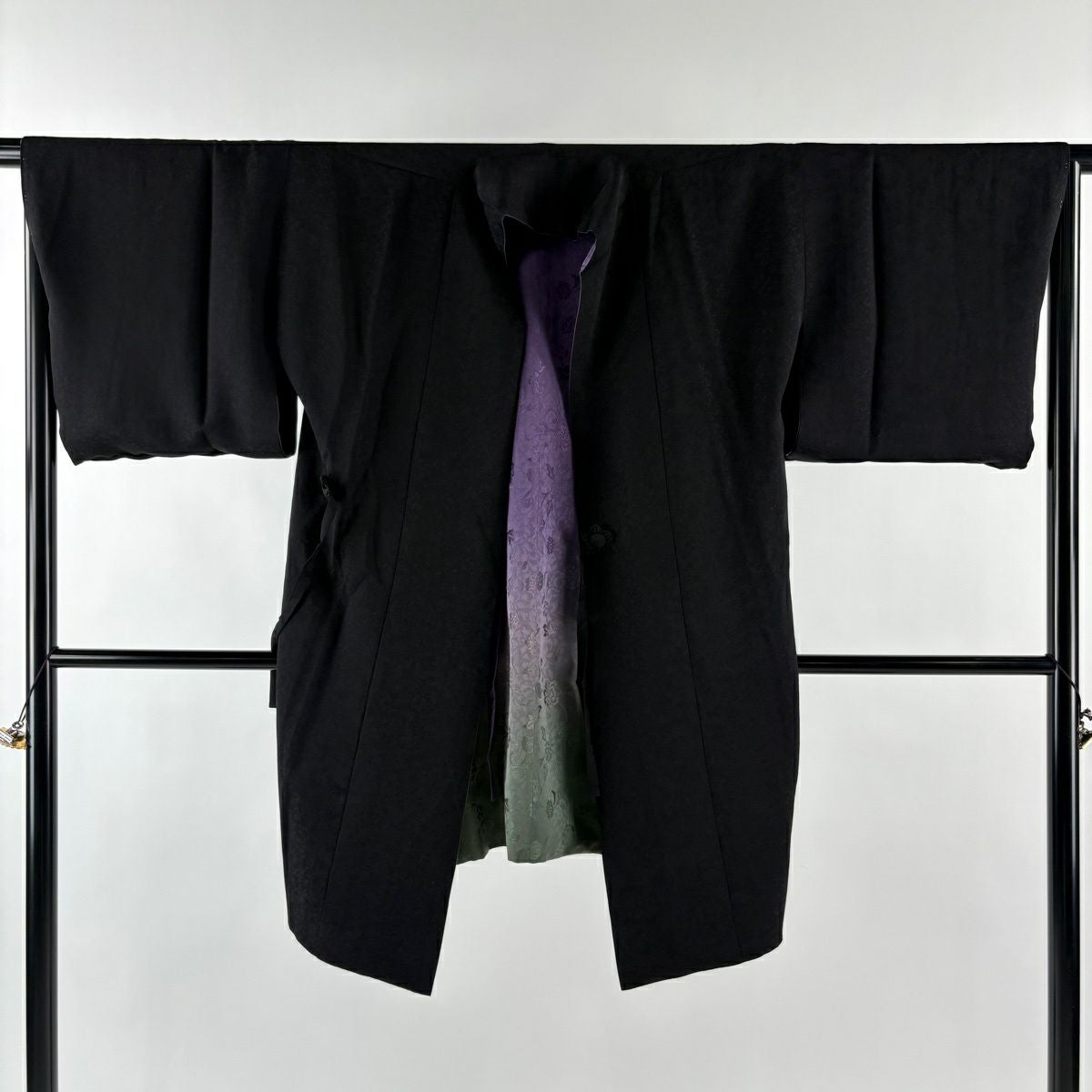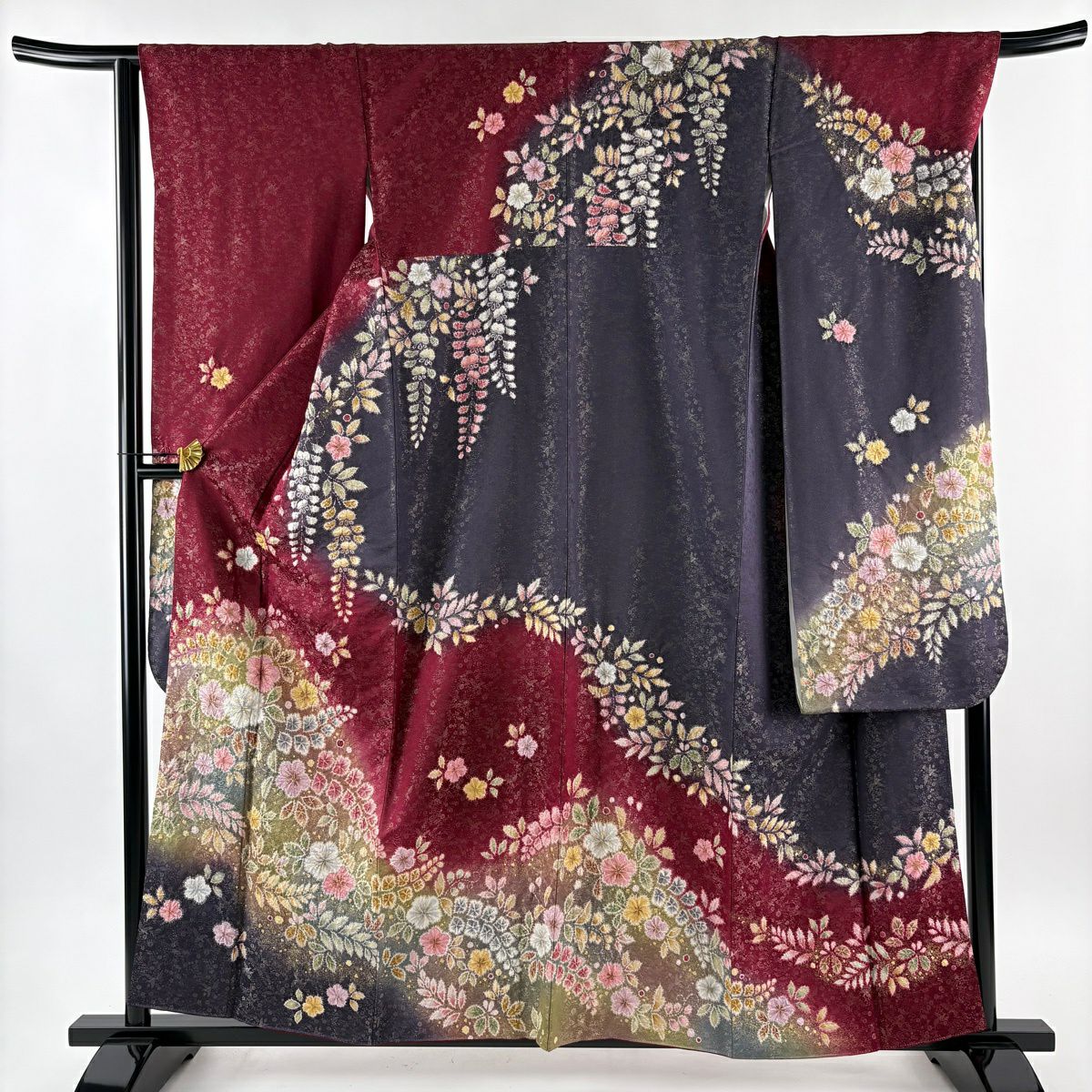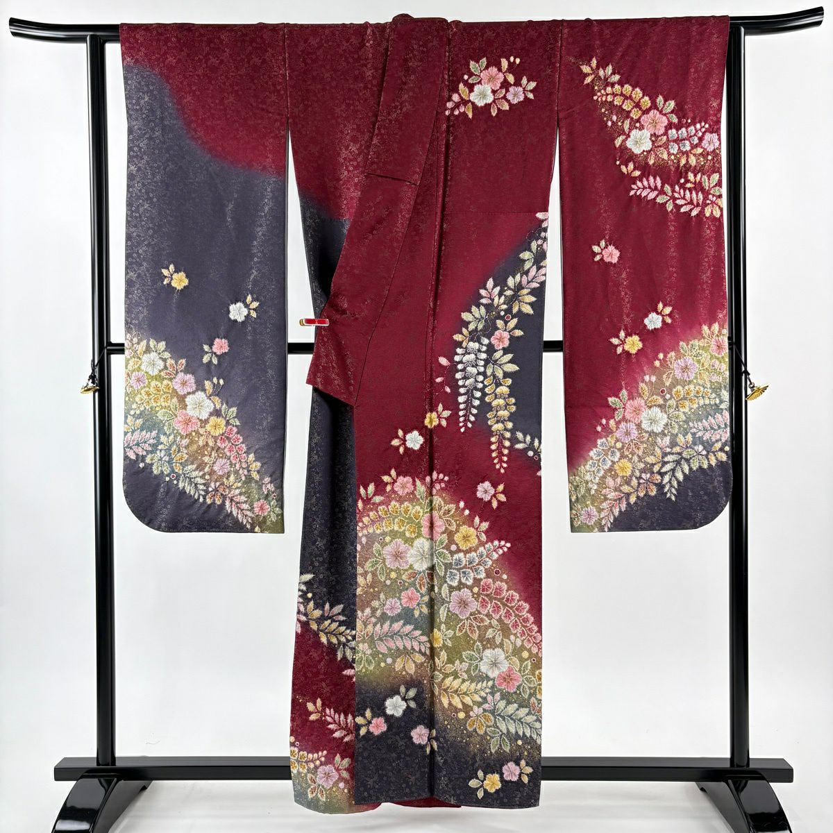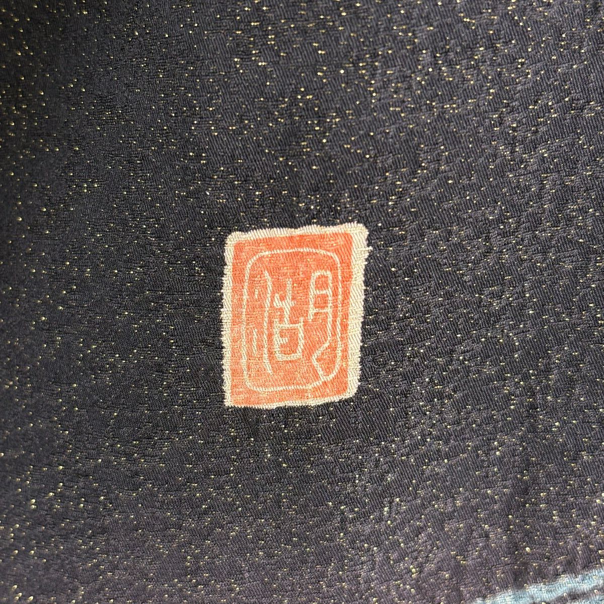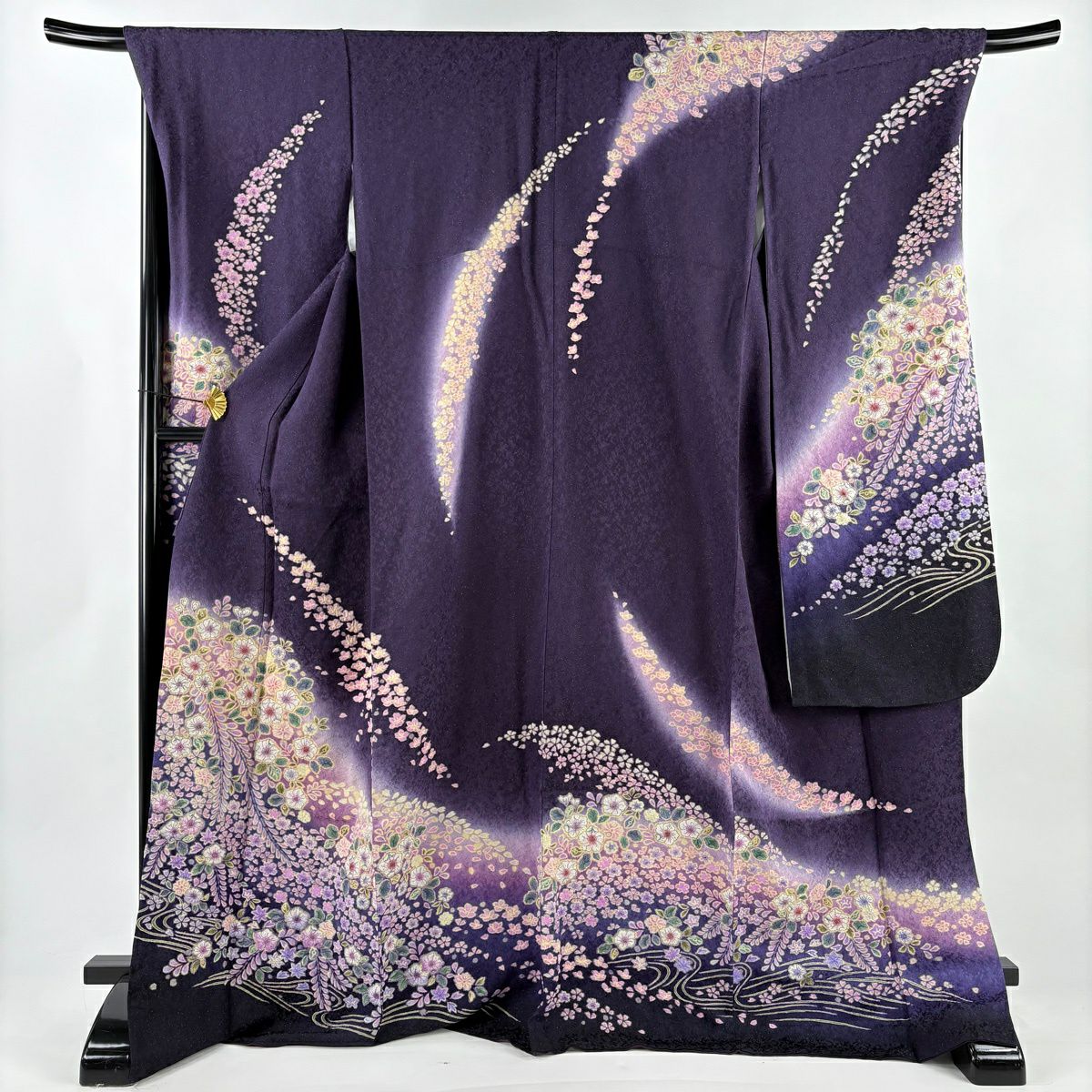 【美品】 振袖 身丈163cm 裄丈67.5cm L 袷 徳永憲峯 落款あり 桜 花びら 金通し 金彩 黒 正絹 逸品