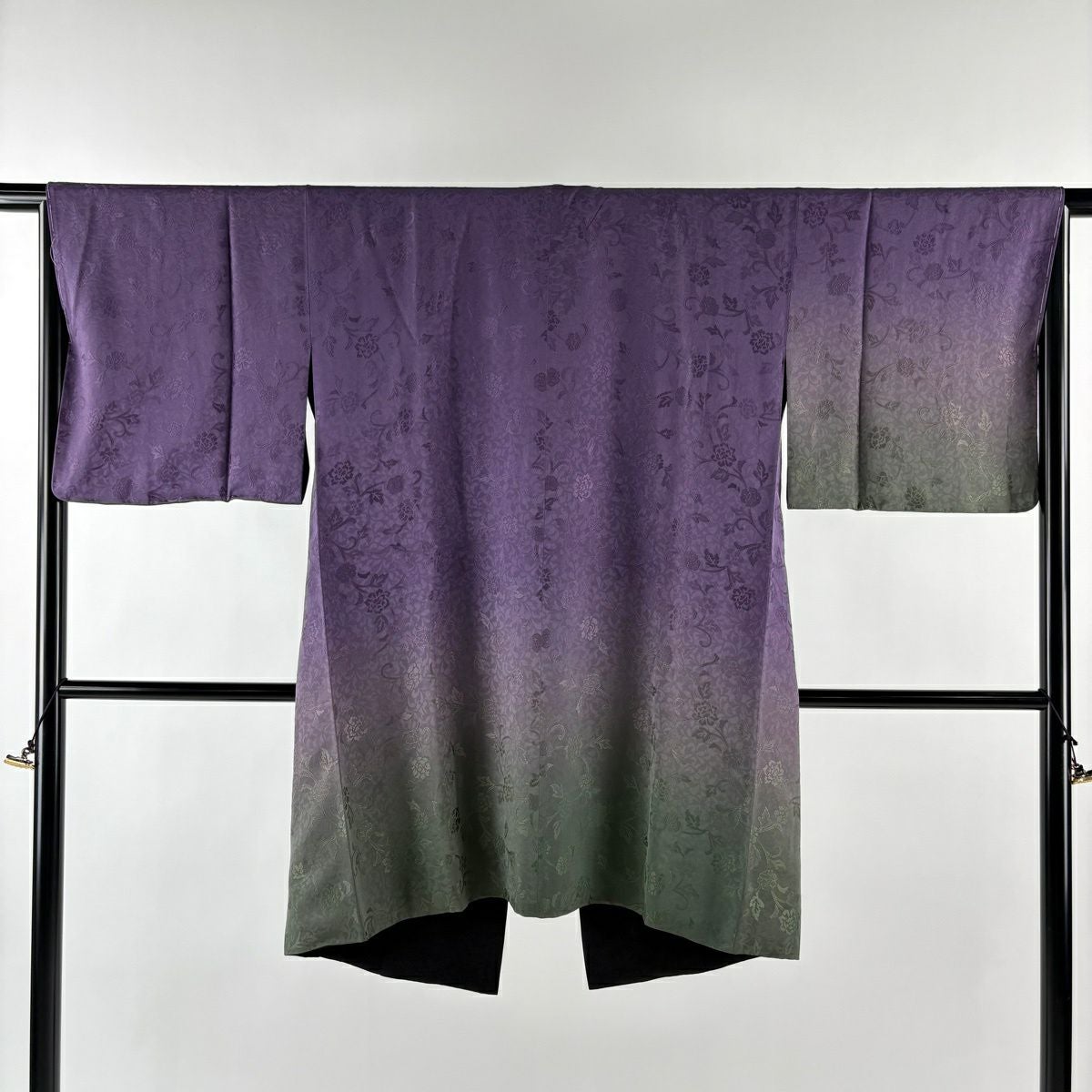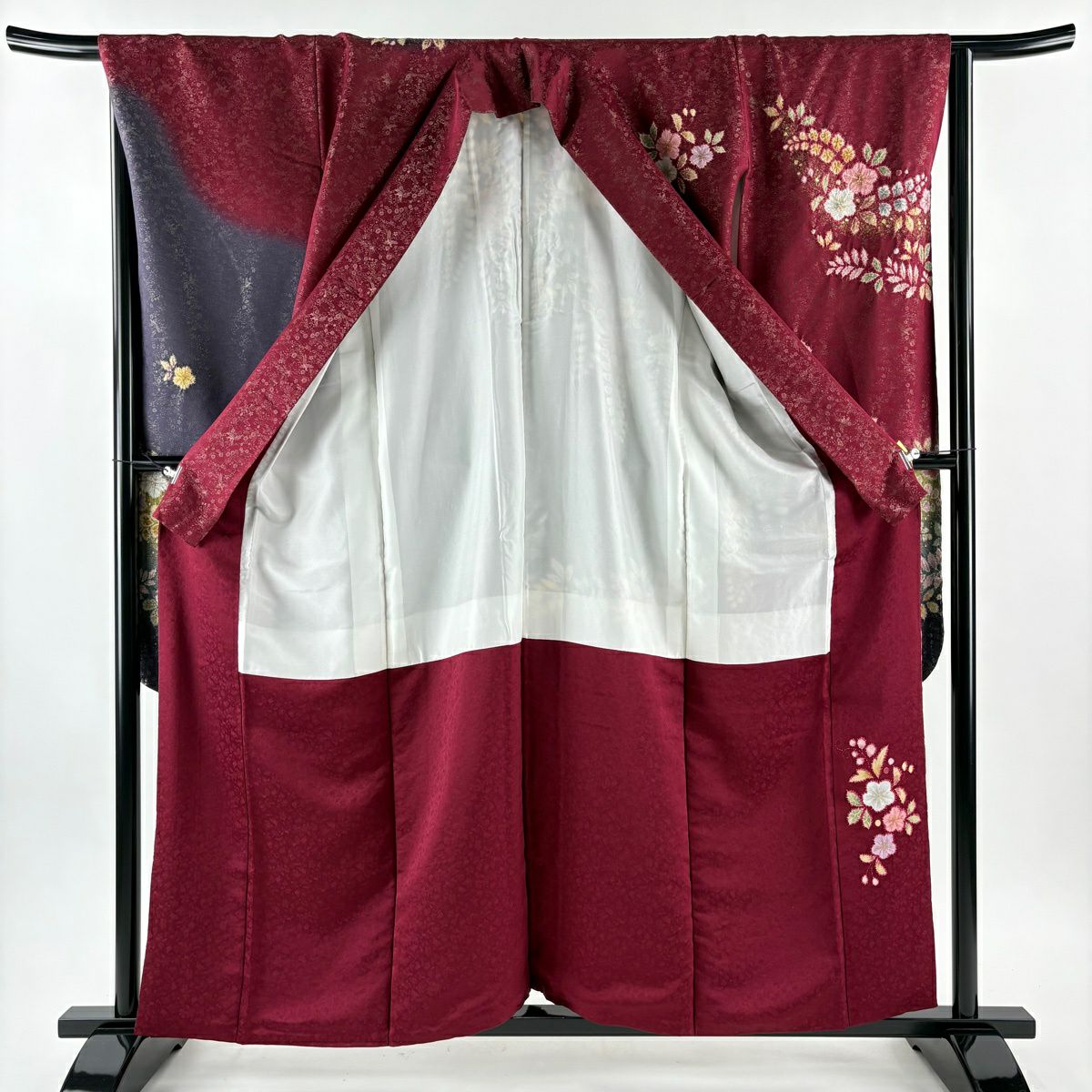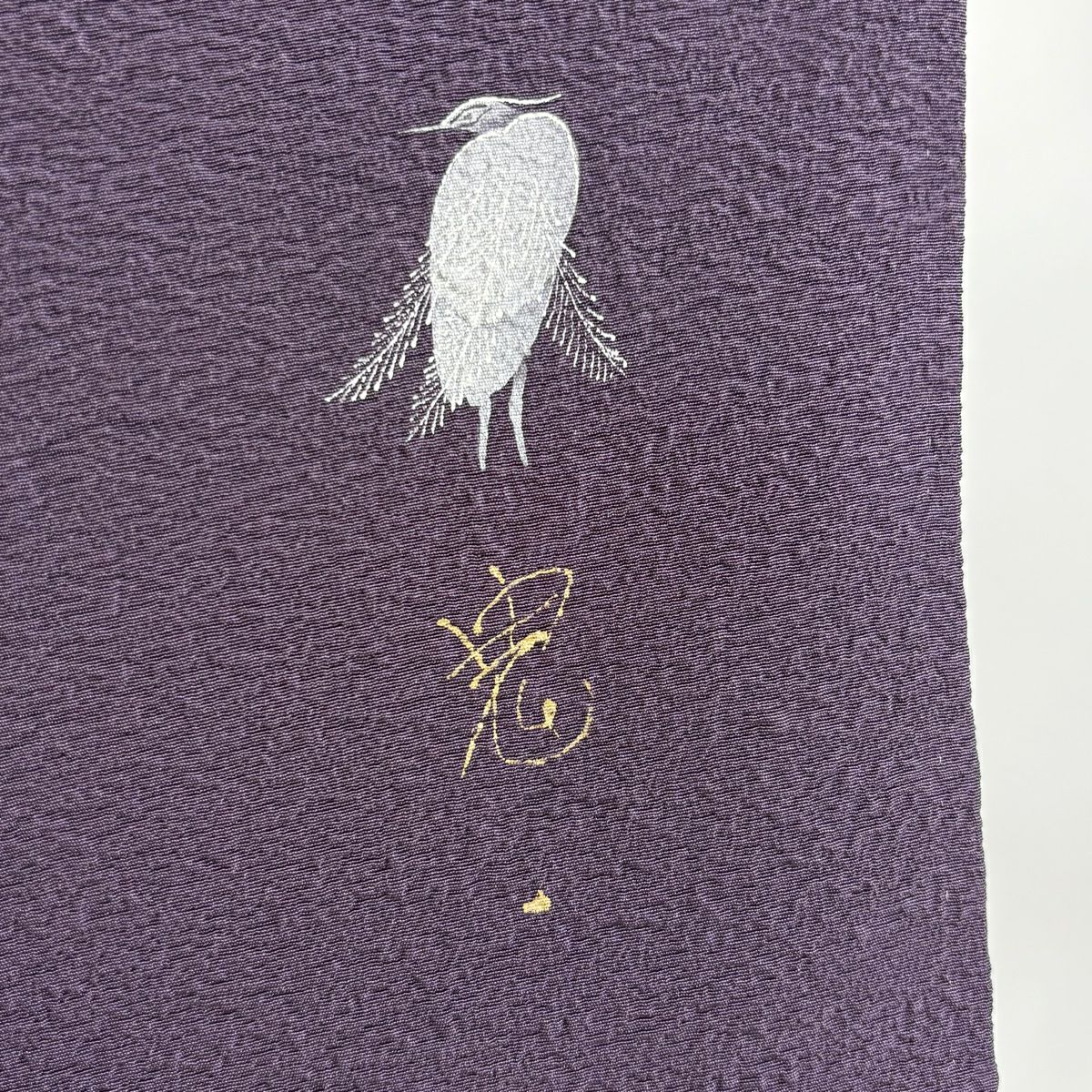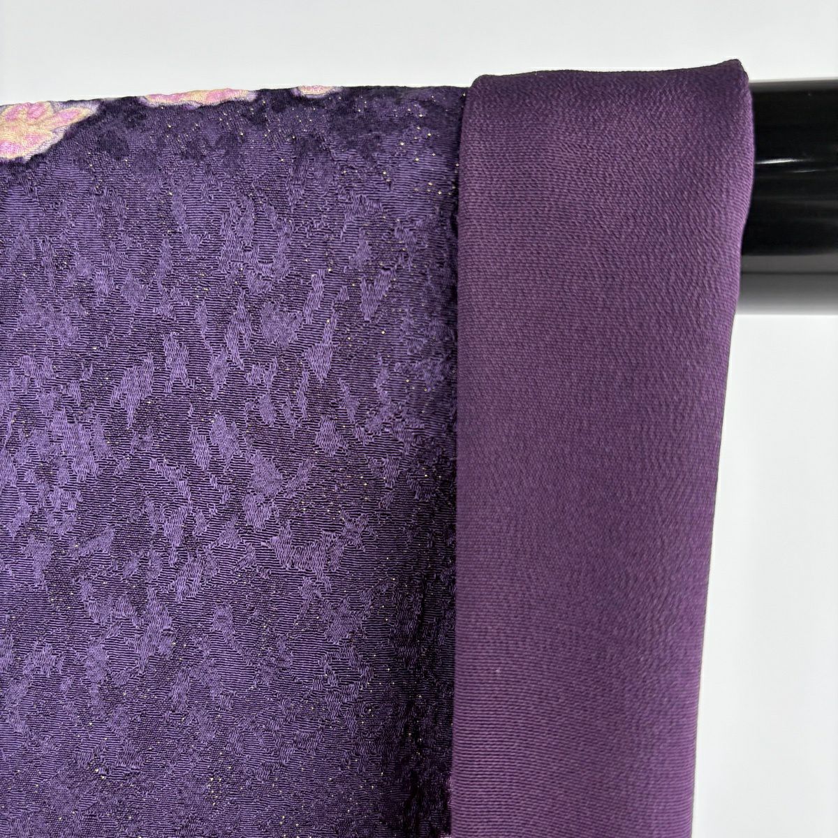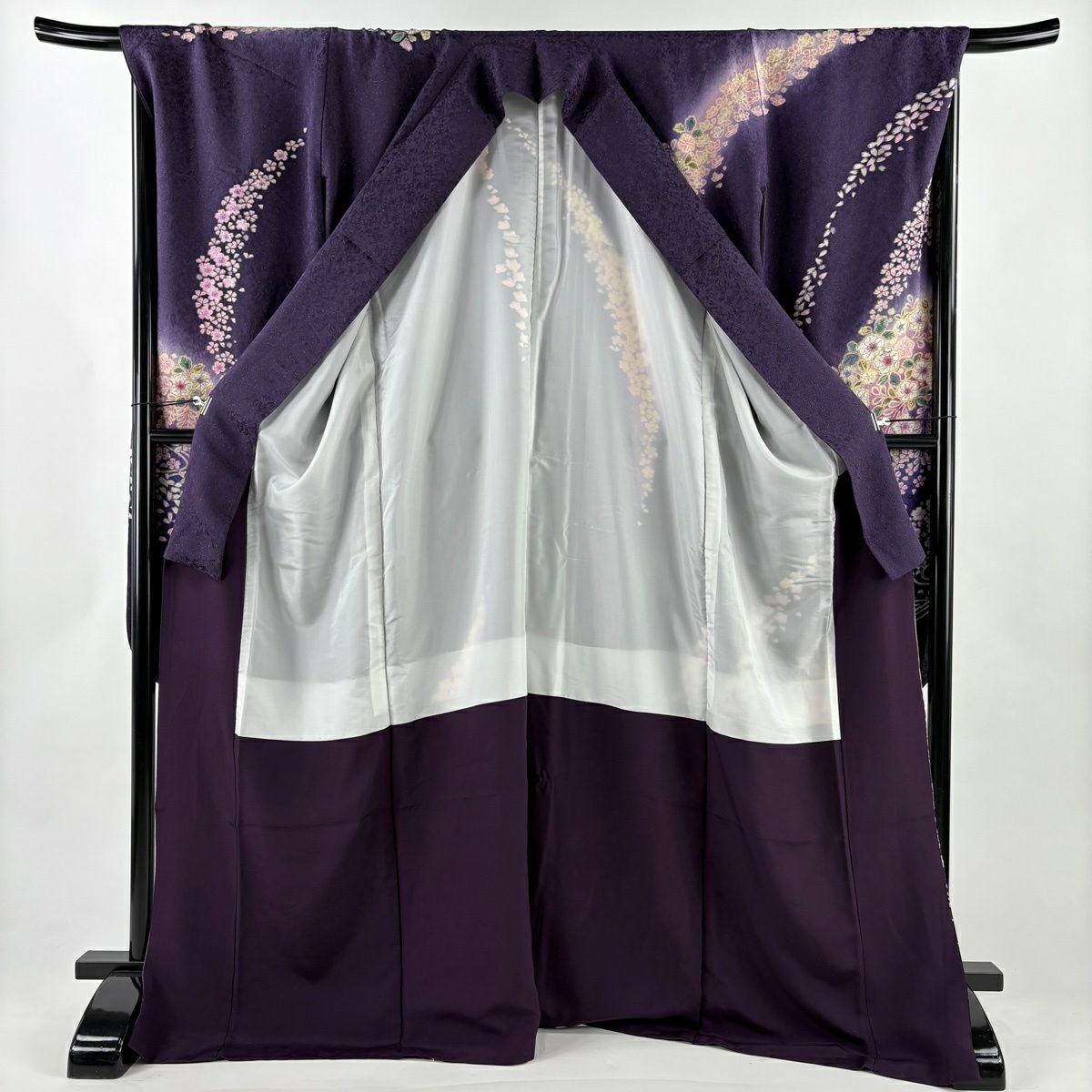 【在庫一掃】 付下げ 身丈157cm 裄丈63cm S 袷 菅有鬼一 落款あり 胡蝶蘭 地紋 金彩 紫 正絹 逸品