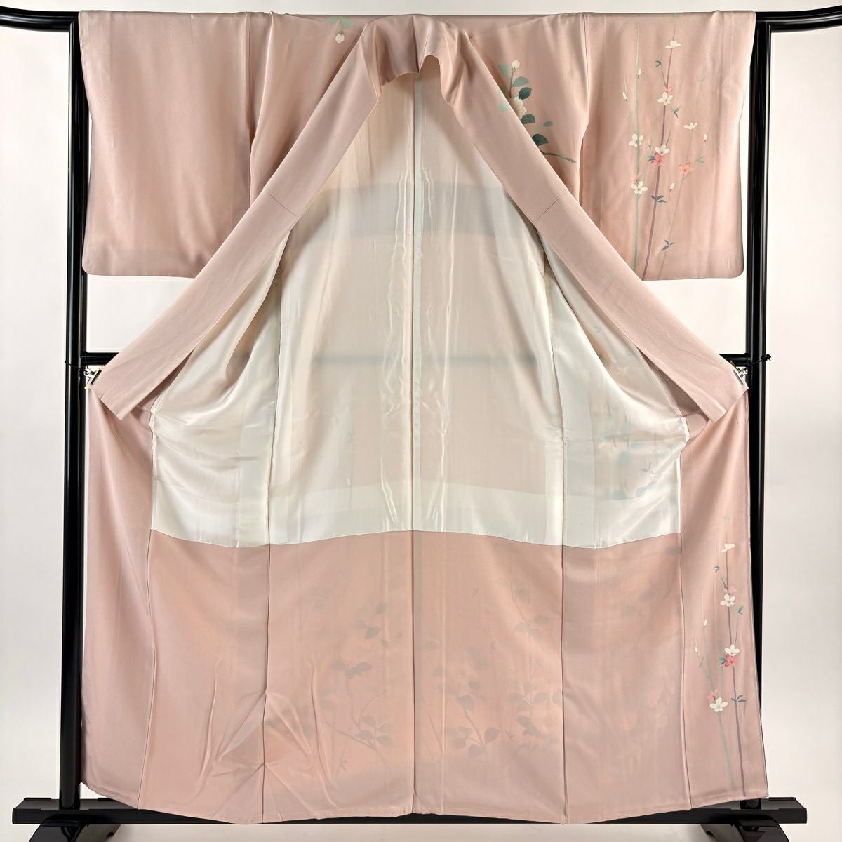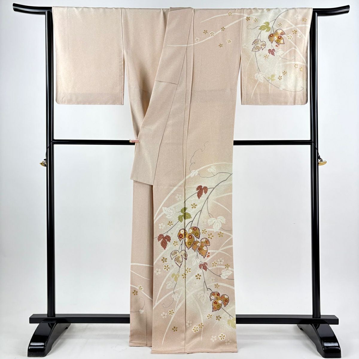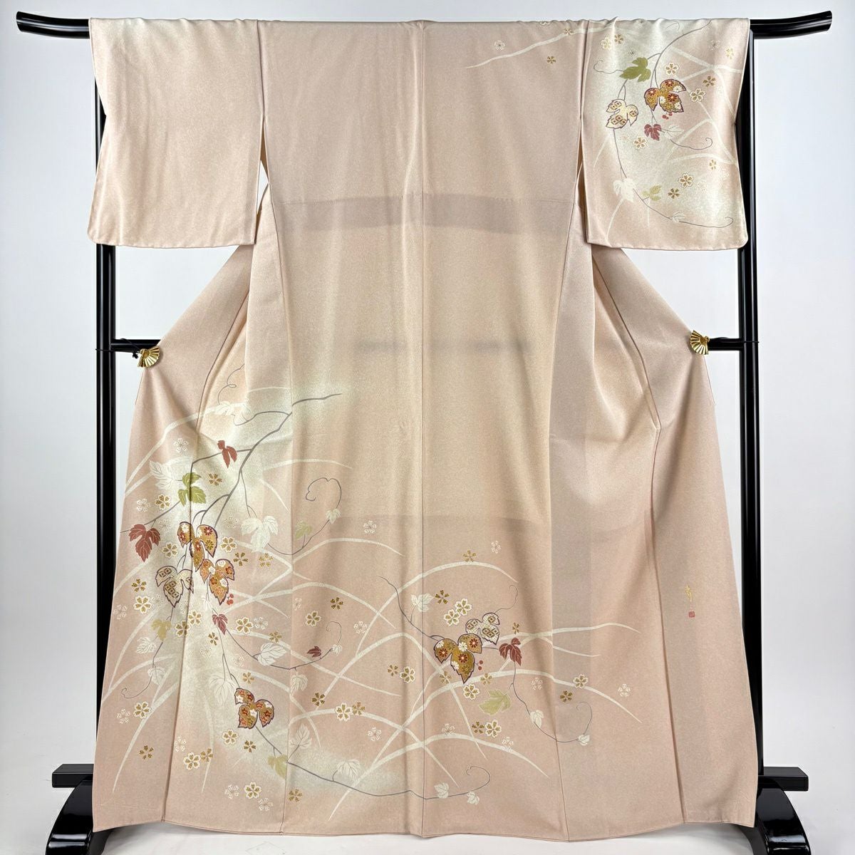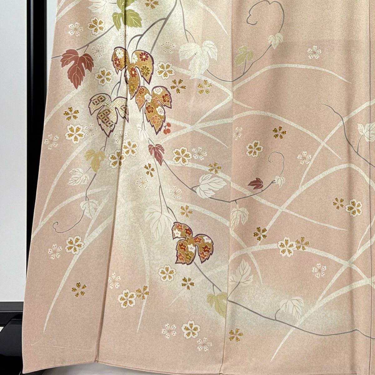 訪問着 身丈168cm 裄丈68cm L 袷 松井青々 落款あり 蔦 桜 金彩 ぼかし ピンクベージュ 正絹 逸品