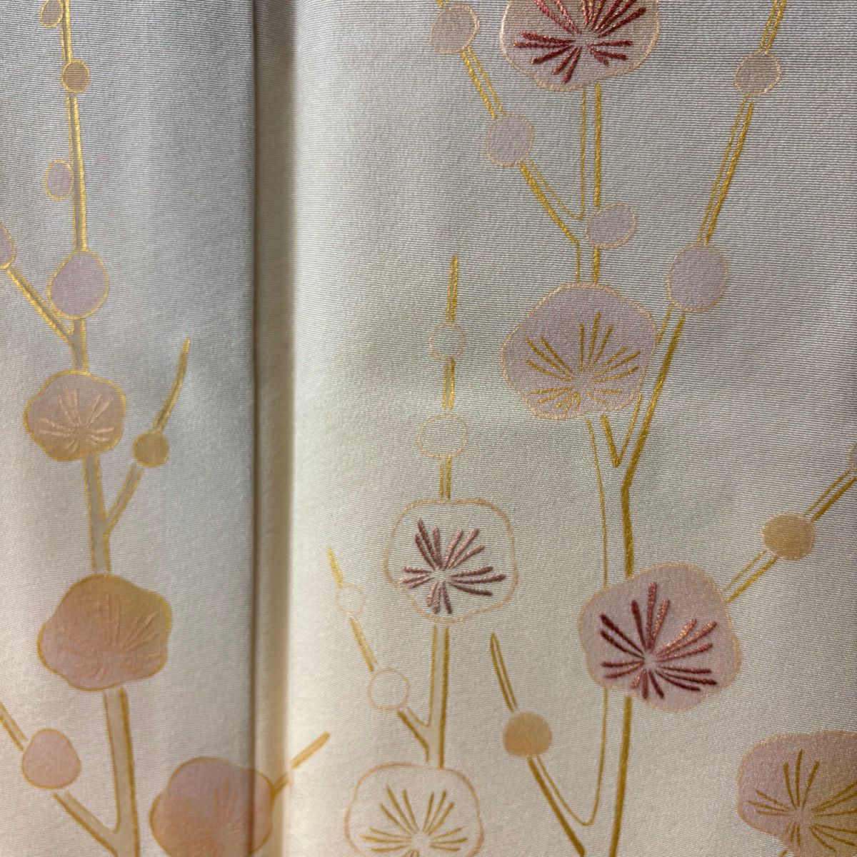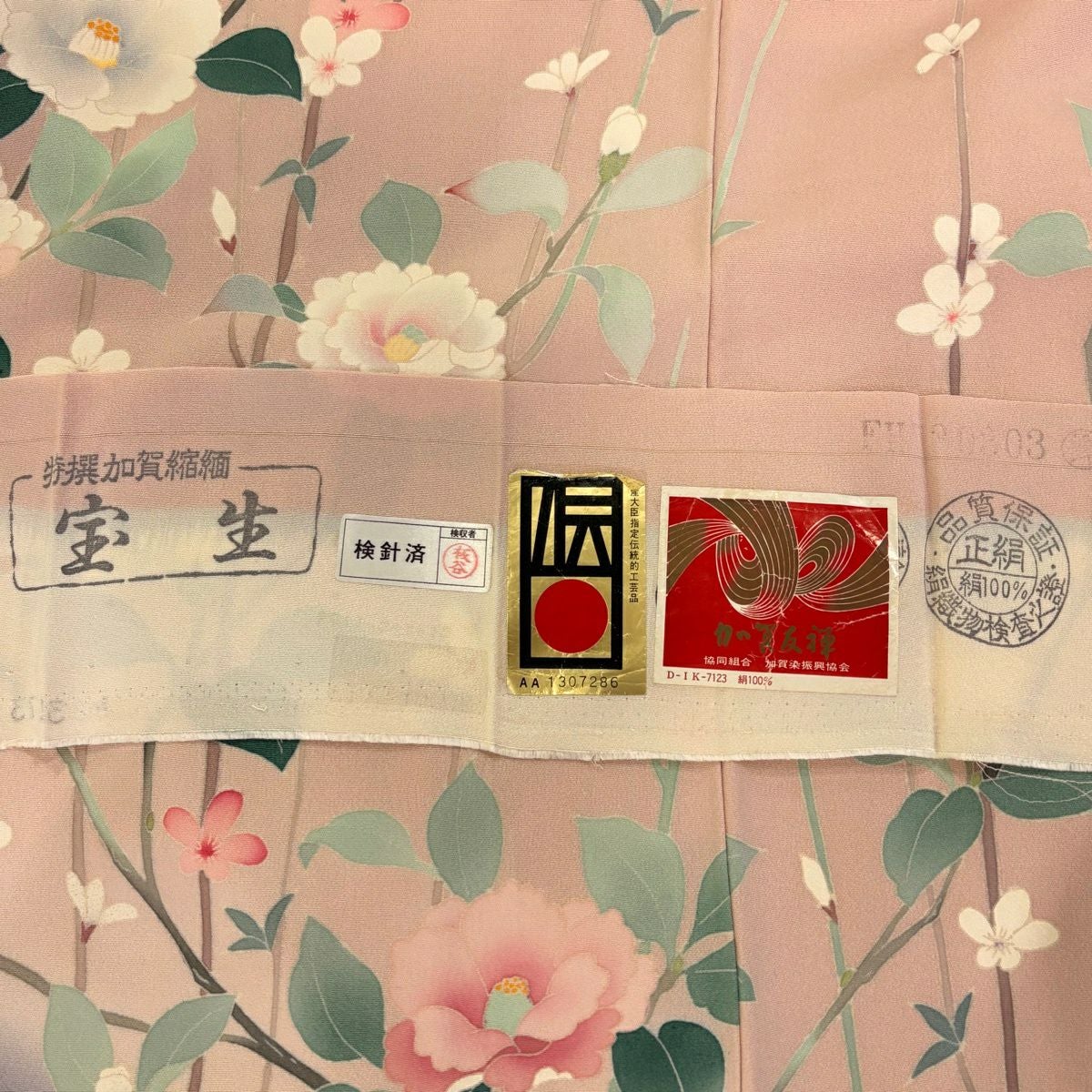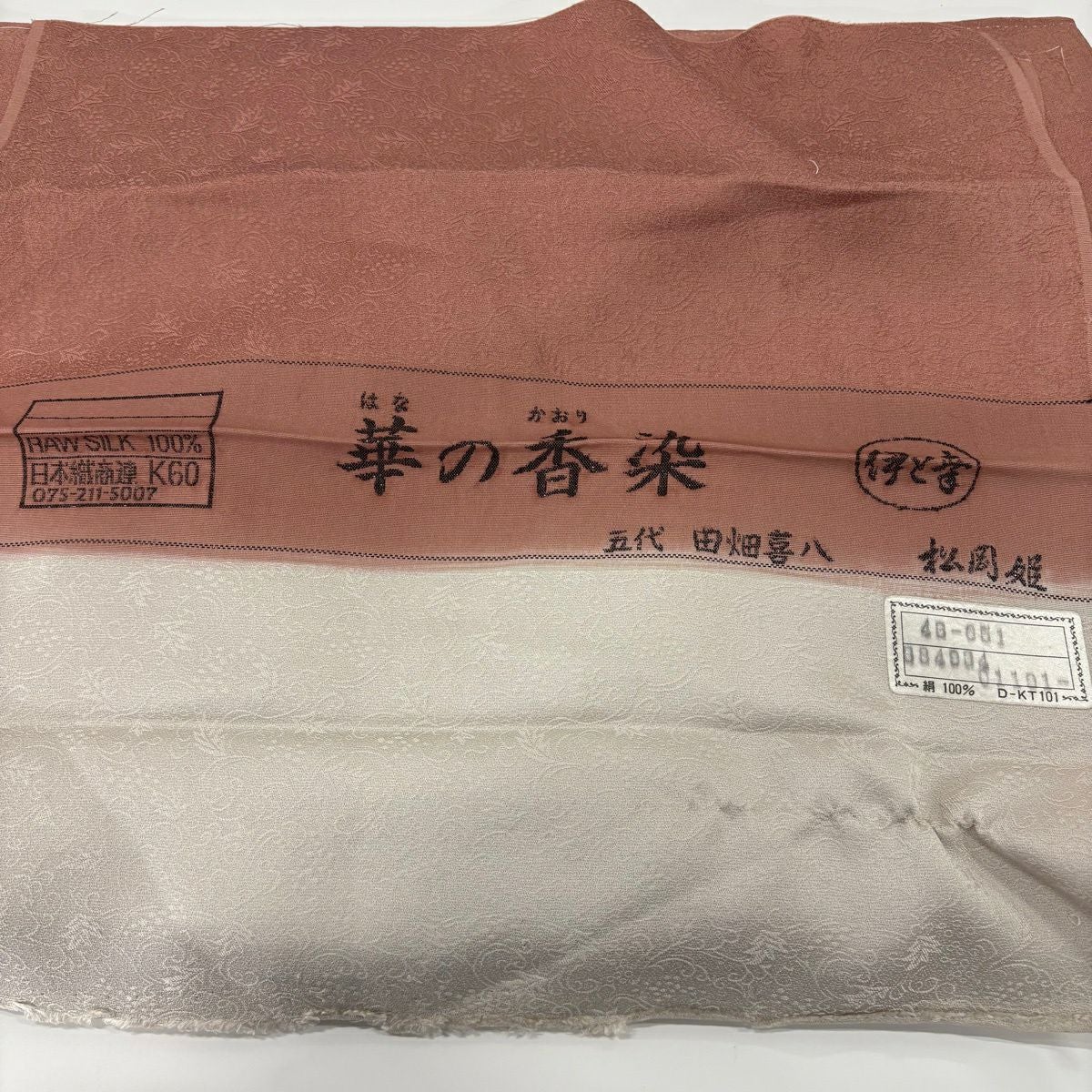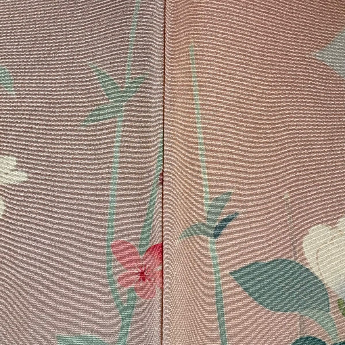訪問着 身丈168cm 裄丈68cm L 袷 松井青々 落款あり 蔦 桜 金彩 ぼかし ピンクベージュ 正絹 逸品